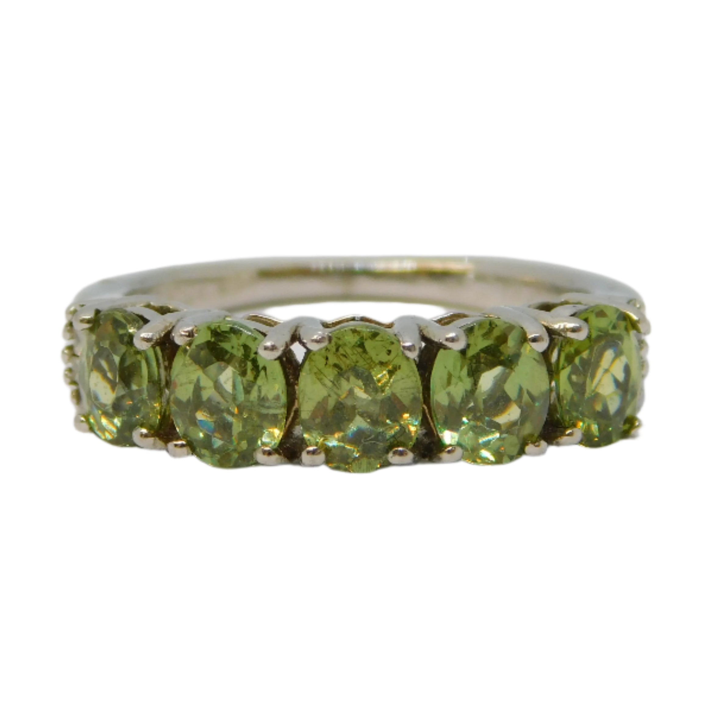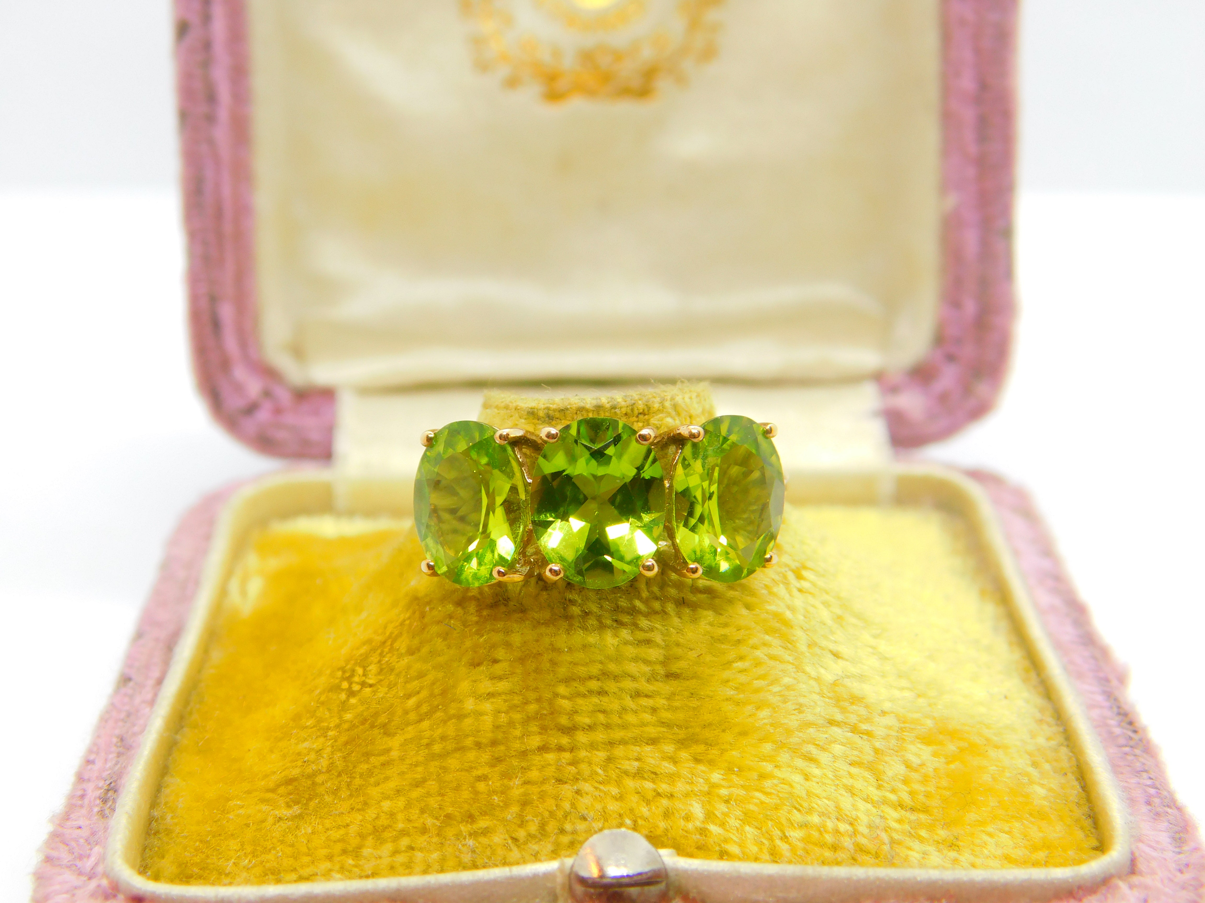 10ct Yellow Gold & Three Stone Peridot Band Ring Vintage c1990
