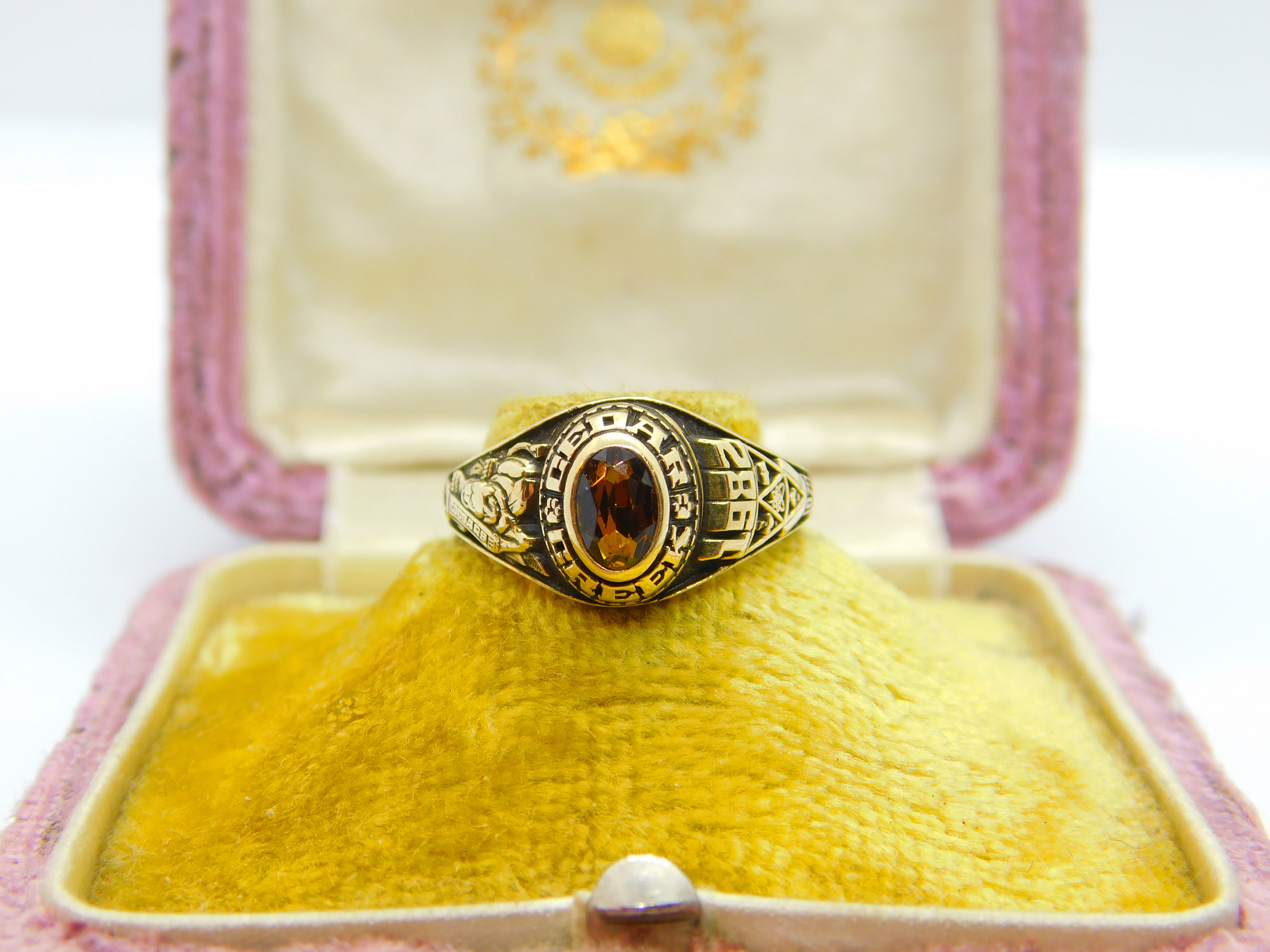10ct Yellow Gold & Citrine Cedar Creek College LA Graduation Ring Vintage 1982