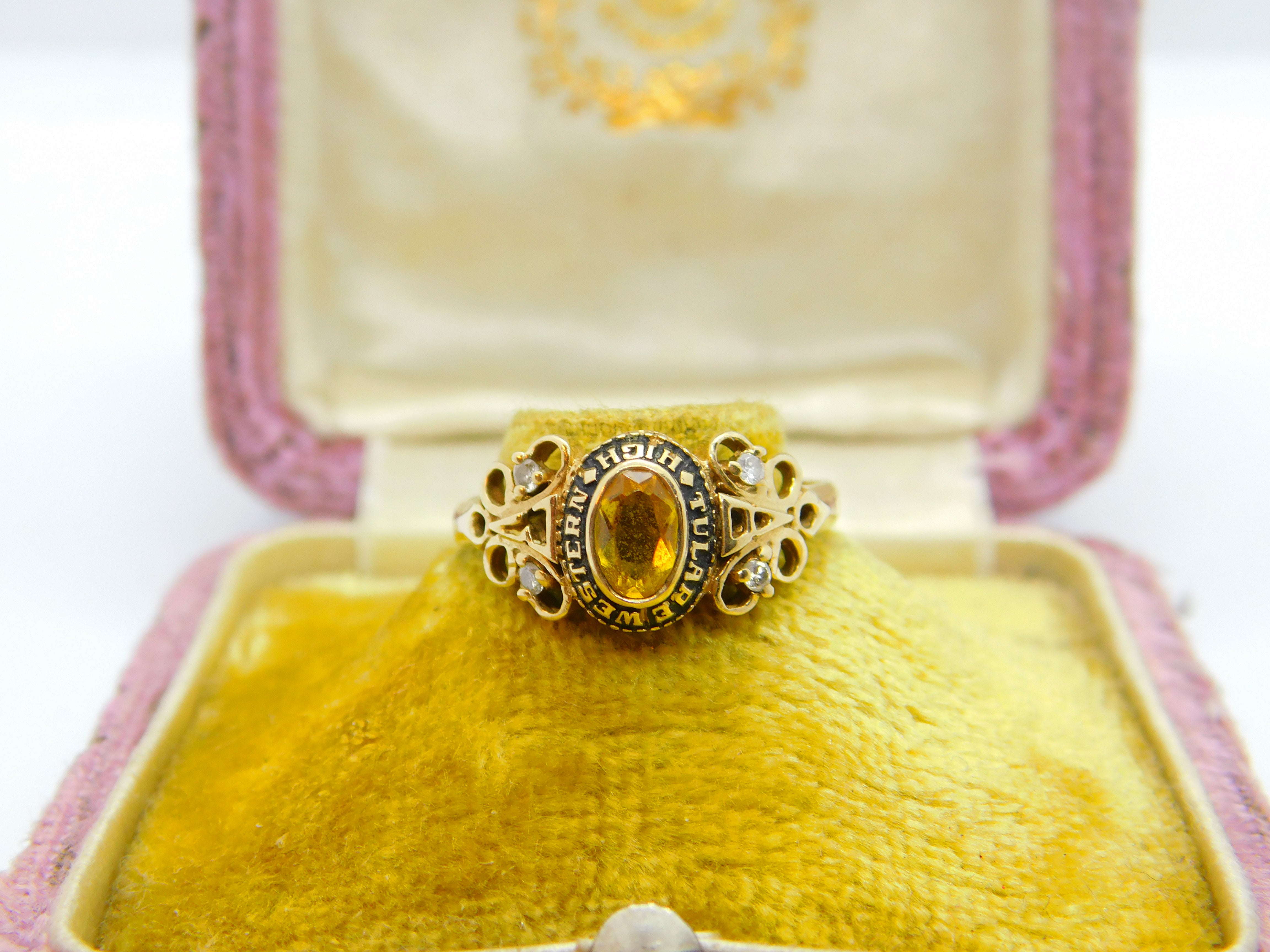 10ct Yellow Gold & Diamond Tulare Western High School Graduation Ring Vintage