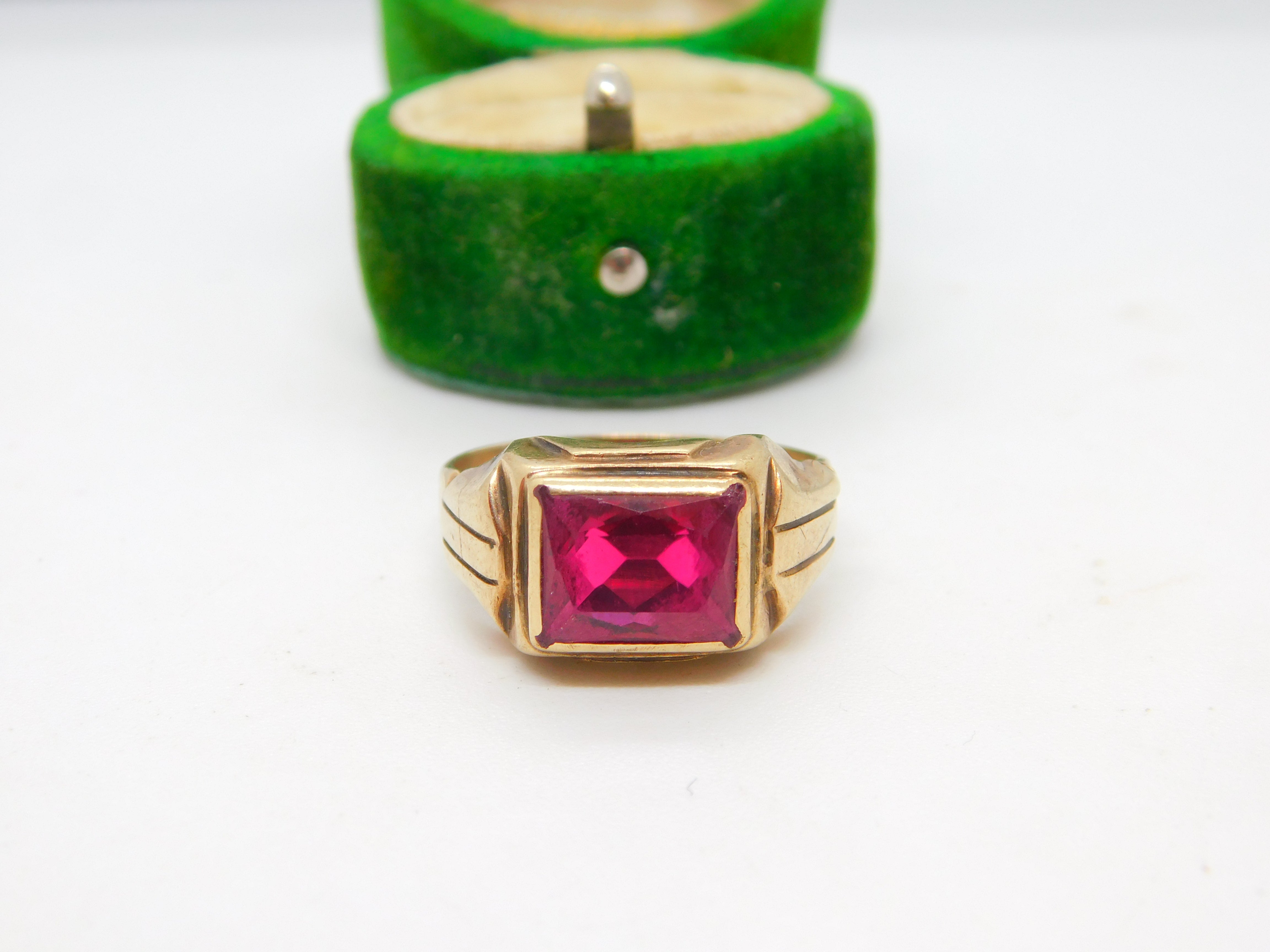 10ct Yellow Gold & 3ct Ruby Signet Ring Vintage c1960