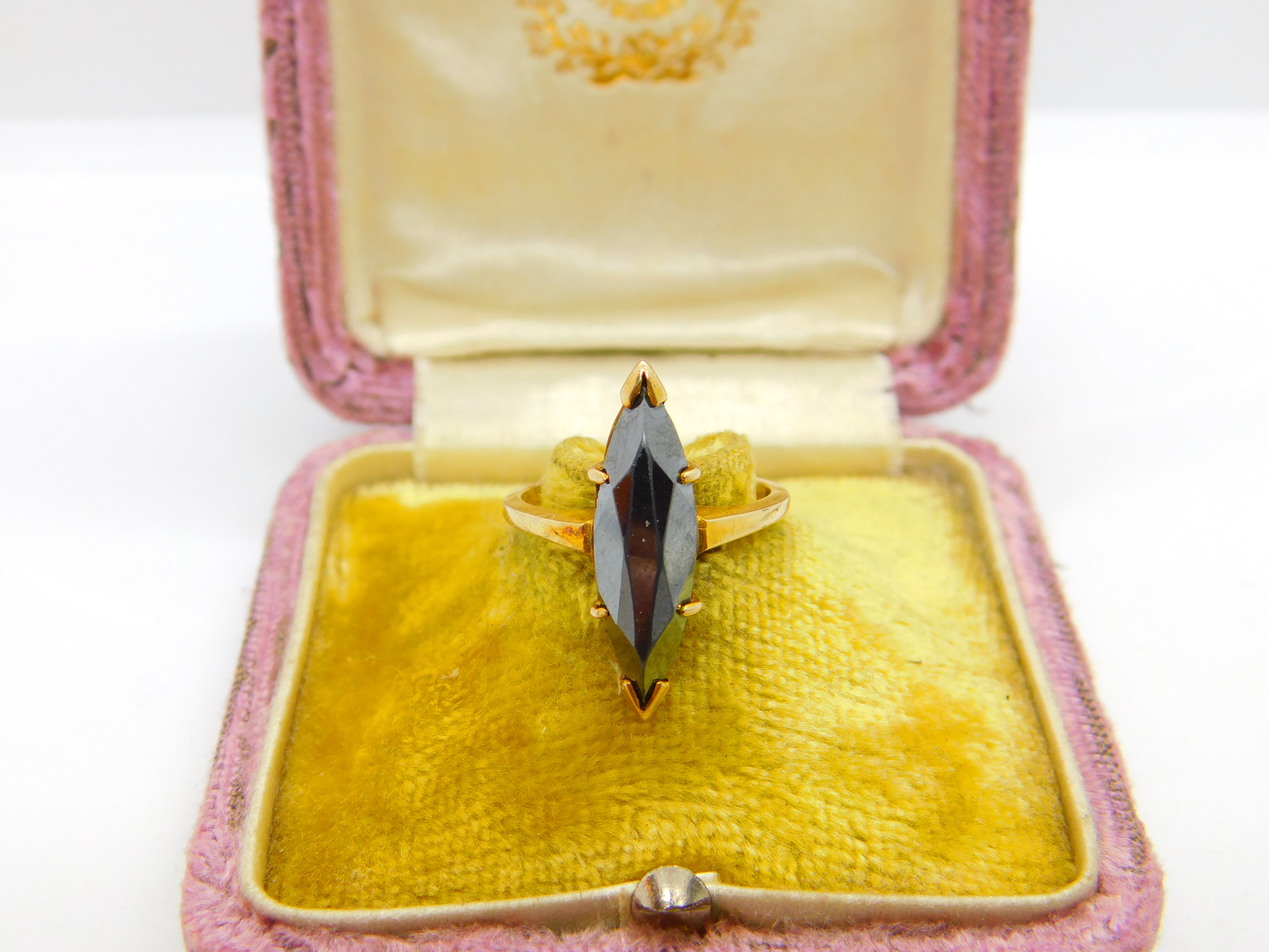 10ct Yellow Gold & Marquise Cut Obsidian Band Ring Vintage c1970