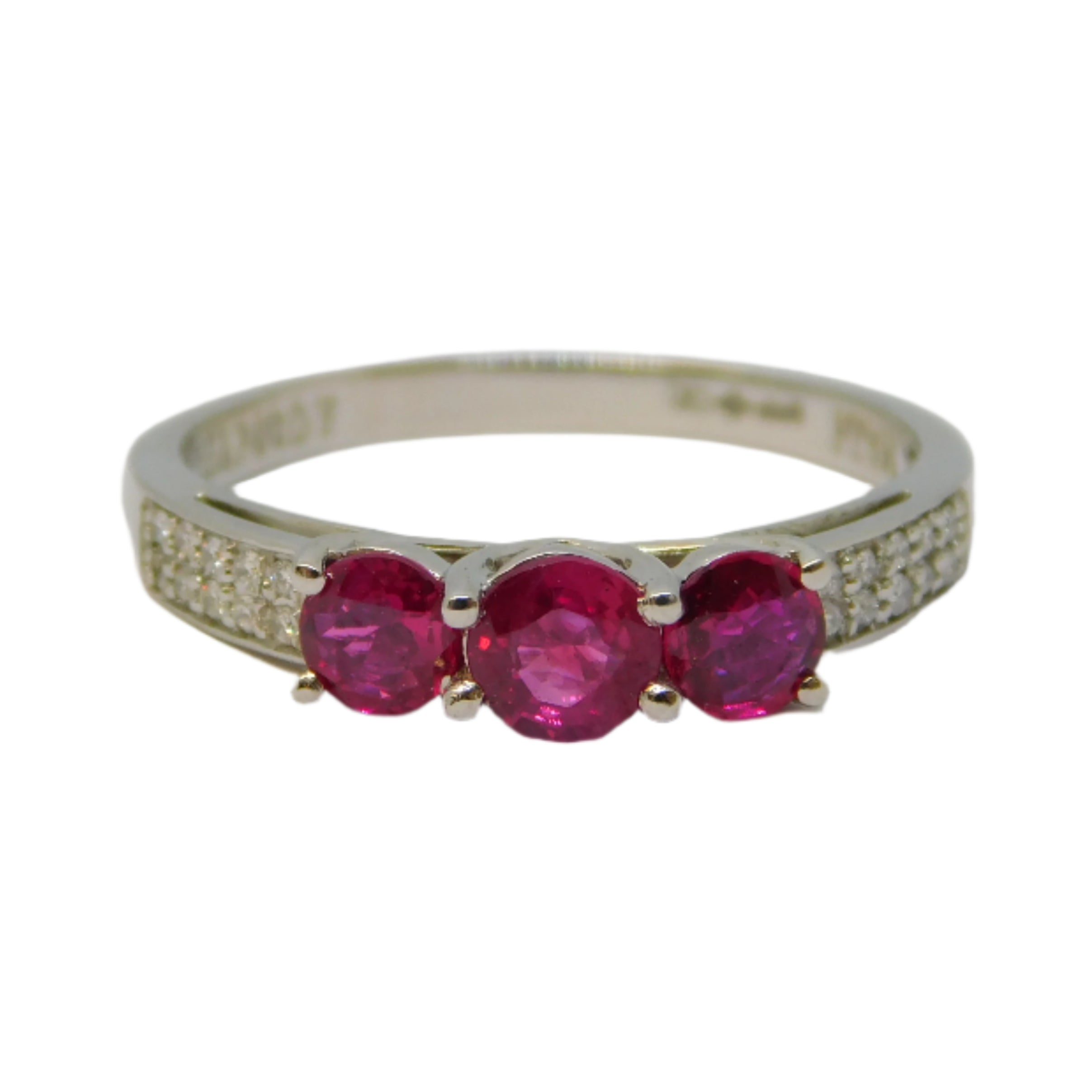 .950 Platinum, Three-Stone Ruby & Diamond Dress Ring Vintage c1990