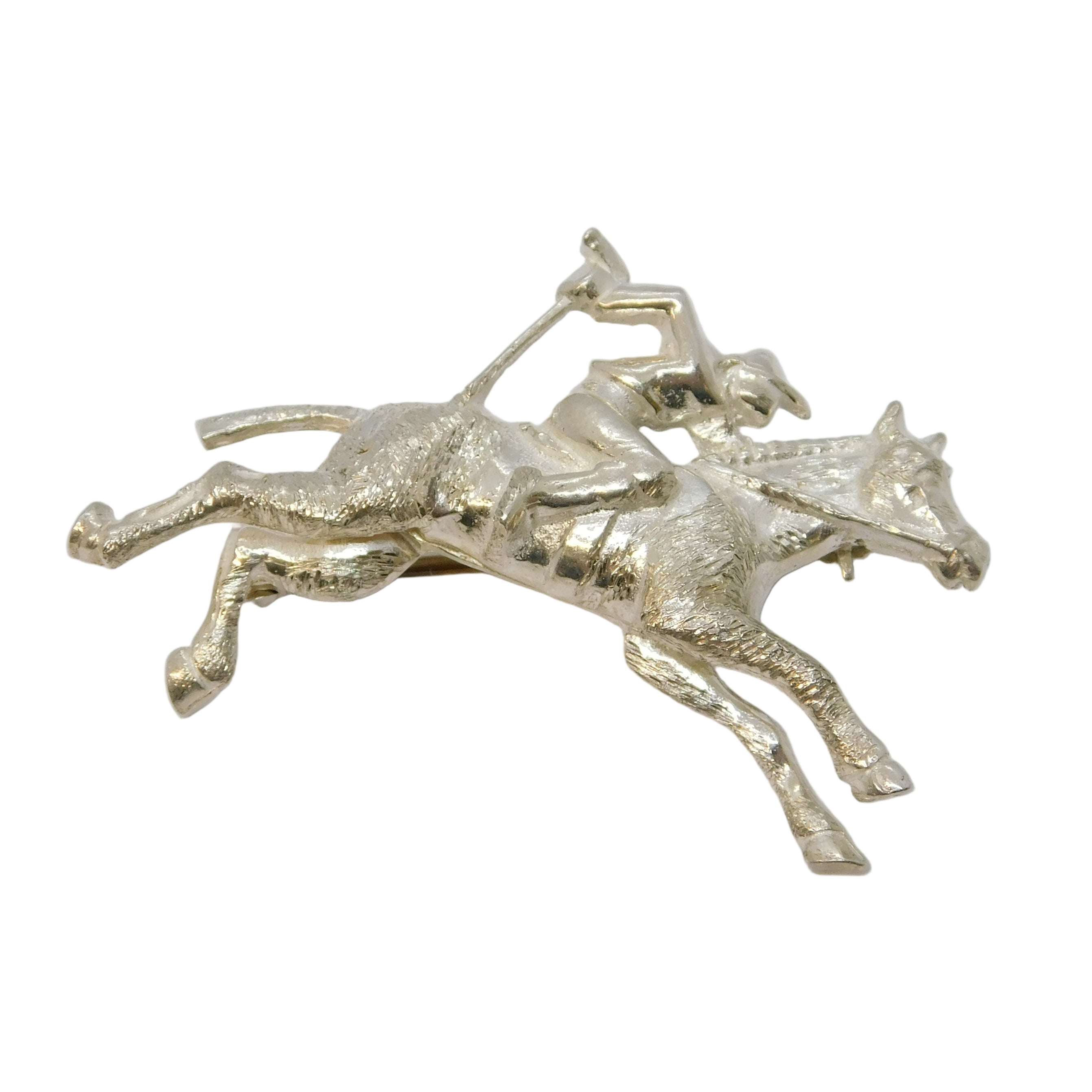 Sterling Silver Horse Racing Interest Jockey Brooch Pin Vintage c1970