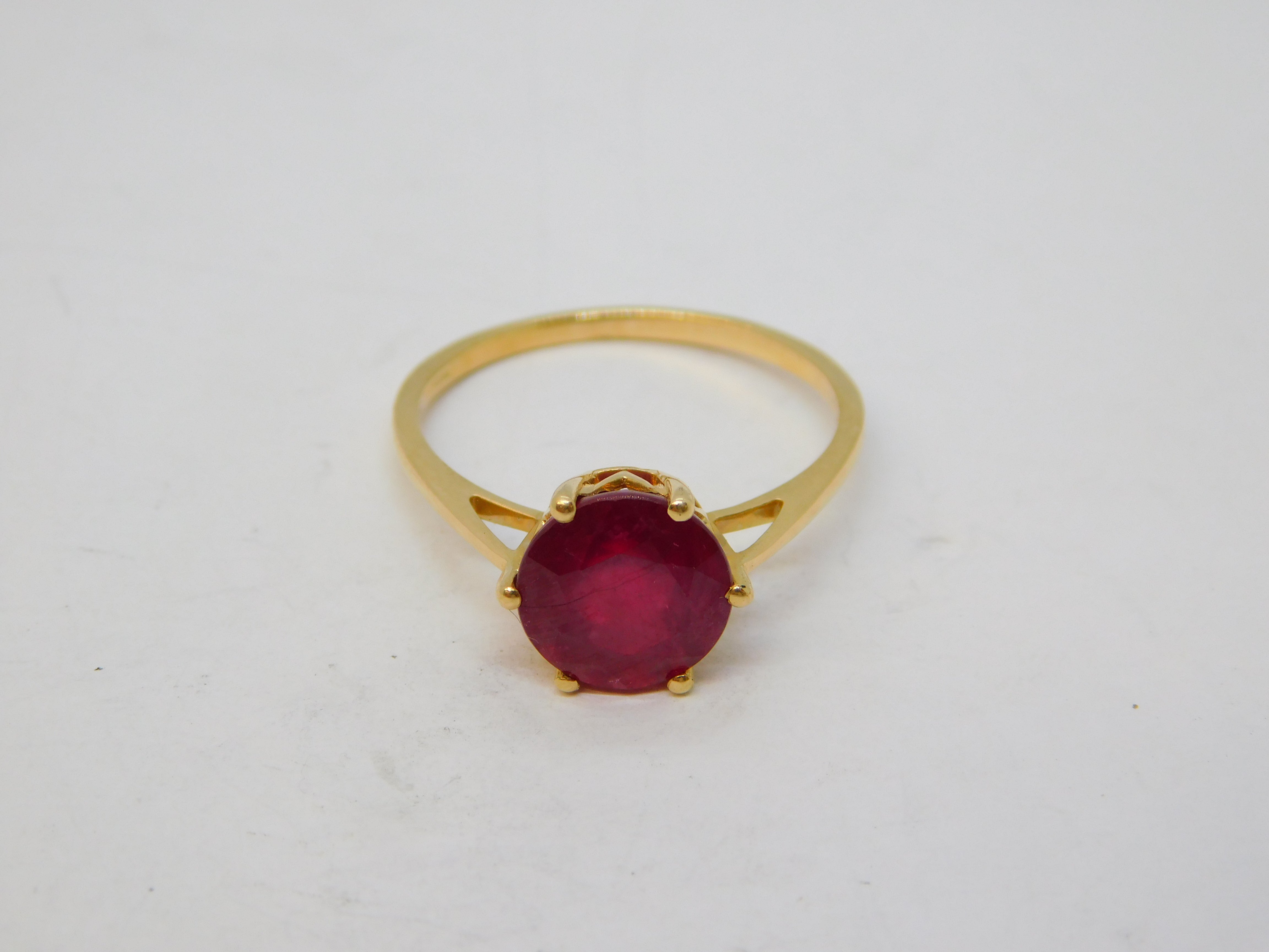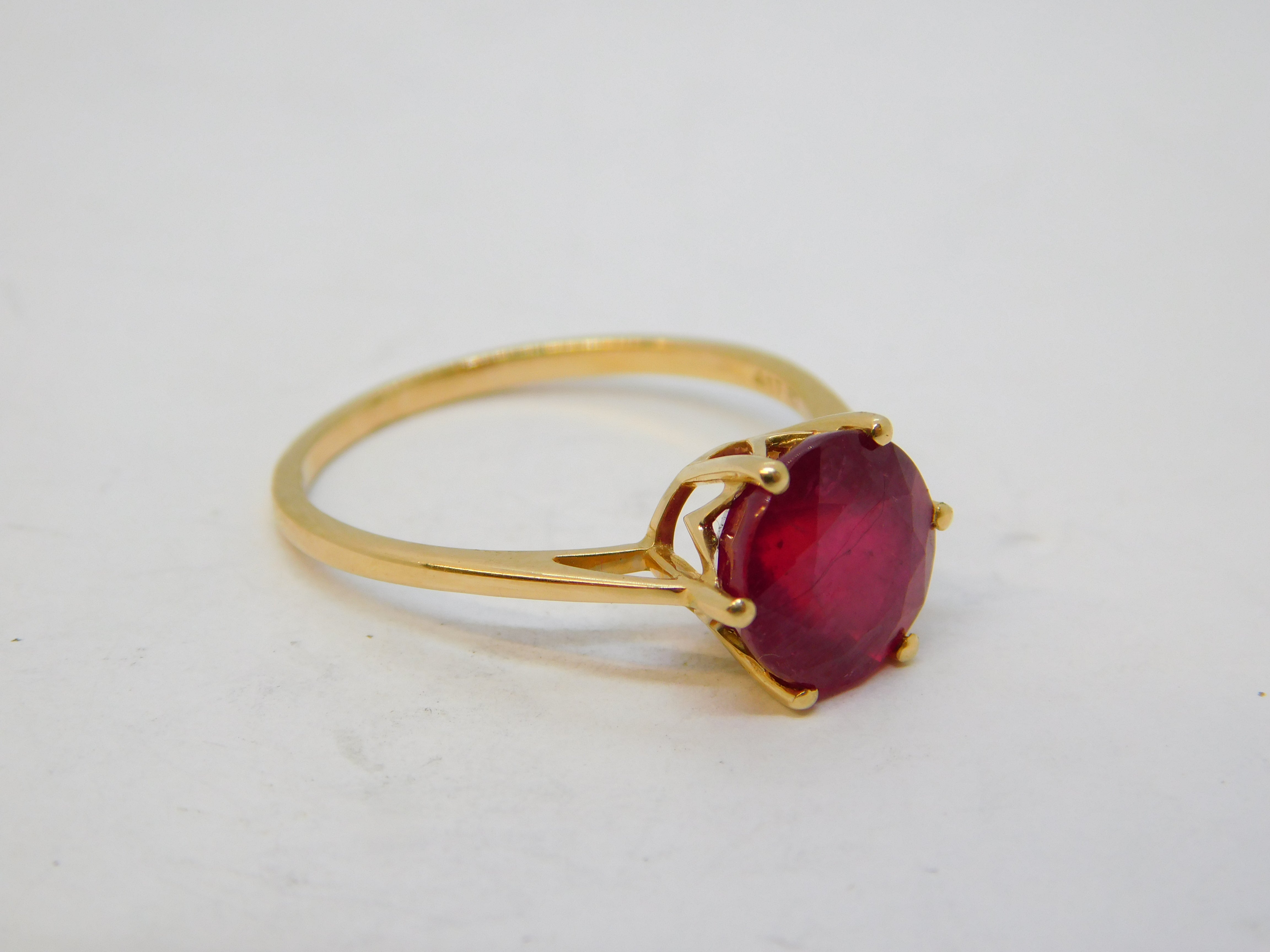 10ct Yellow Gold 2.5ct Ruby Set Solitaire Ring Vintage c2000 Birmingham