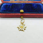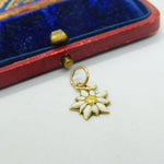 14ct Yellow Gold & Enamel Mountain Edelweiss Flower Charm Antique c1940