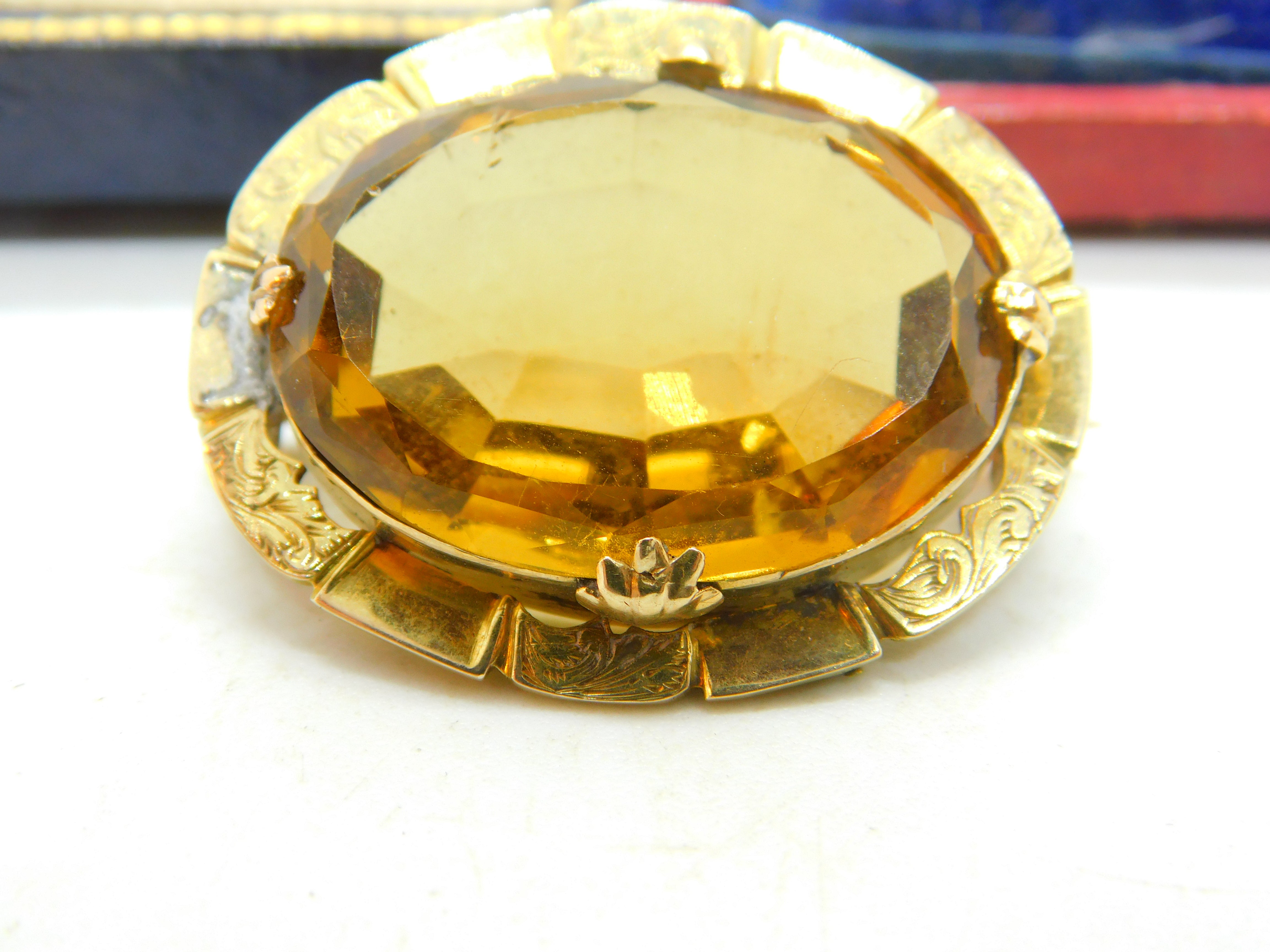 Details: A fantastic and well designed antique Victorian 14ct yellow gold and faceted citrine brooch with lovely floral details c1880. The gold has been XRF tested as it is not marked. This is a wonderful item that would make a perfect gift or addition to any collection. The BOX pictured is for PRESENTATION ONLY and is NOT included in the listings but used to frame the pictures unless specifically stated otherwise.