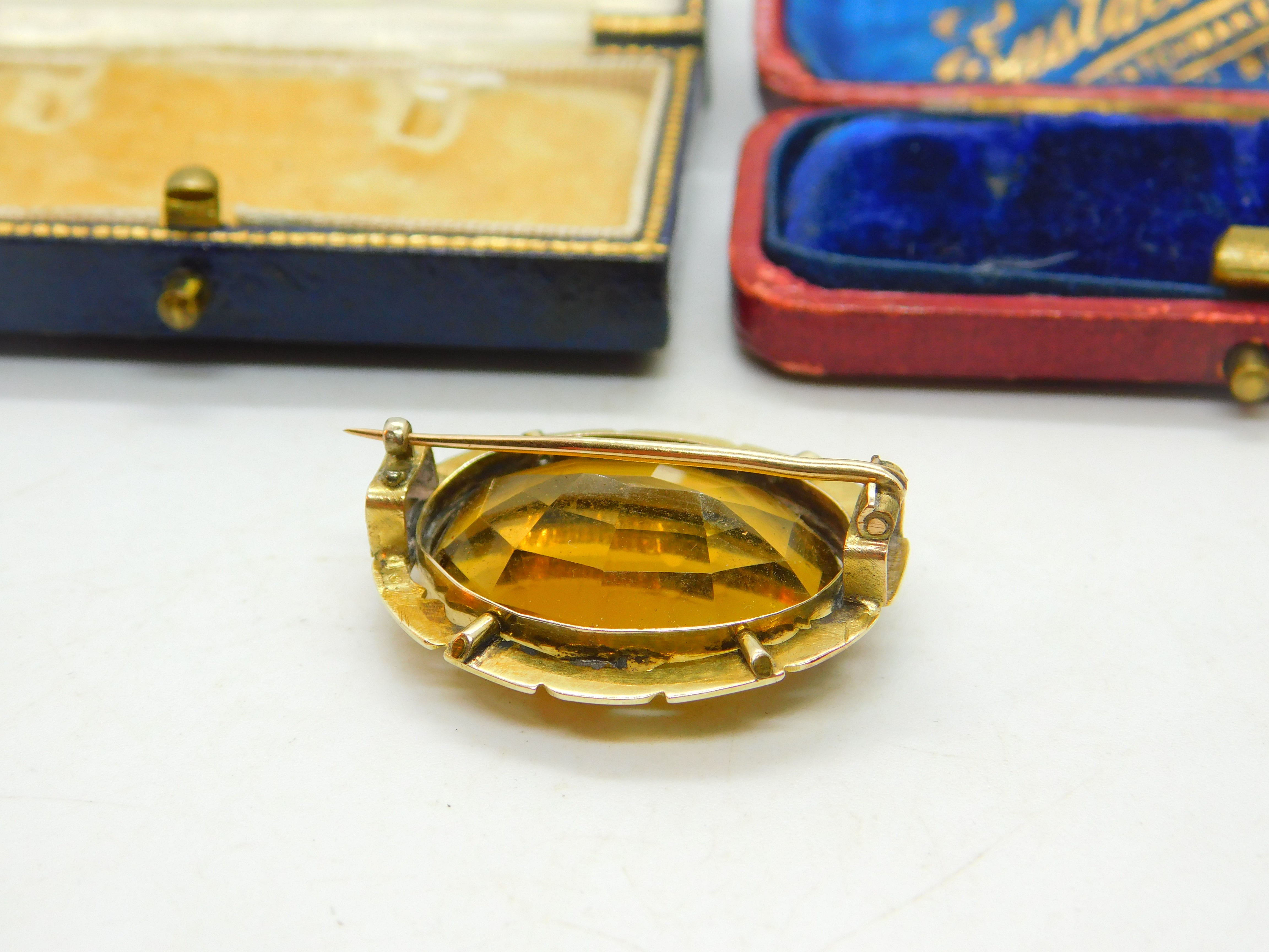 14ct Yellow Gold & Faceted Citrine Brooch Antique c1880 Victorian