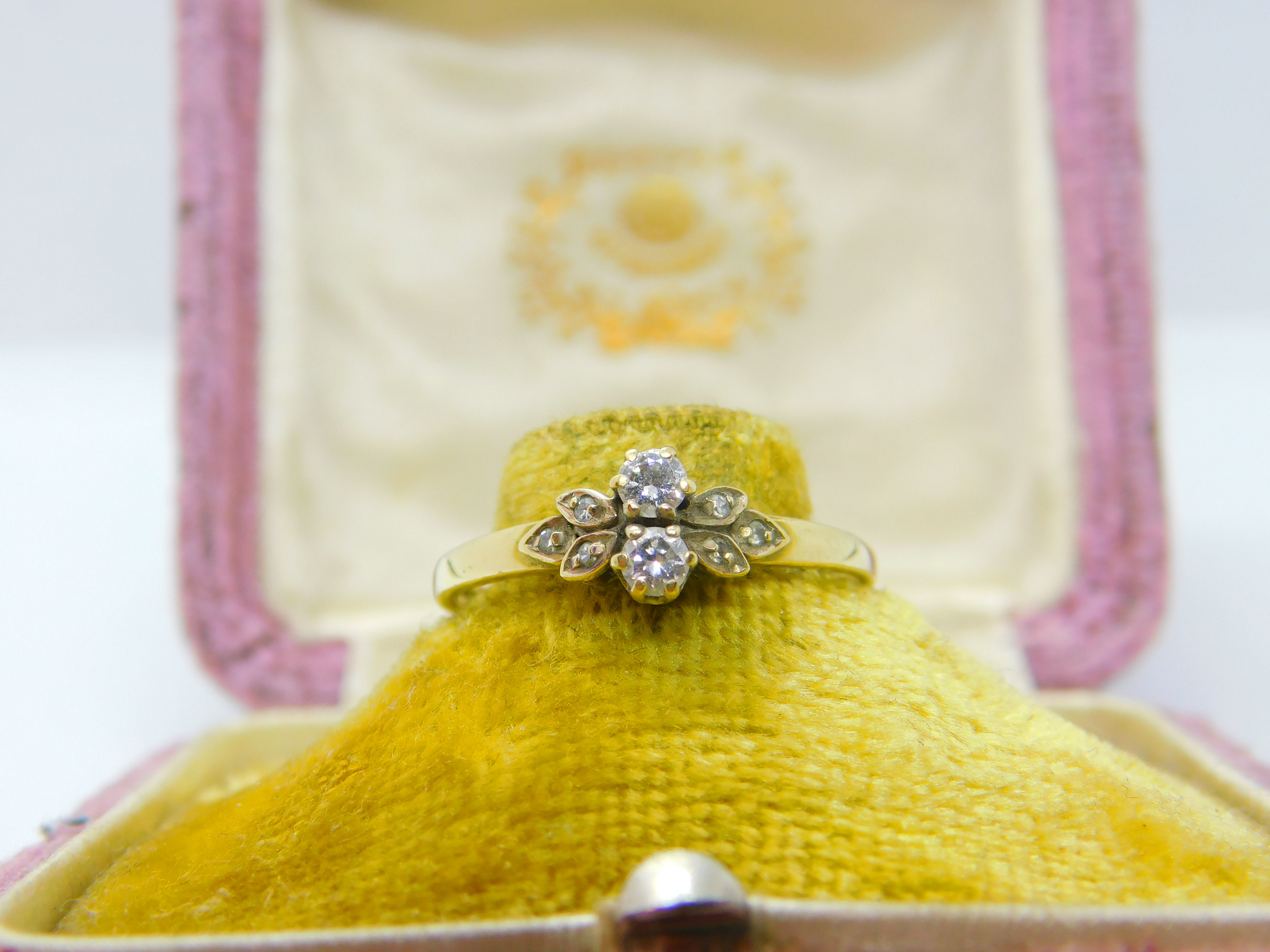 18ct Gold & 0.2ct Diamond Daisy Flower Band Ring Vintage 1969 London