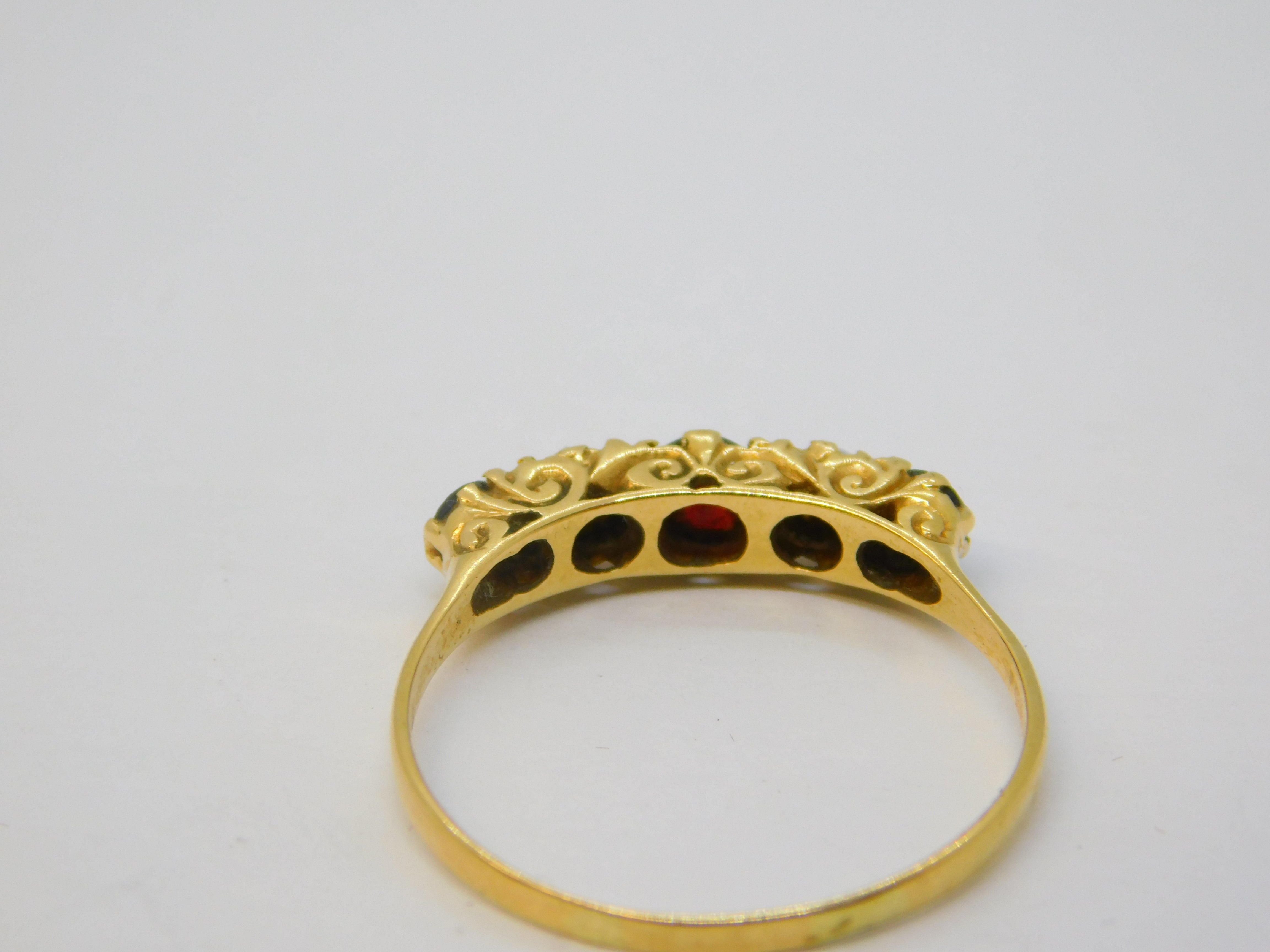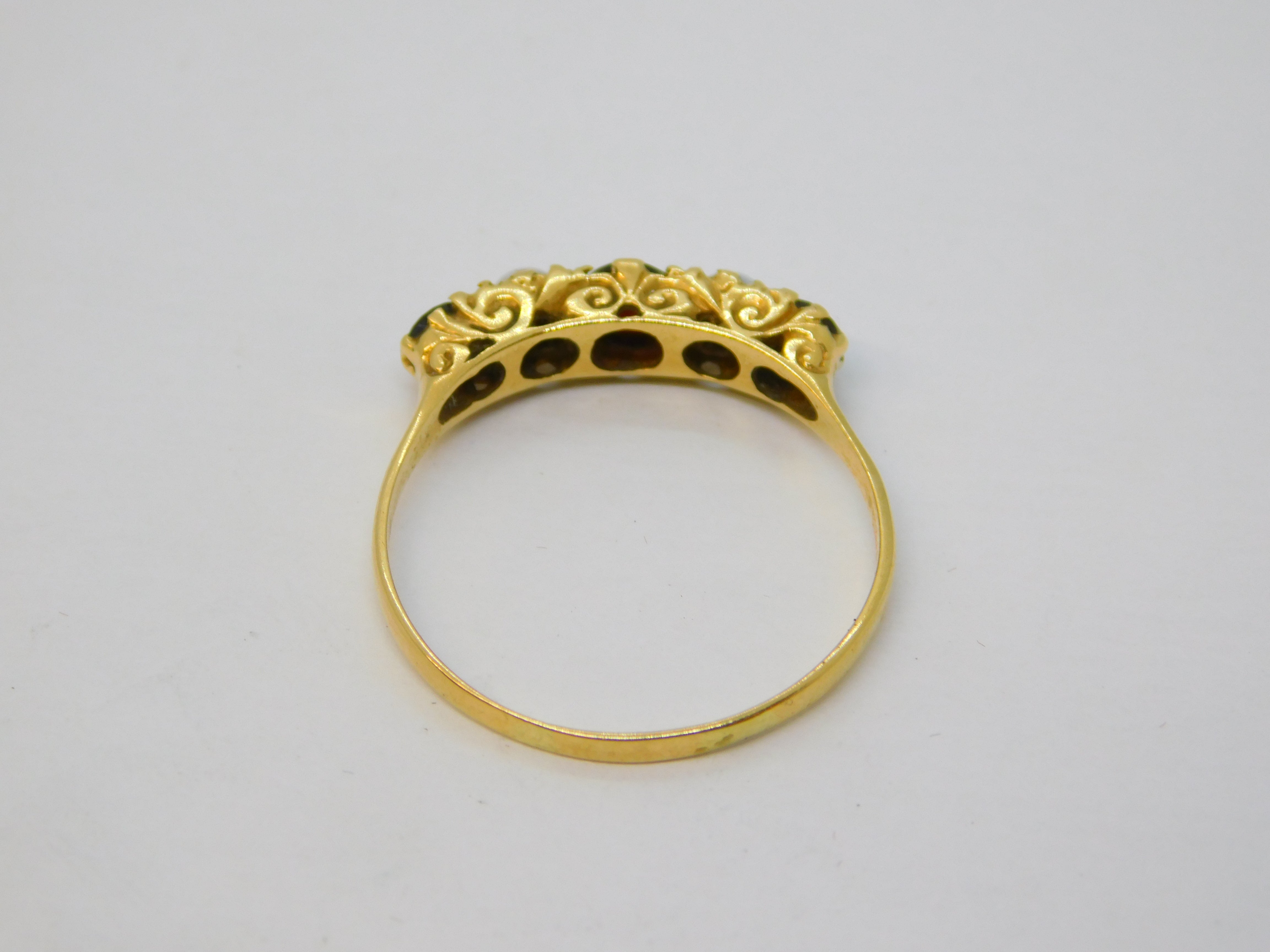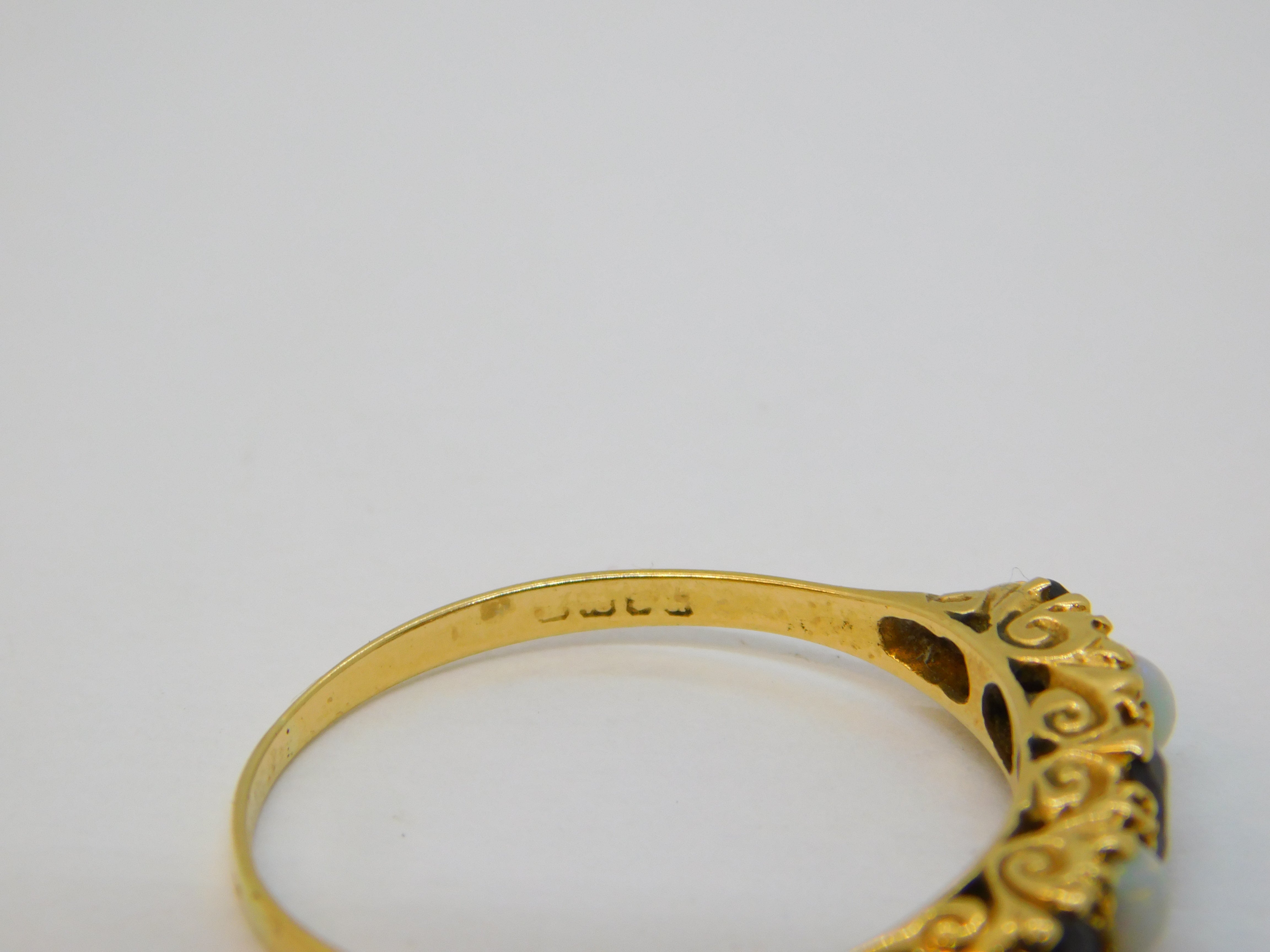 18ct Yellow Gold, Bohemian Garnet & Opal Five-Stone Ring Vintage c1970