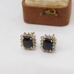 18ct Yellow Gold, Emerald Cut Sapphire & Diamond Stud Earrings Vintage c2000
