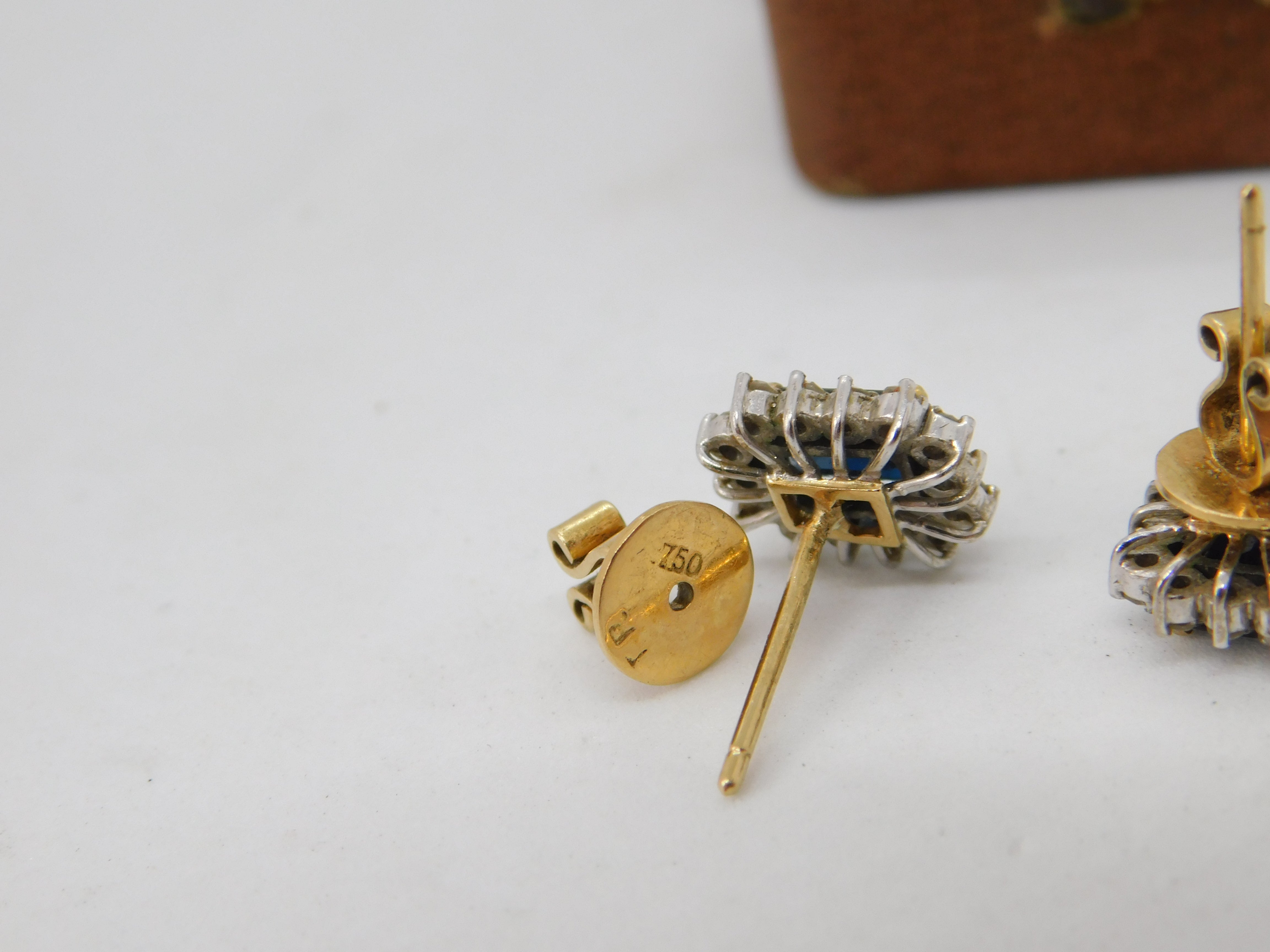 Details: A fantastic and wonderfully designed vintage 18ct yellow gold pair of cluster stud earrings set with emerald cut sapphires flanked by diamonds hallmarked to the reverse c2000. The stones have all been tested. This is a wonderful item that would make a perfect gift or addition to any collection. The BOX pictured is for PRESENTATION ONLY and is NOT included in the listings but used to frame the pictures unless specifically stated otherwise.