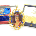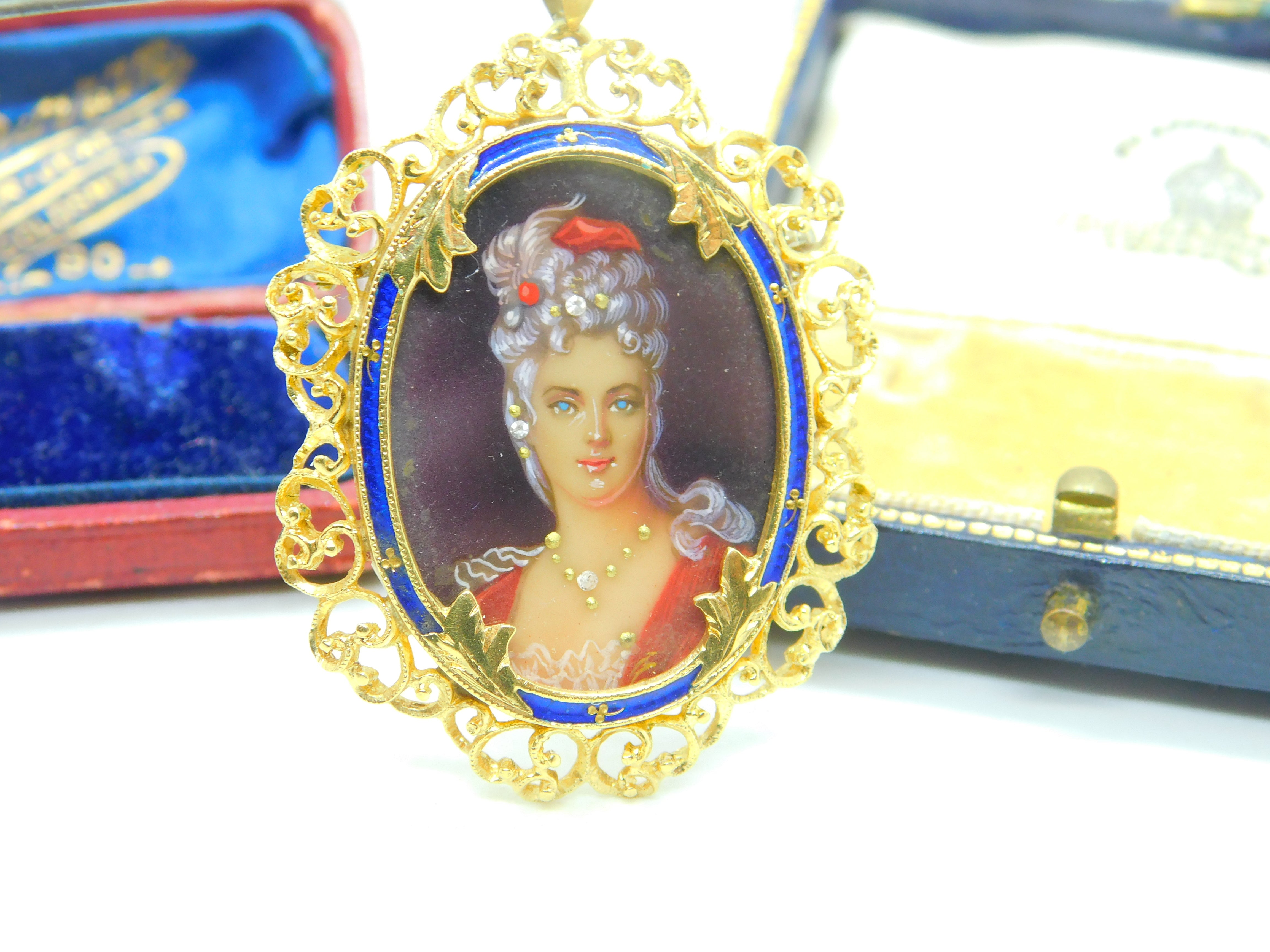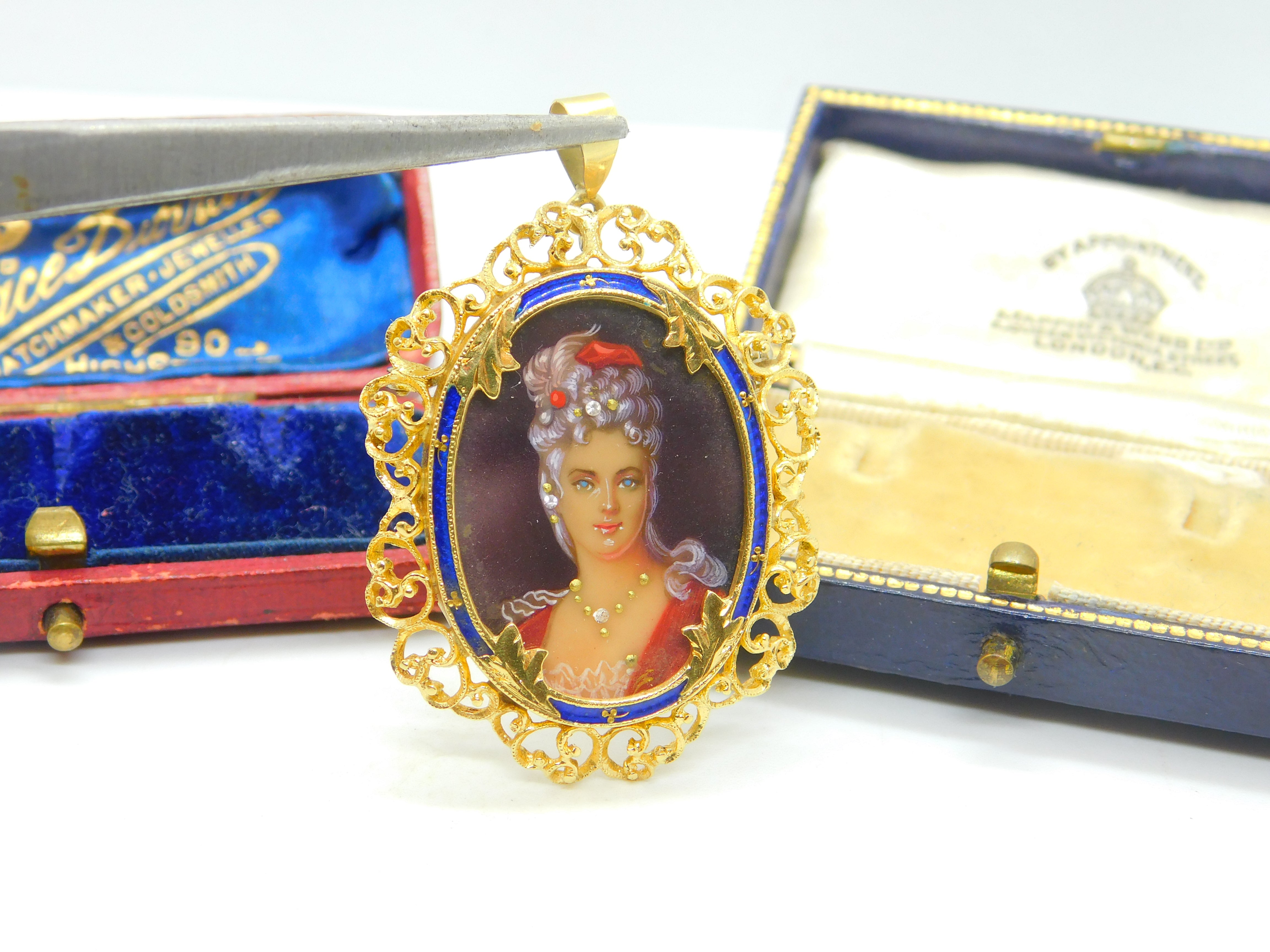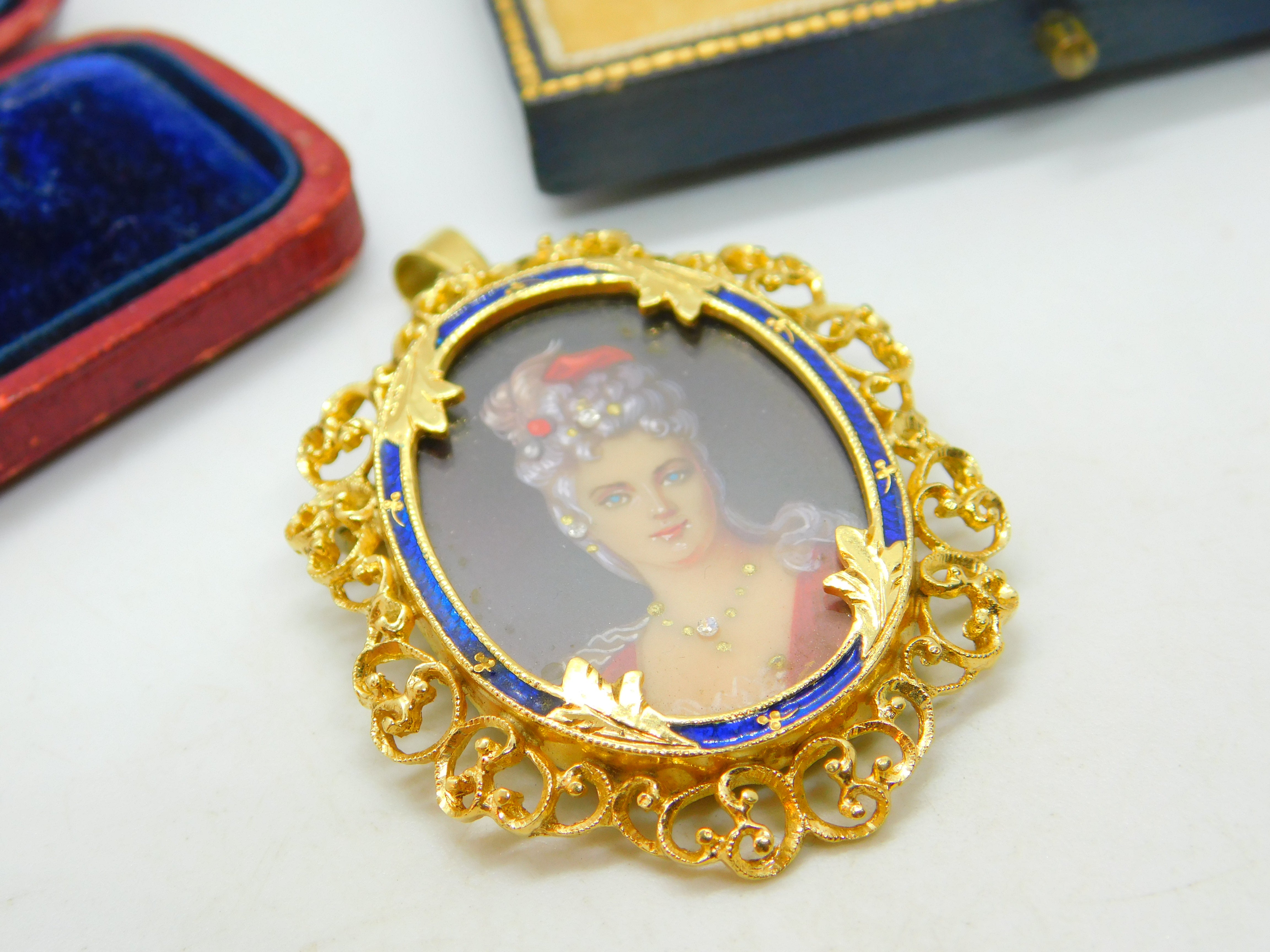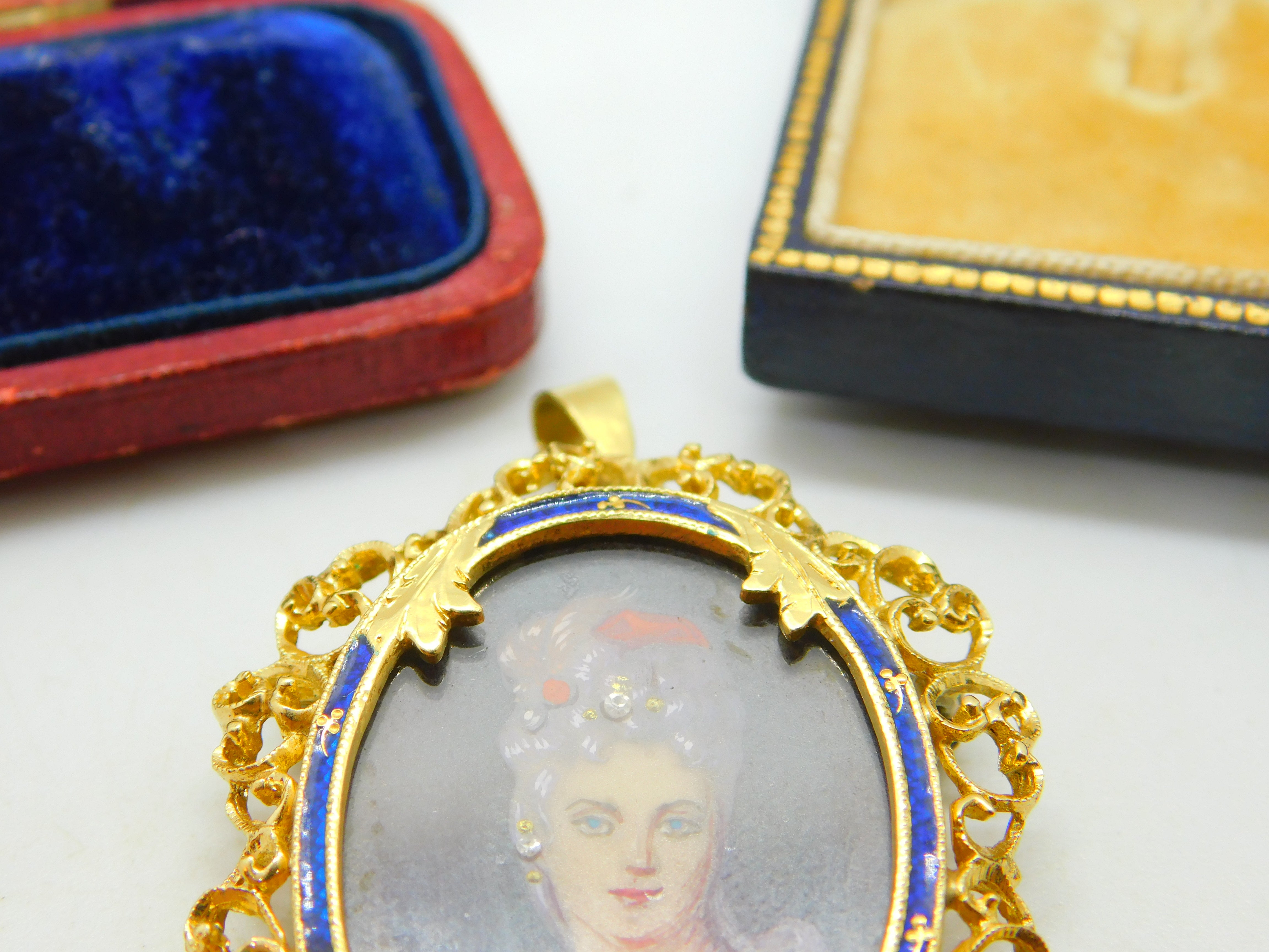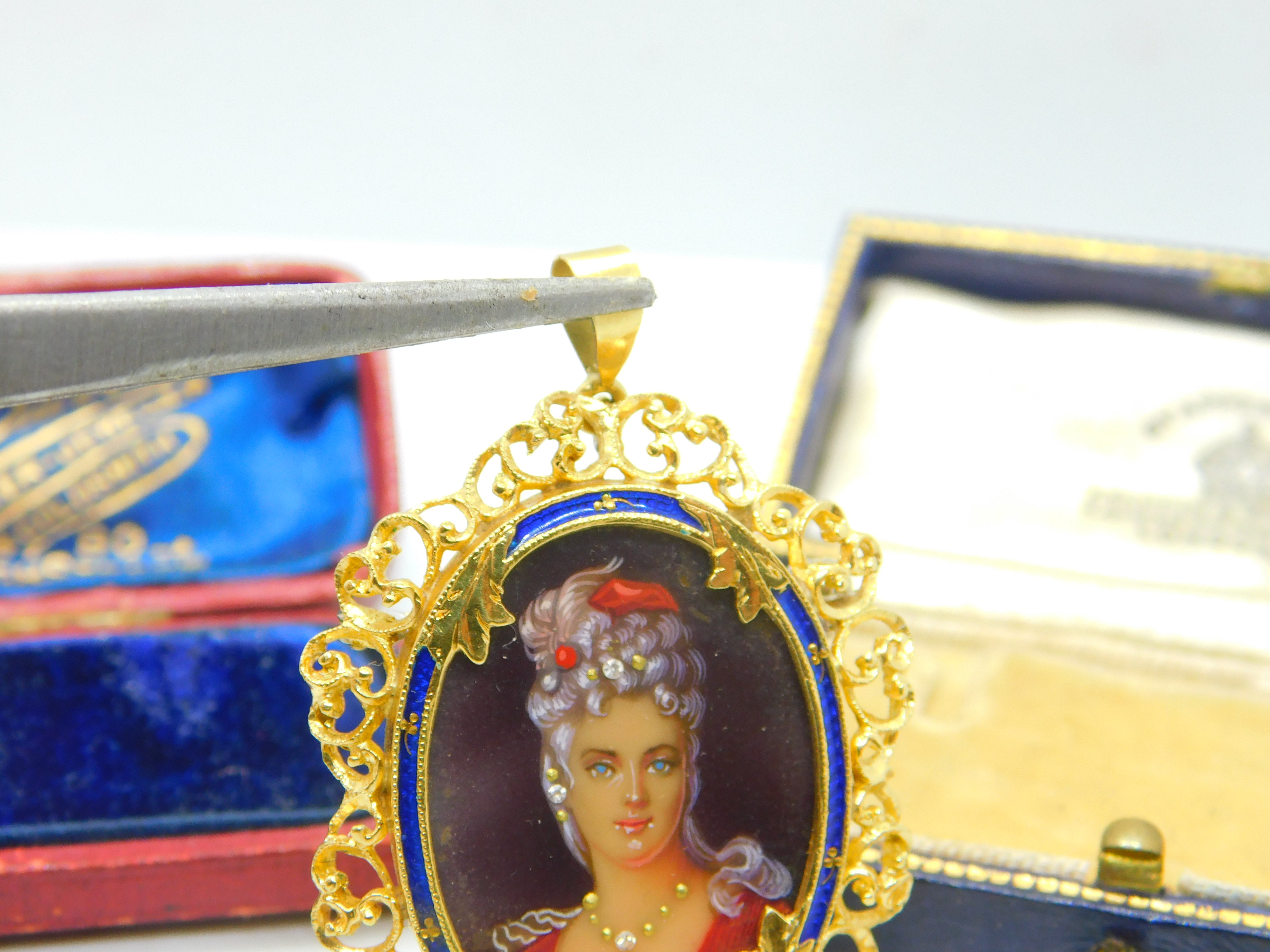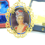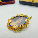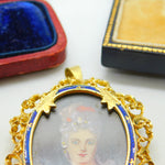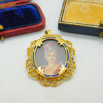 18ct Yellow Gold & Enamel Victorian Revival Portrait Miniature Pendant c1950