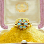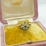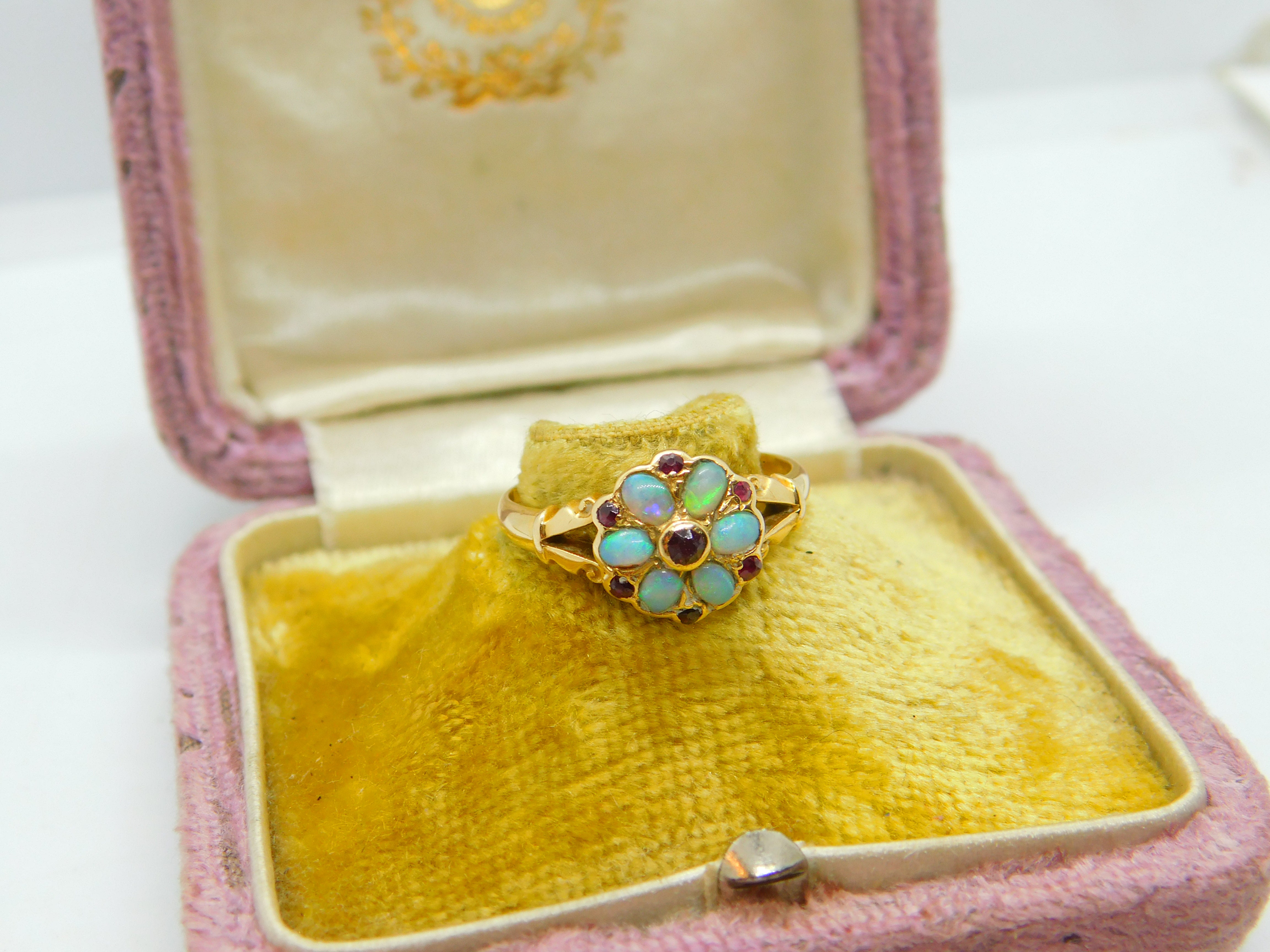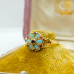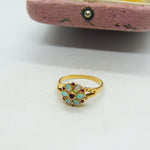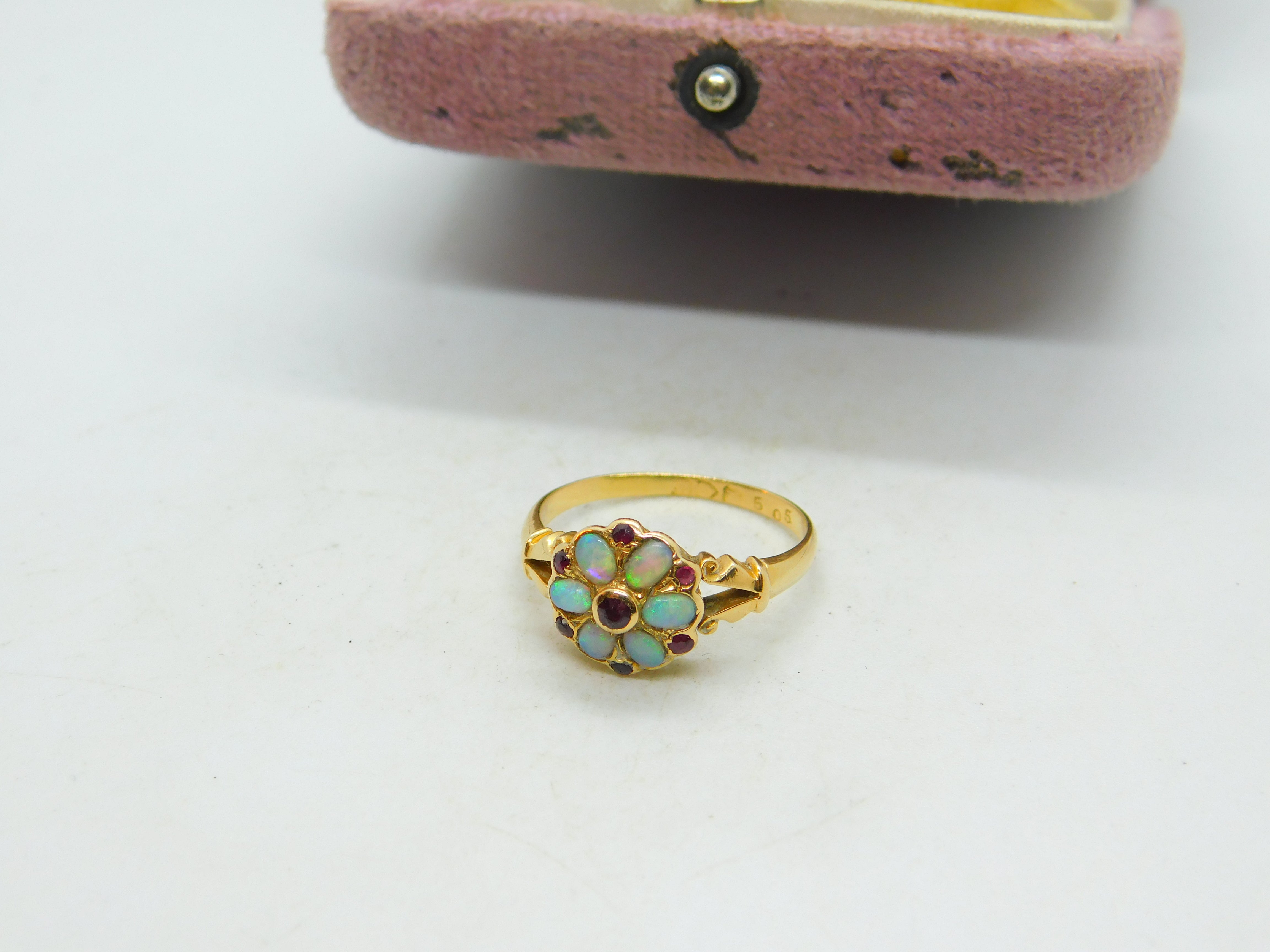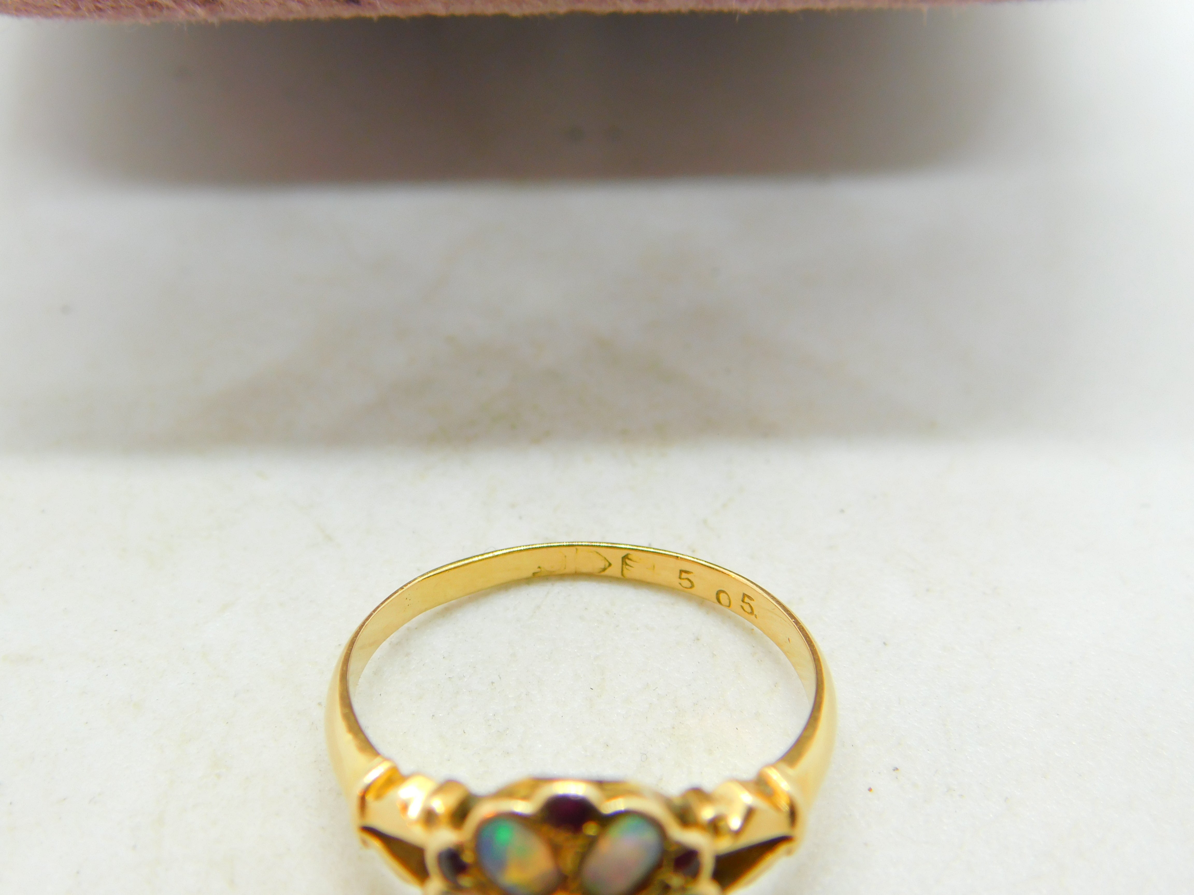 18ct Yellow Gold, Fire Opal & Ruby Floral Band Ring Antique 1912 Chester Deco