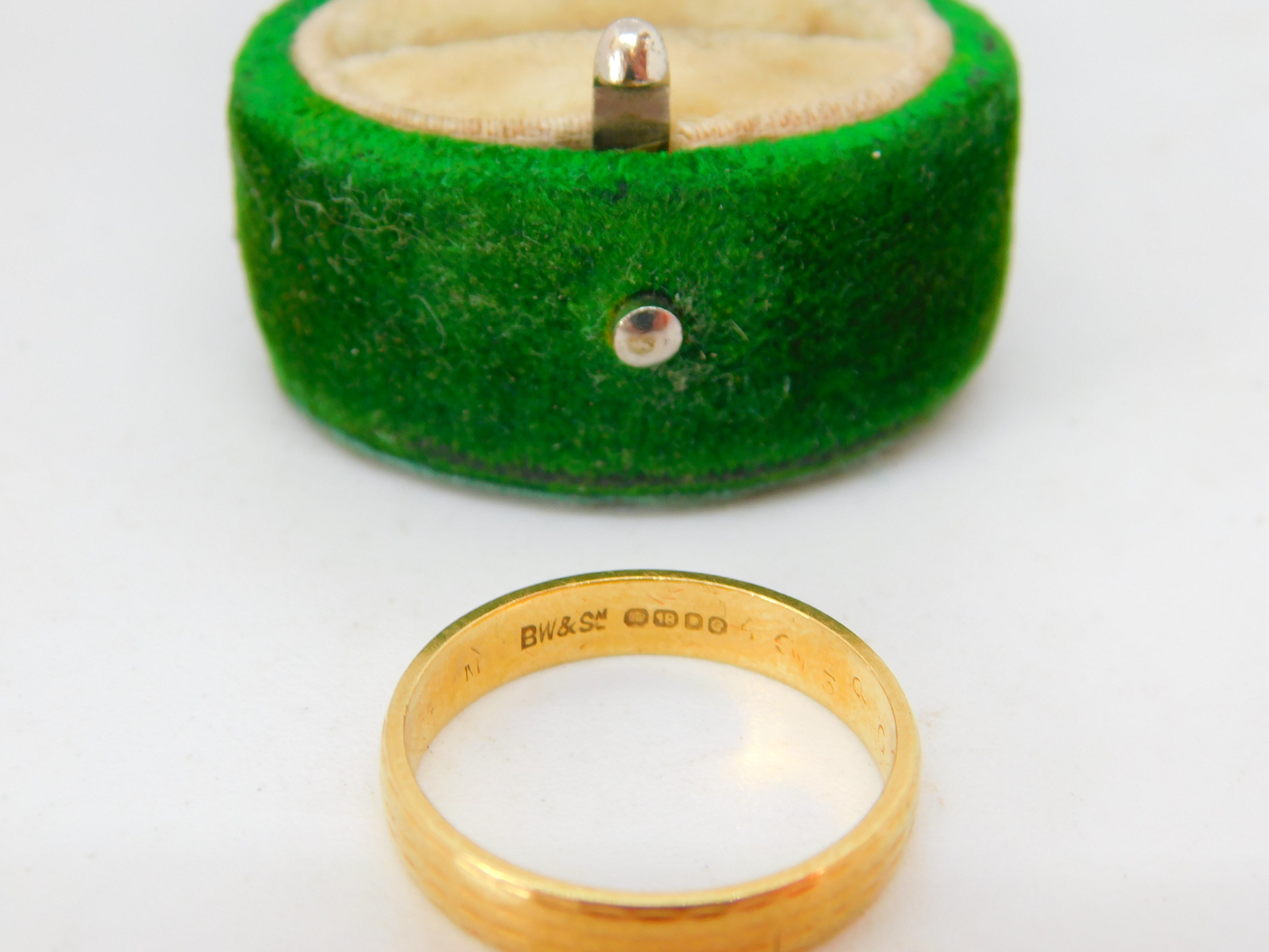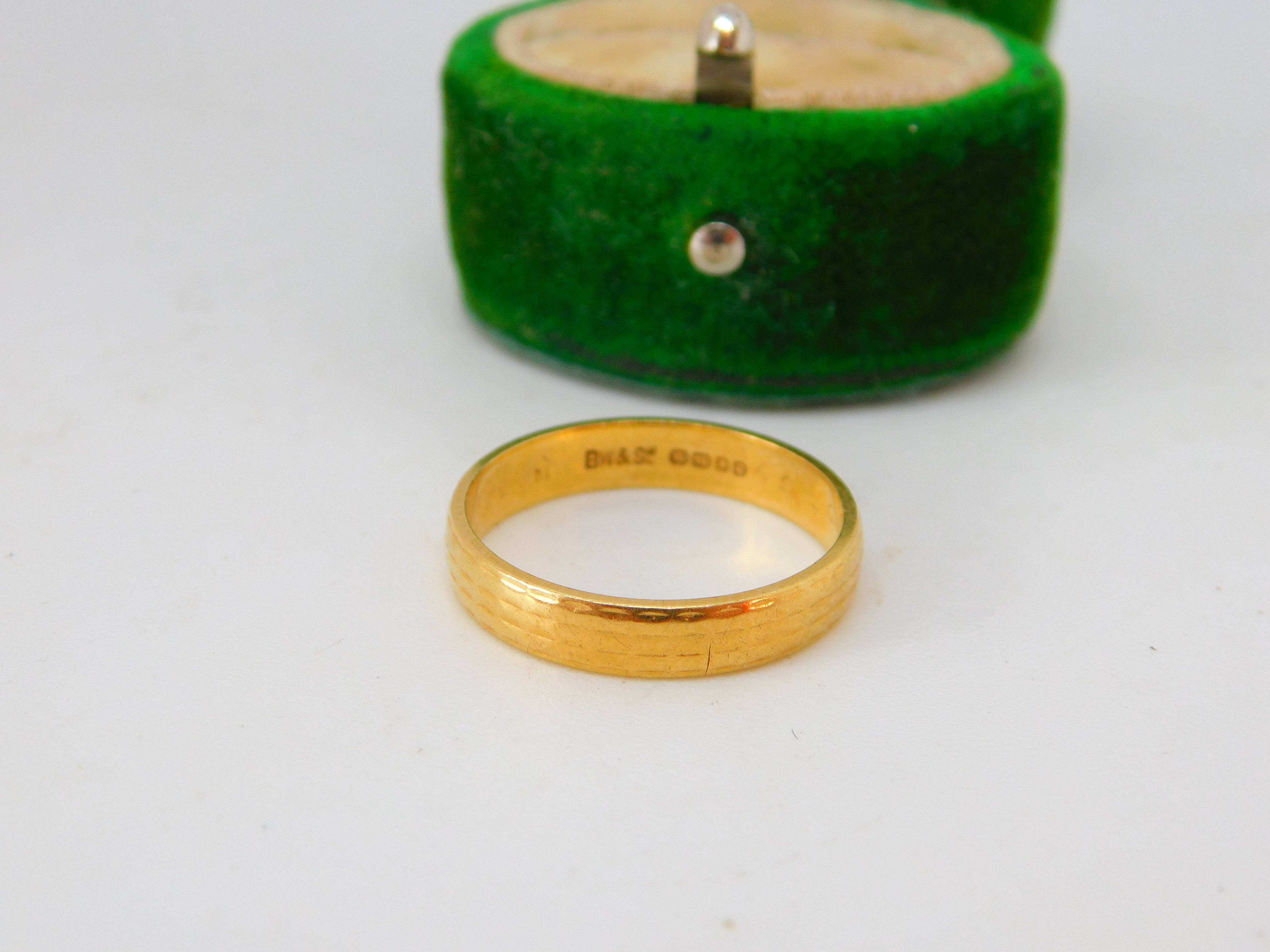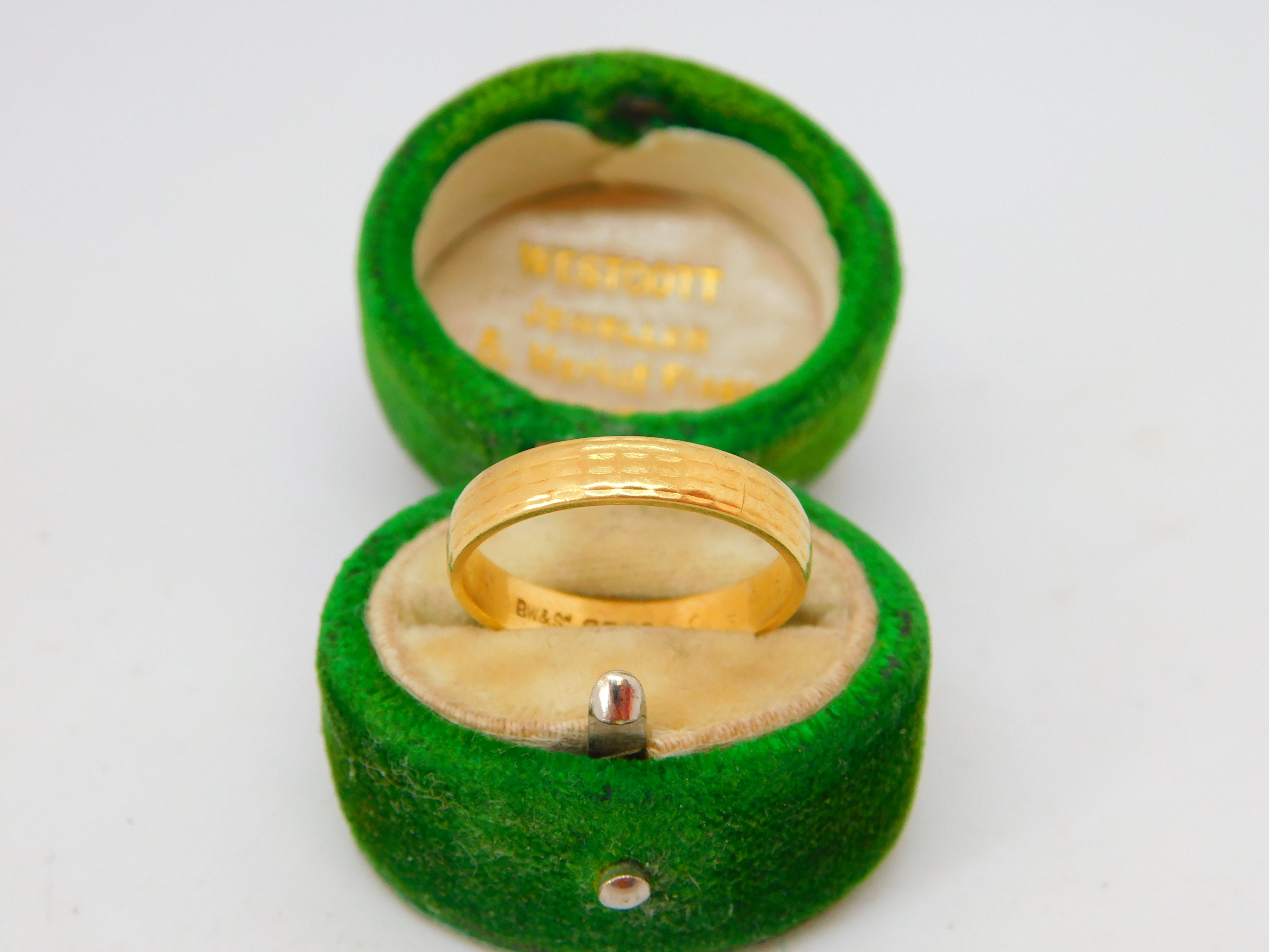 18ct Yellow Gold Lined Pattern Wedding Band Ring Vintage 1981 London