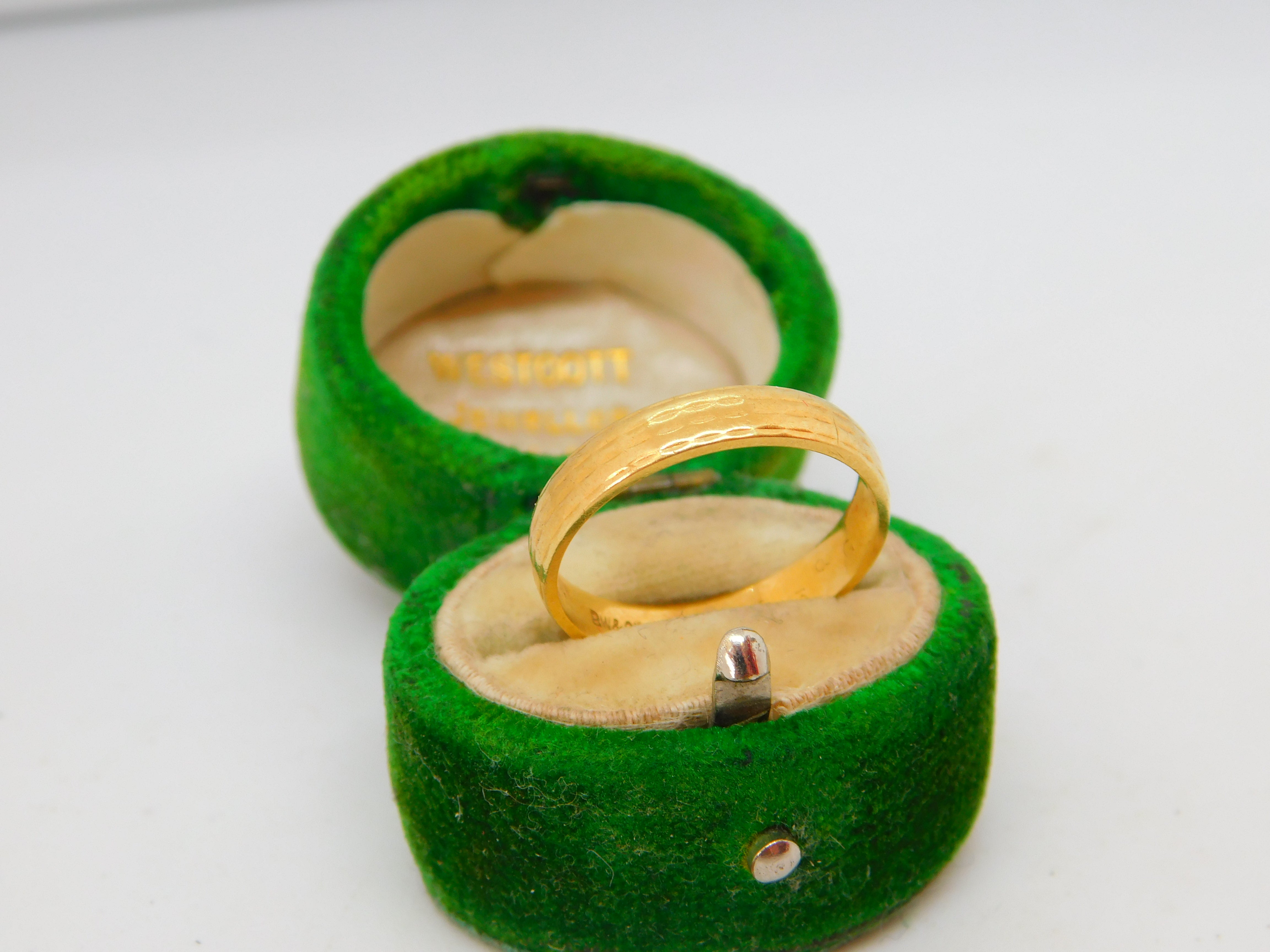 Details: A fantastic and wonderfully designed vintage 18ct yellow gold lined pattern wedding band ring with lovely detailing hallmarked London 1981. This is a wonderful item that would make a perfect gift or addition to any collection. The BOX pictured is for PRESENTATION ONLY and is NOT included in the listings but used to frame the pictures unless specifically stated otherwise.