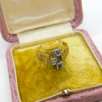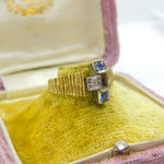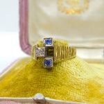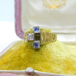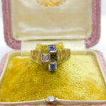 18ct Yellow Gold, Sapphire & Diamond Abstract Modernist Ring Vintage 1971 London