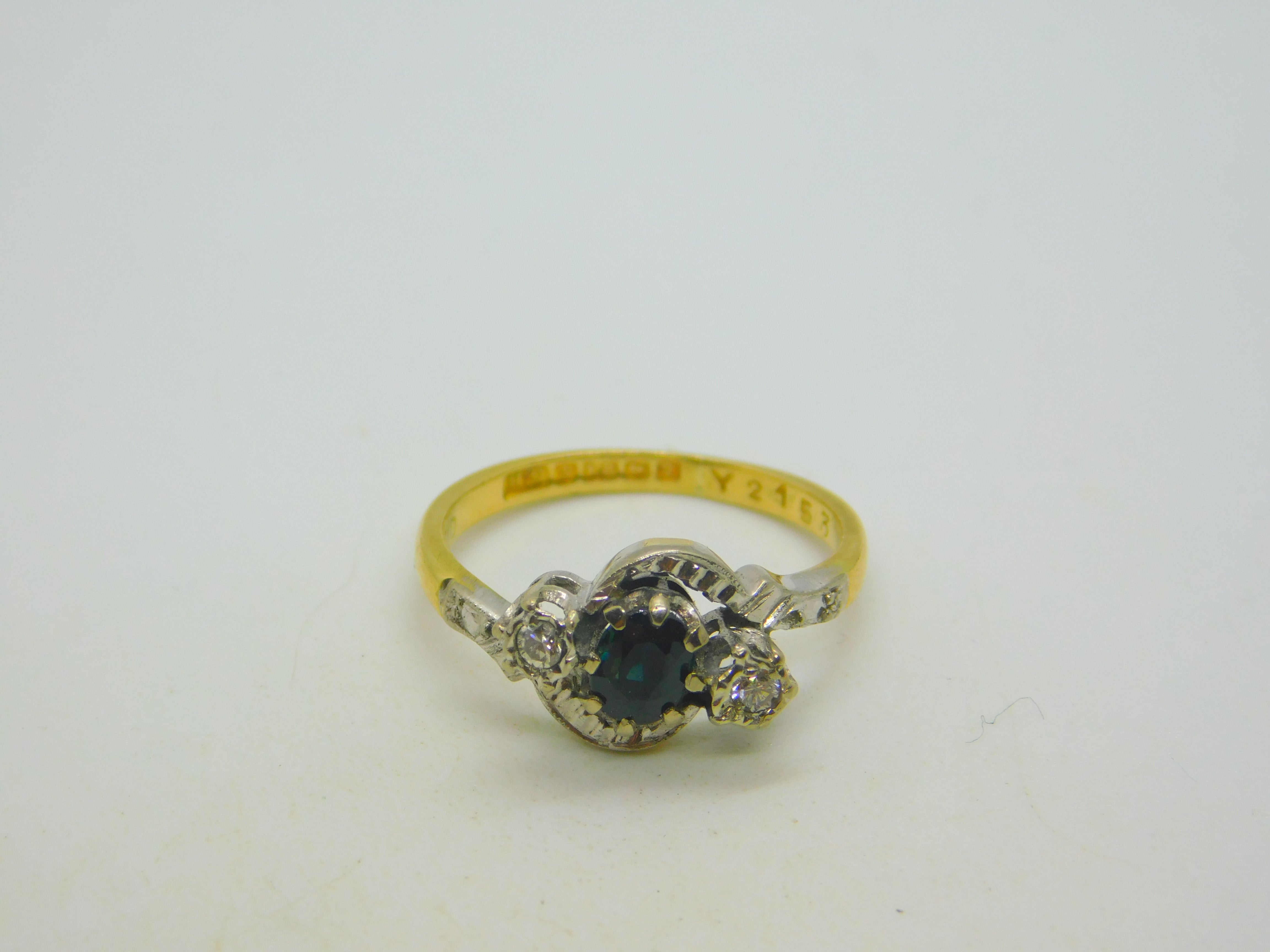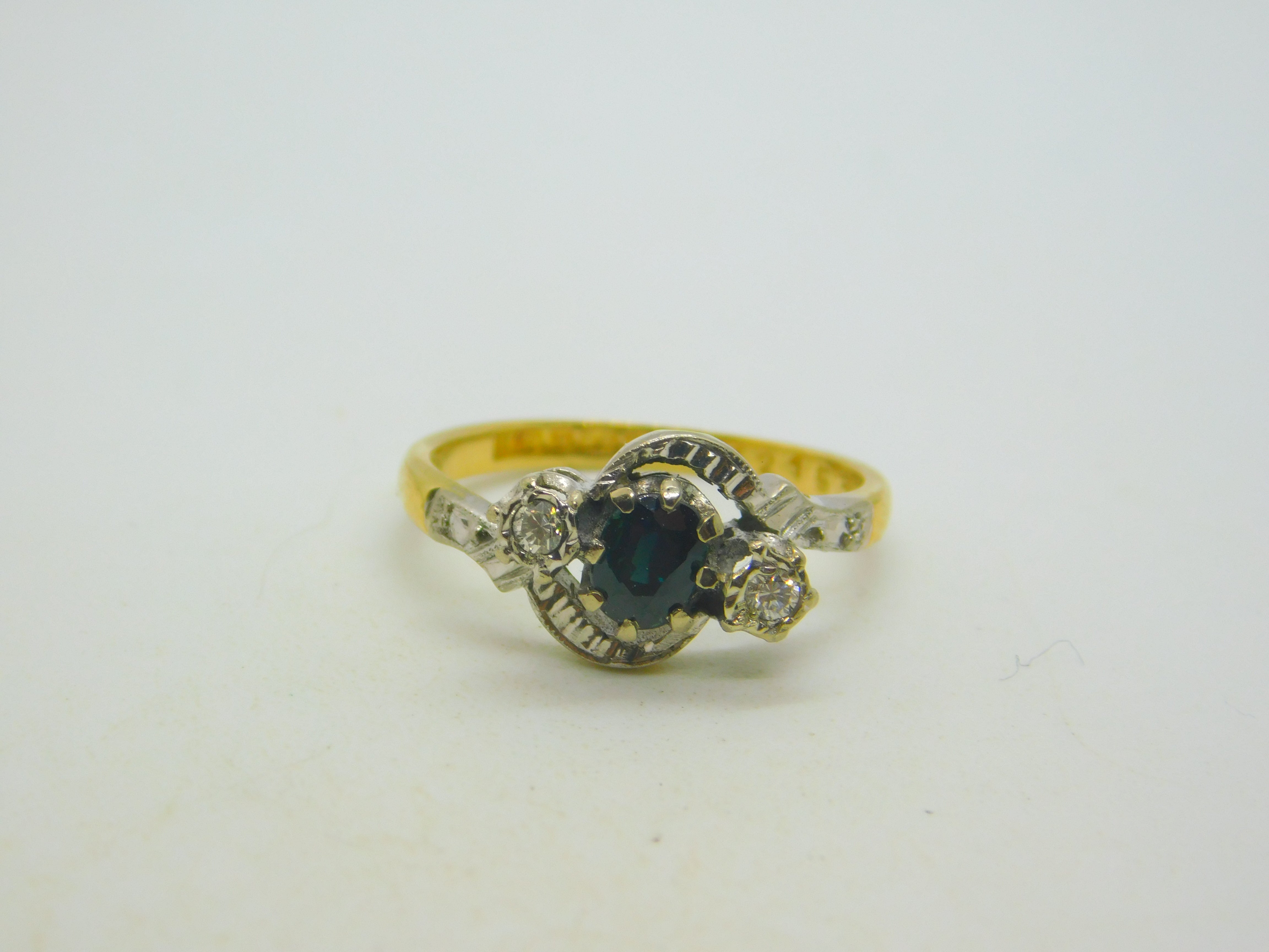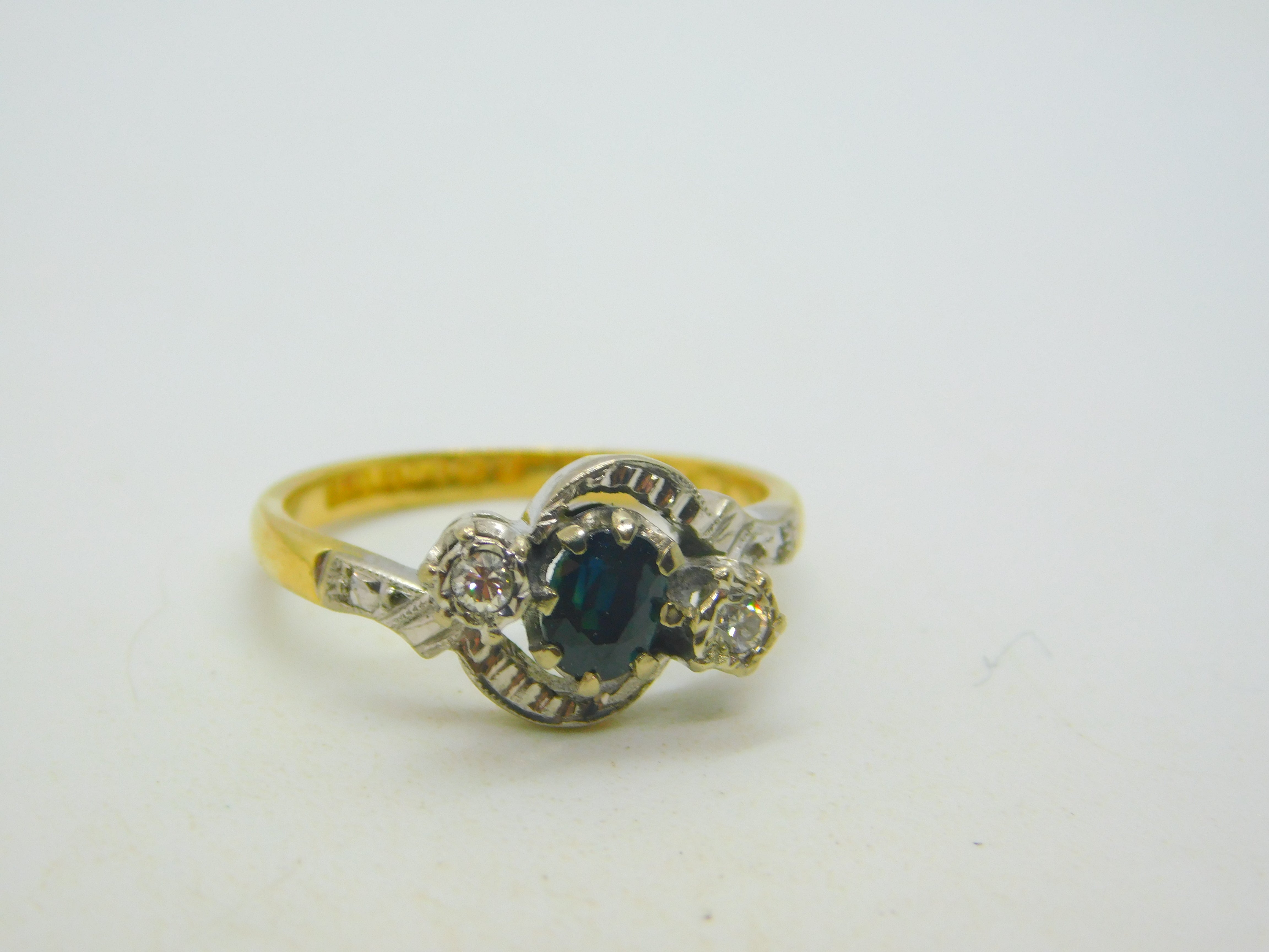 Details: A fantastic and wonderfully designed vintage 18ct yellow gold engagement ring set with diamonds flanking a central sapphire hallmarked Birmingham 1965 to the interior band. This is a wonderful item that would make a perfect gift or addition to any collection. The BOX pictured is for PRESENTATION ONLY and is NOT included in the listings but used to frame the pictures unless specifically stated otherwise.