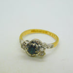 18ct Yellow Gold, Sapphire & Diamond Engagement Ring Vintage 1965 Birmingham