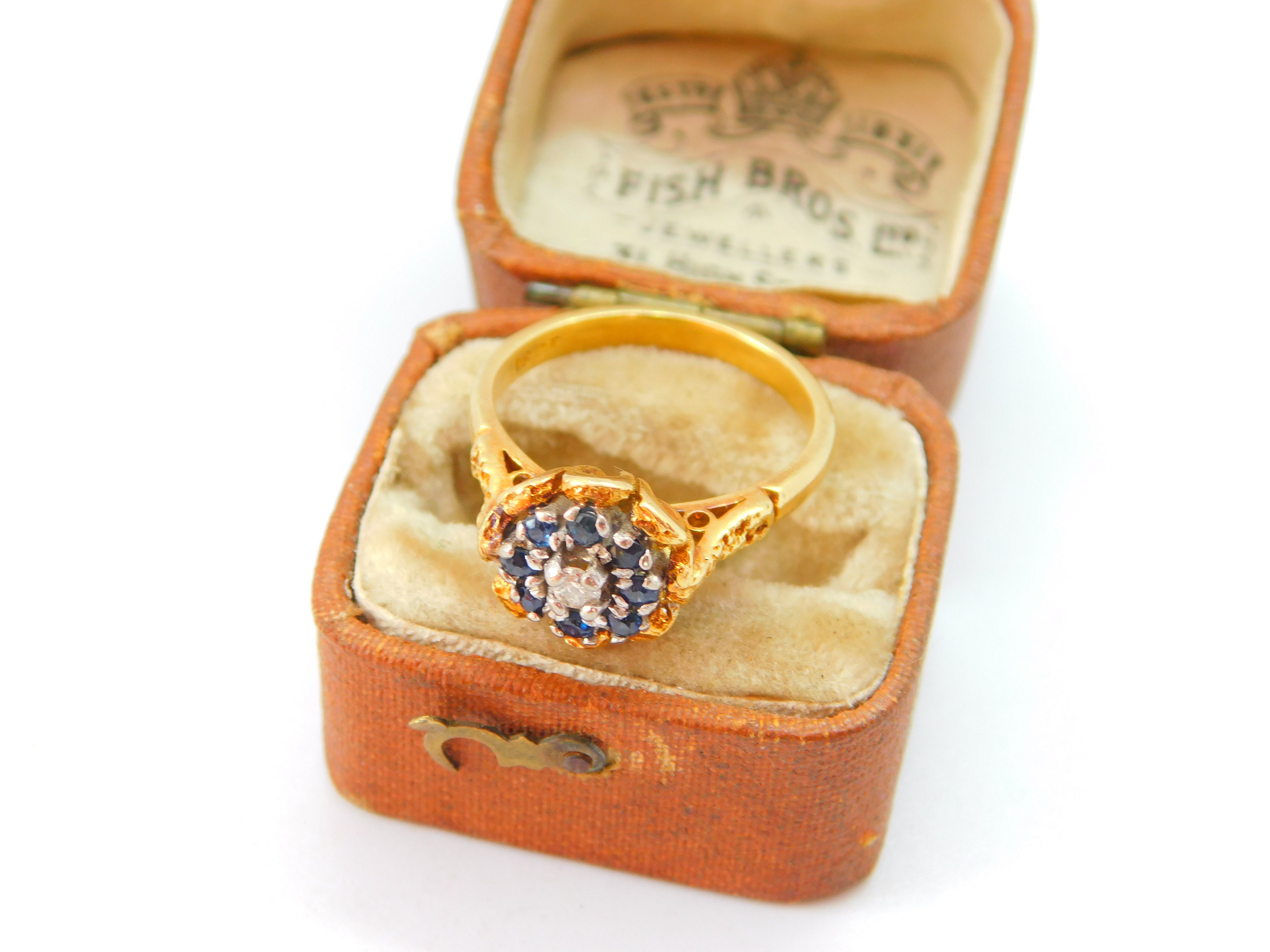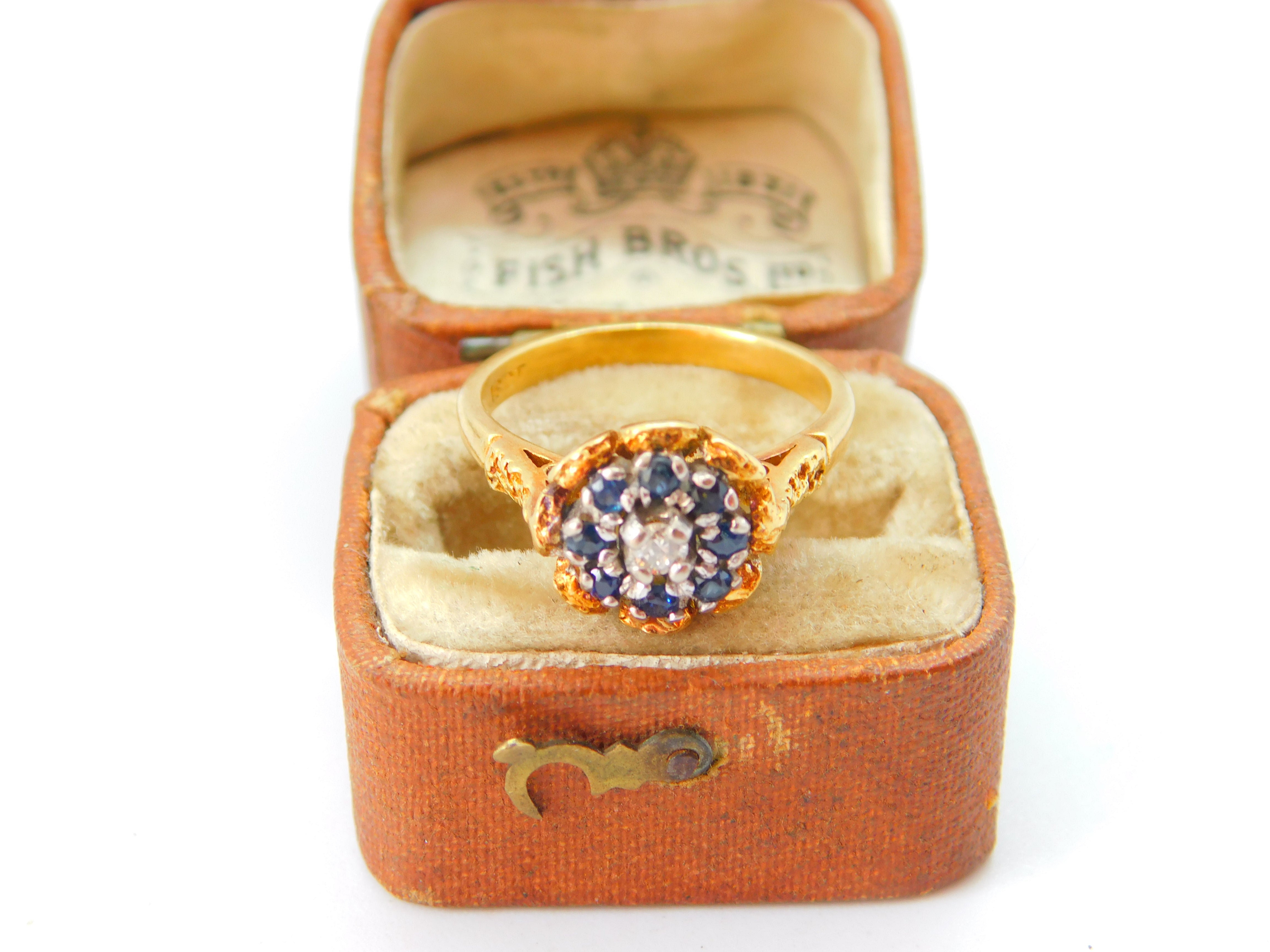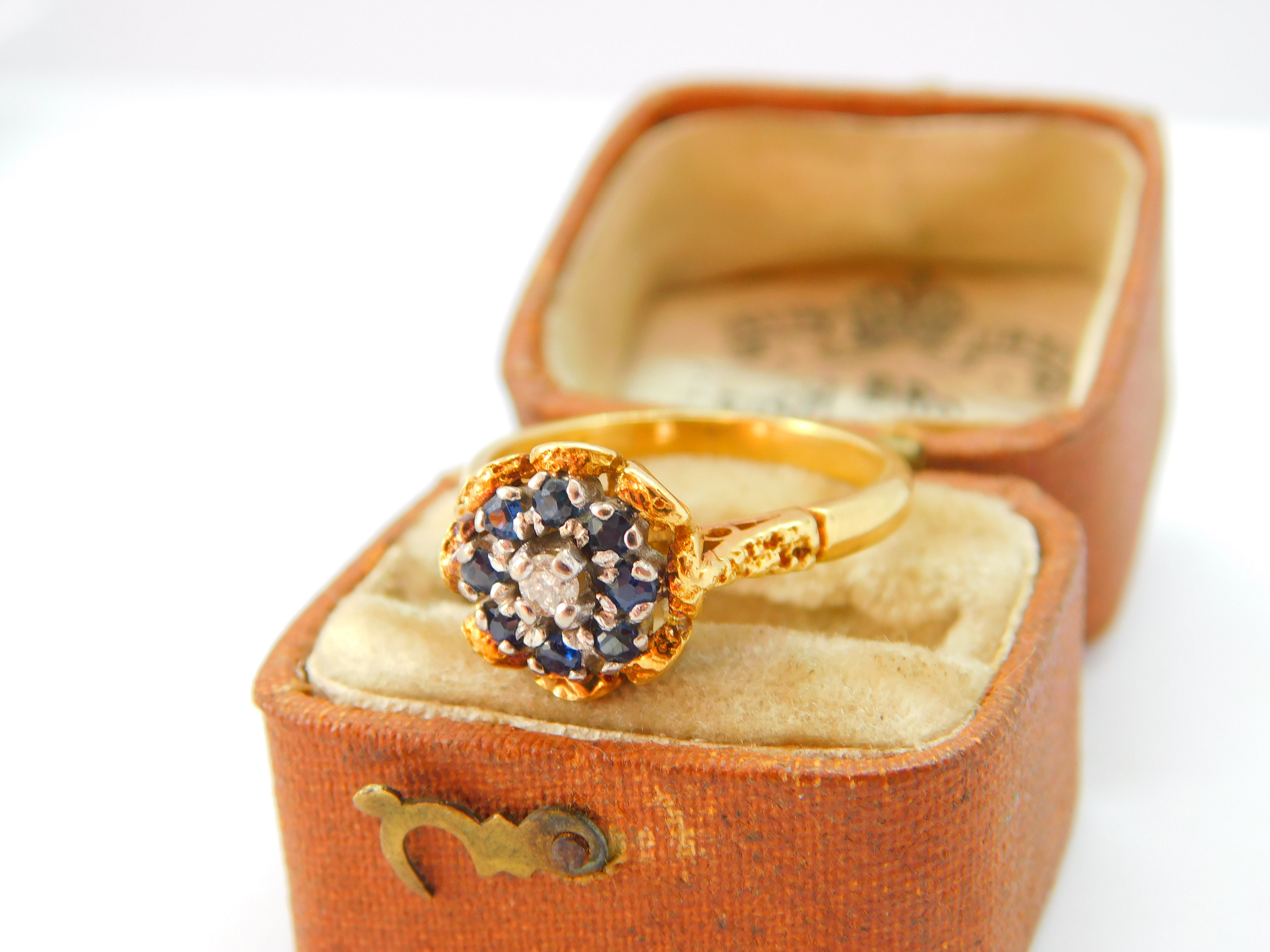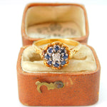 18ct Yellow Gold, Sapphire & Diamond Floral Dress Ring Antique c1920 Art Deco