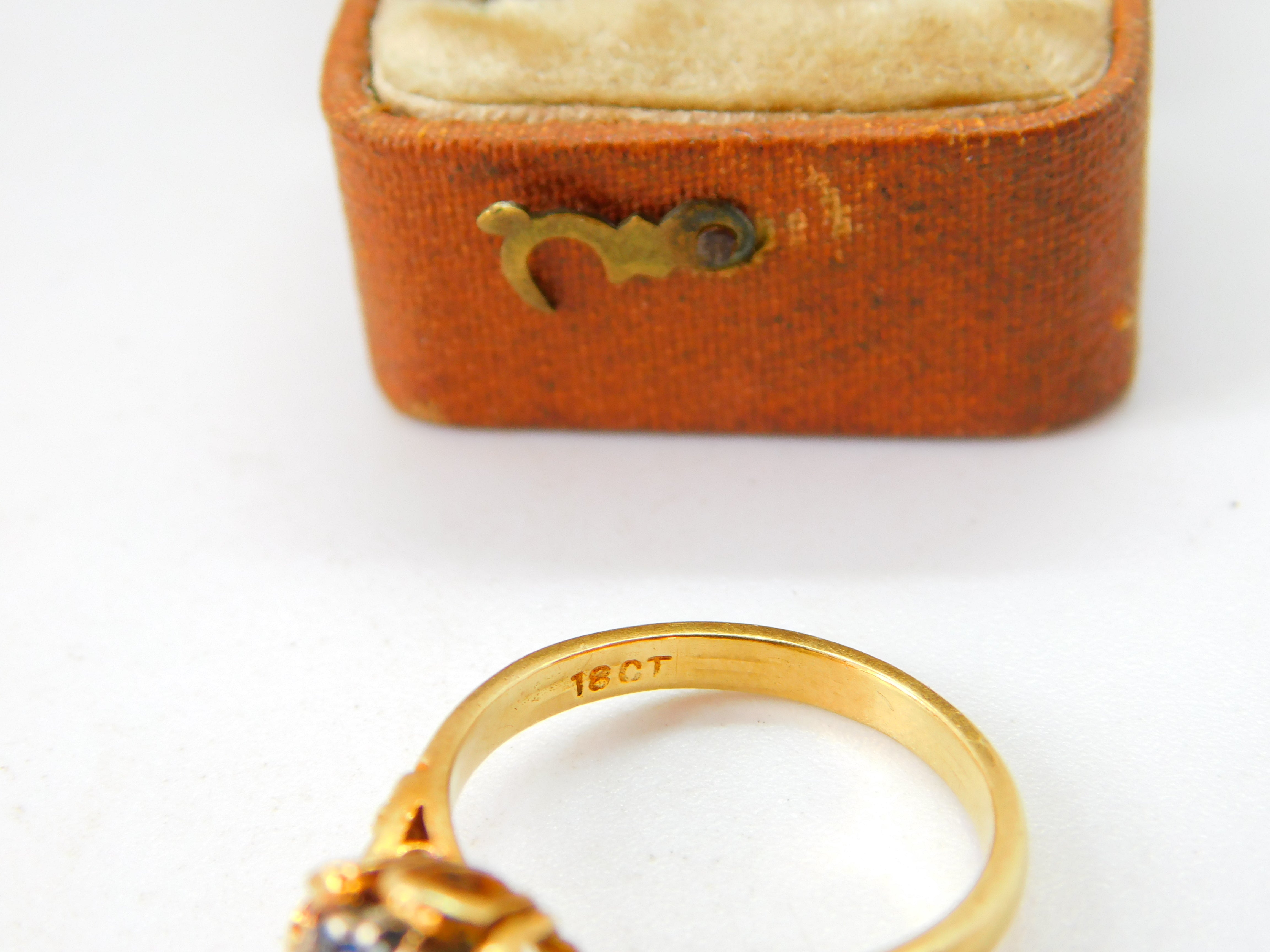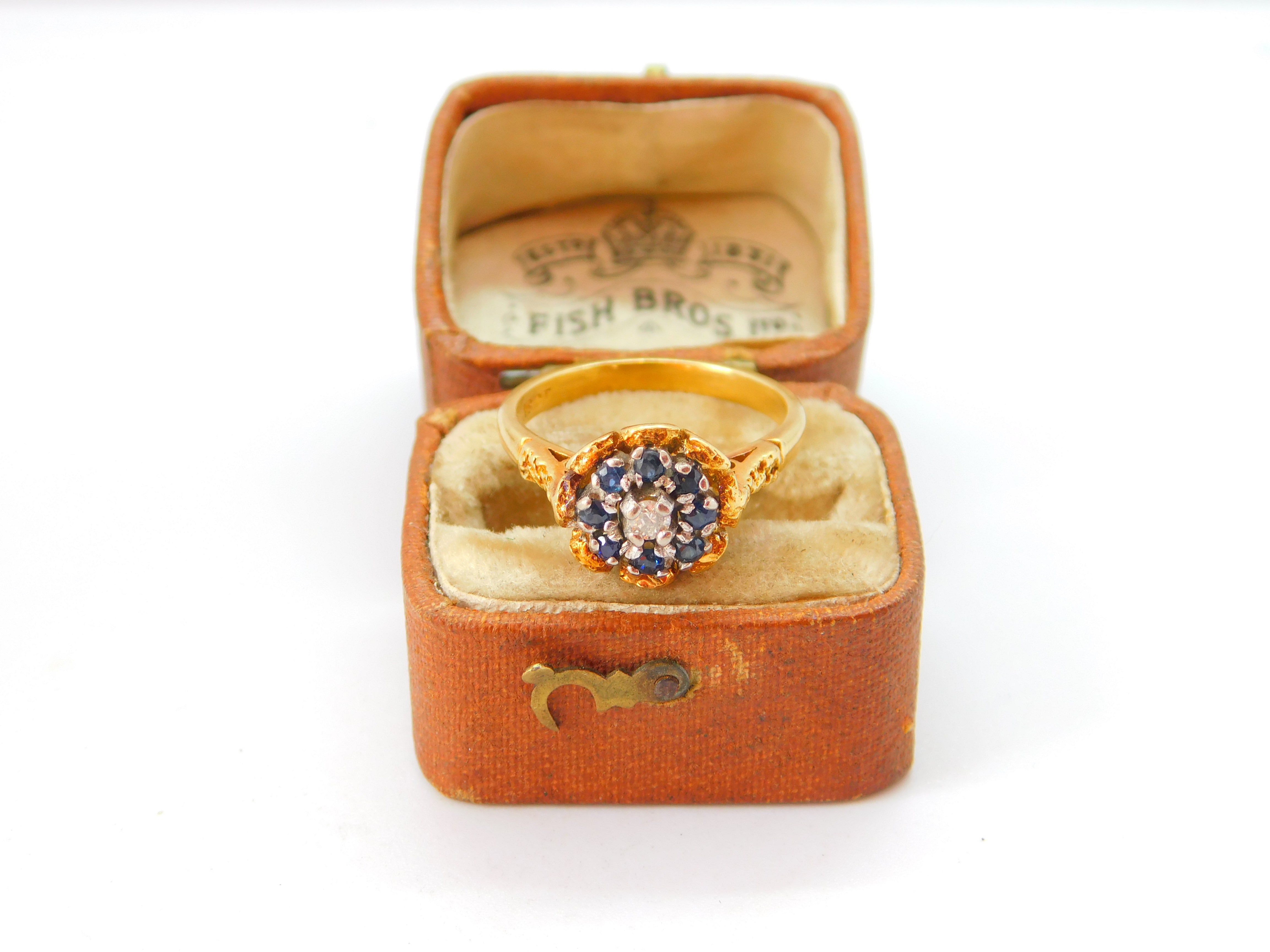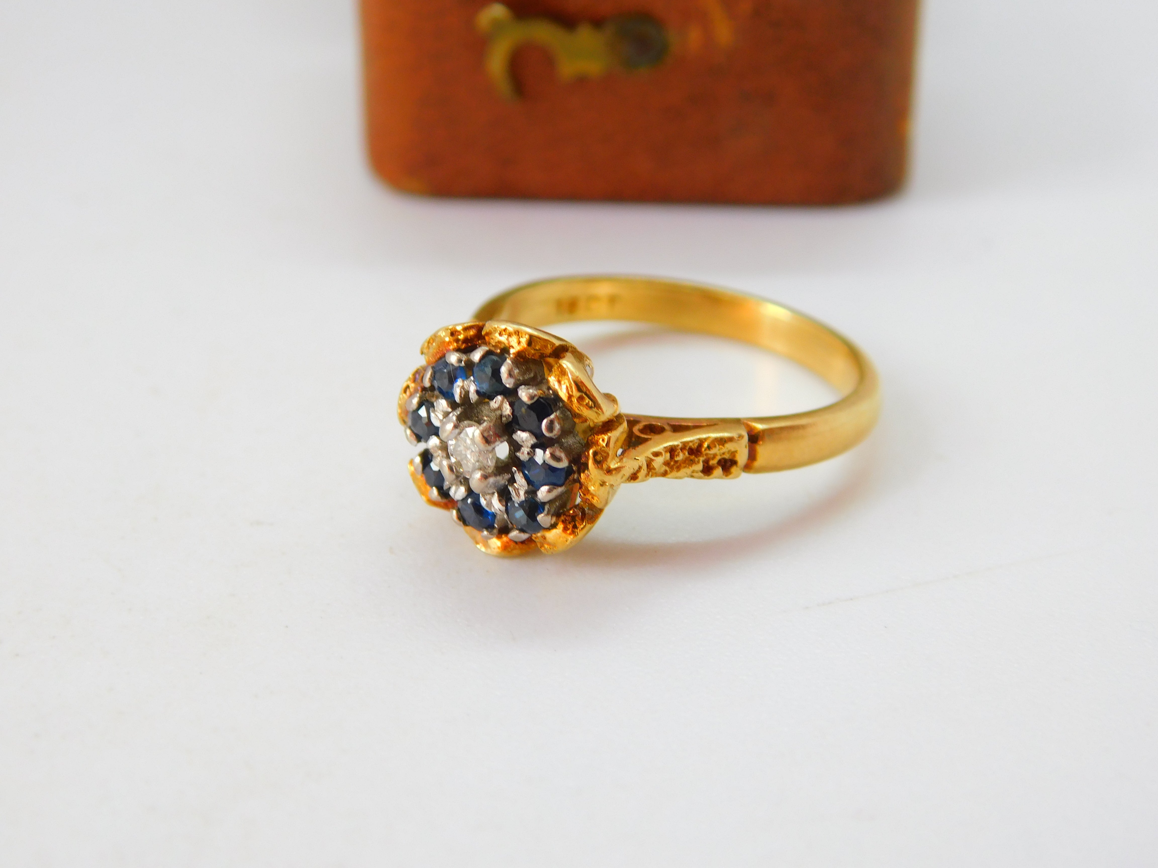 18ct Yellow Gold, Sapphire & Diamond Floral Dress Ring Antique c1920 Art Deco