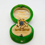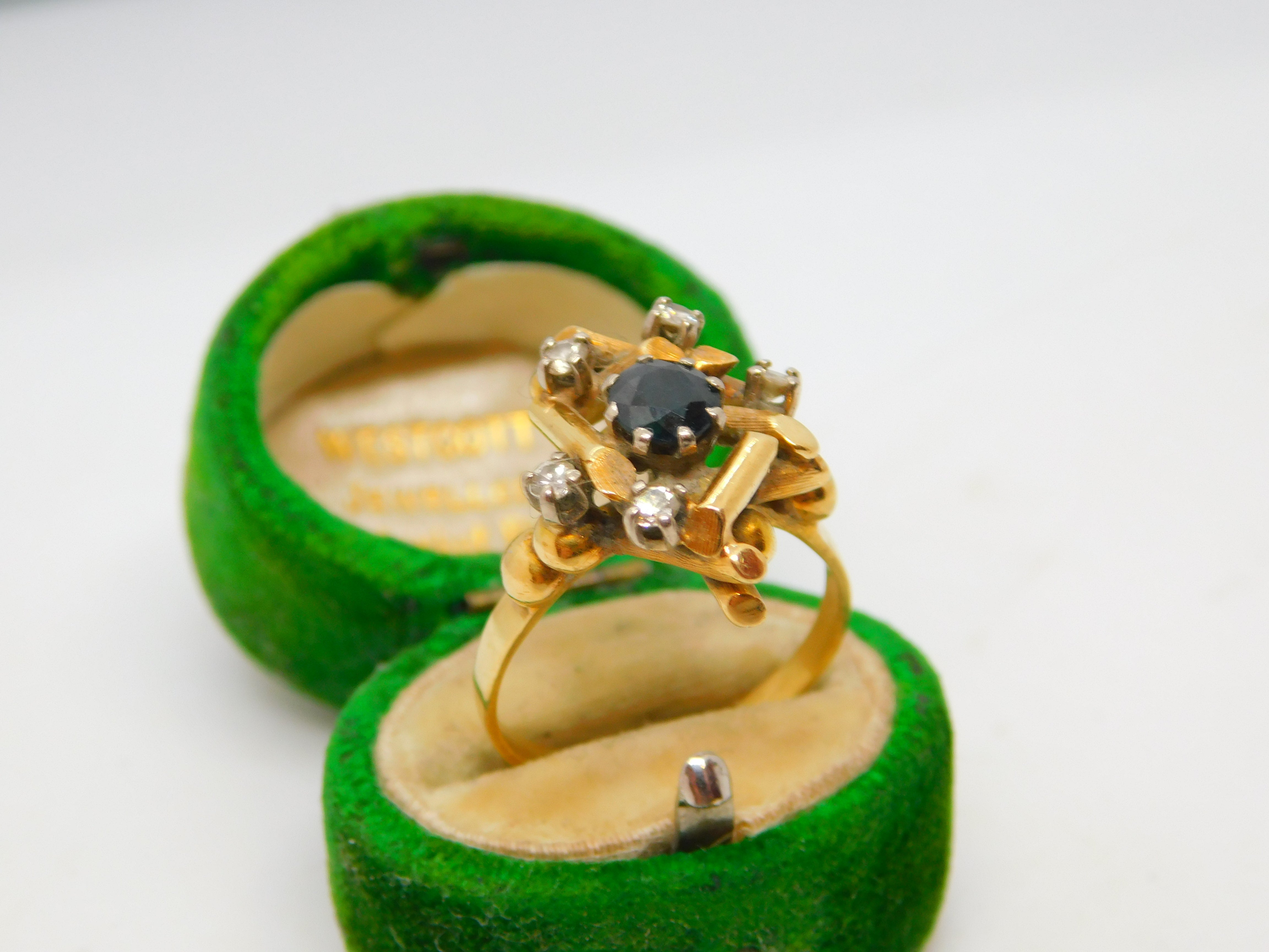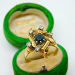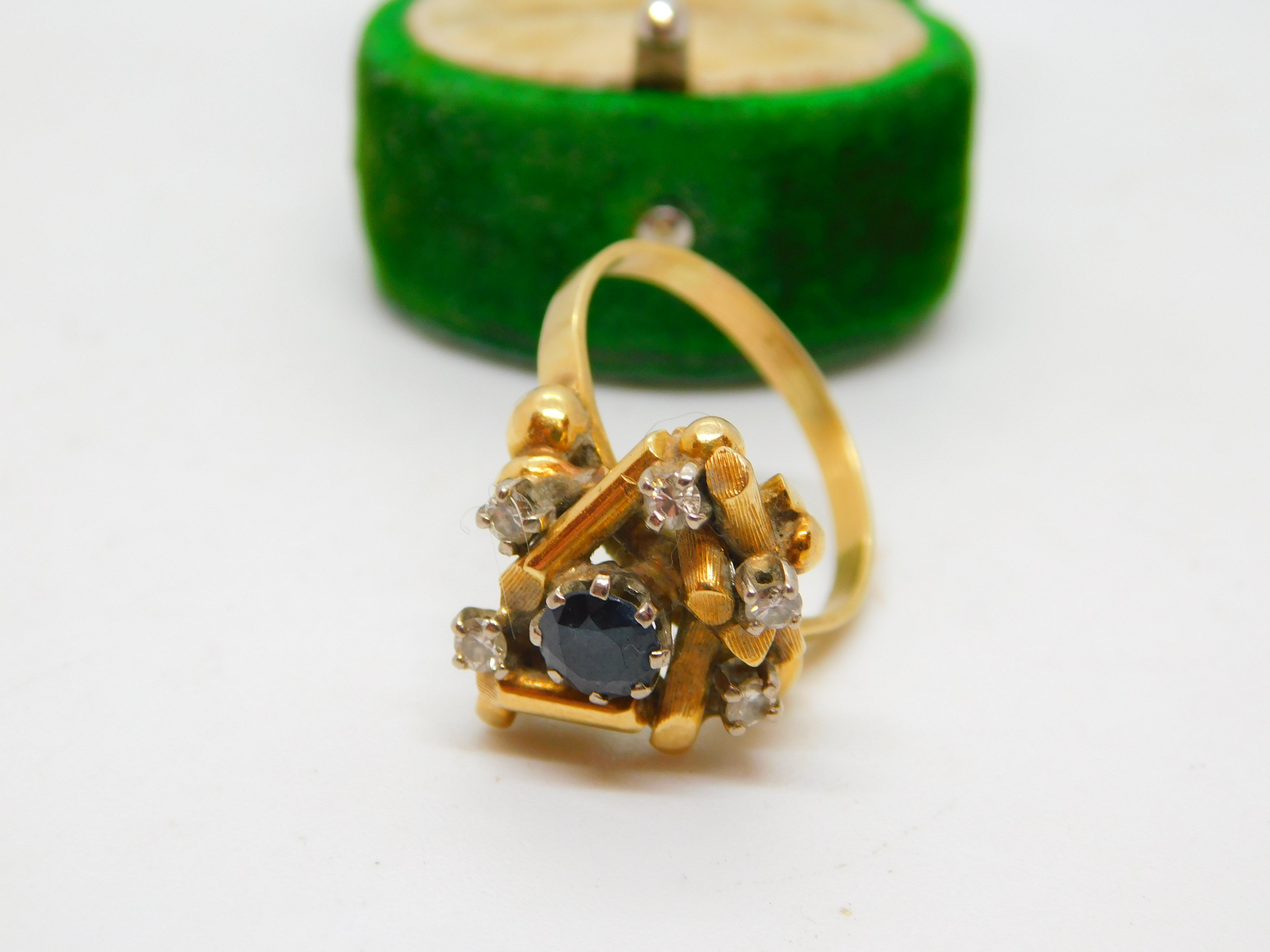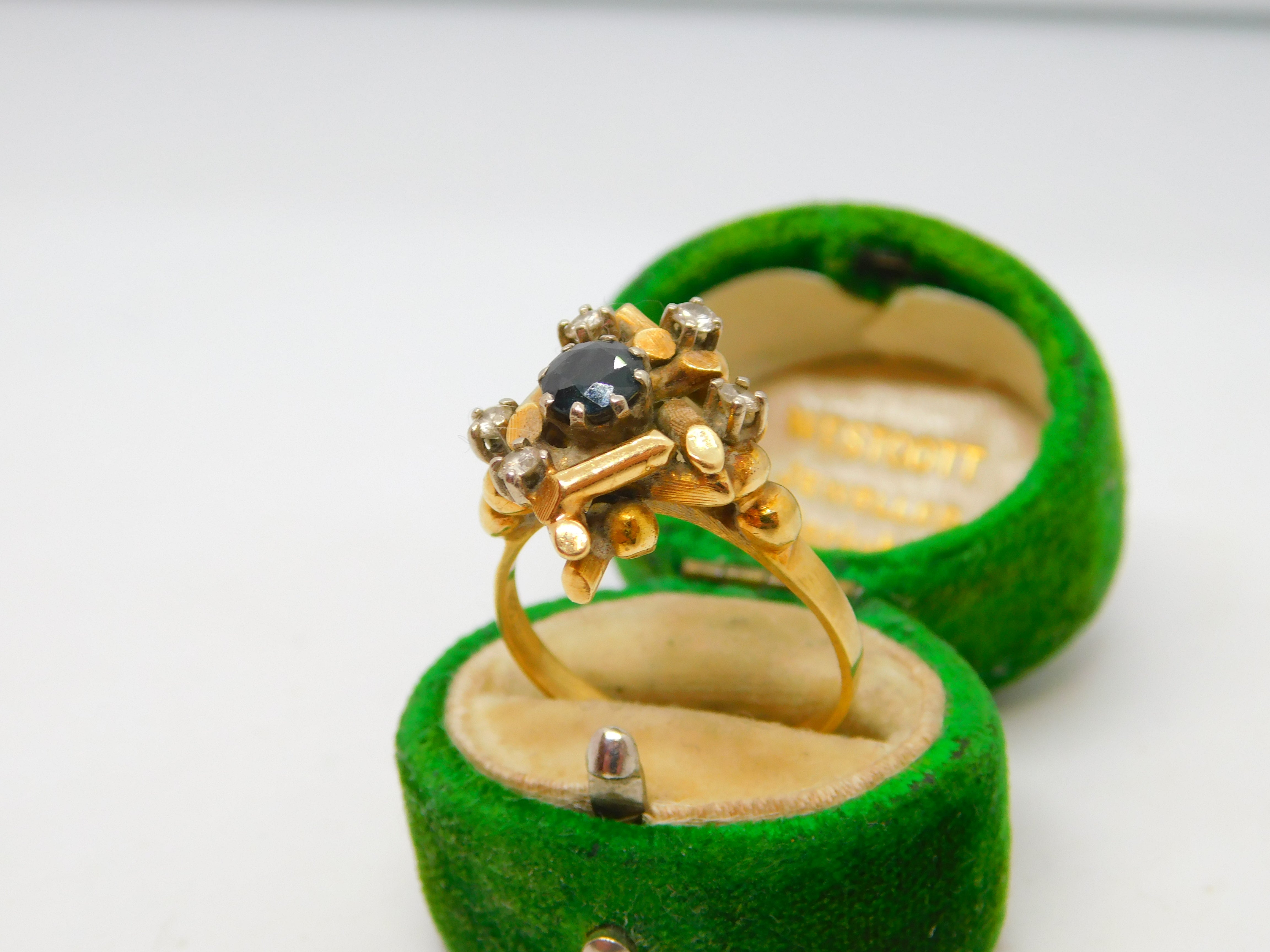 18ct Yellow Gold, Sapphire & Diamond Modernist Statement Ring Antique c1930