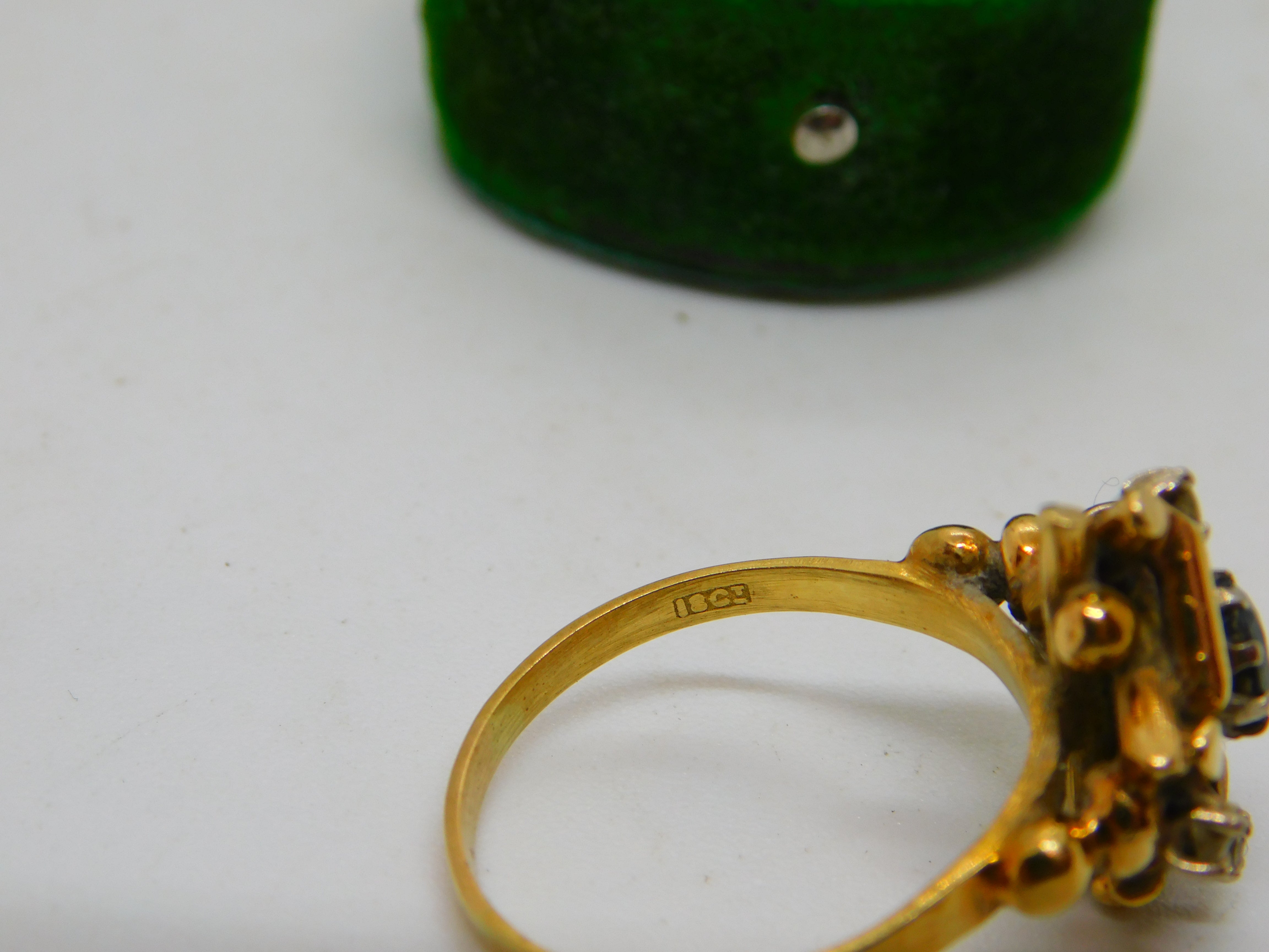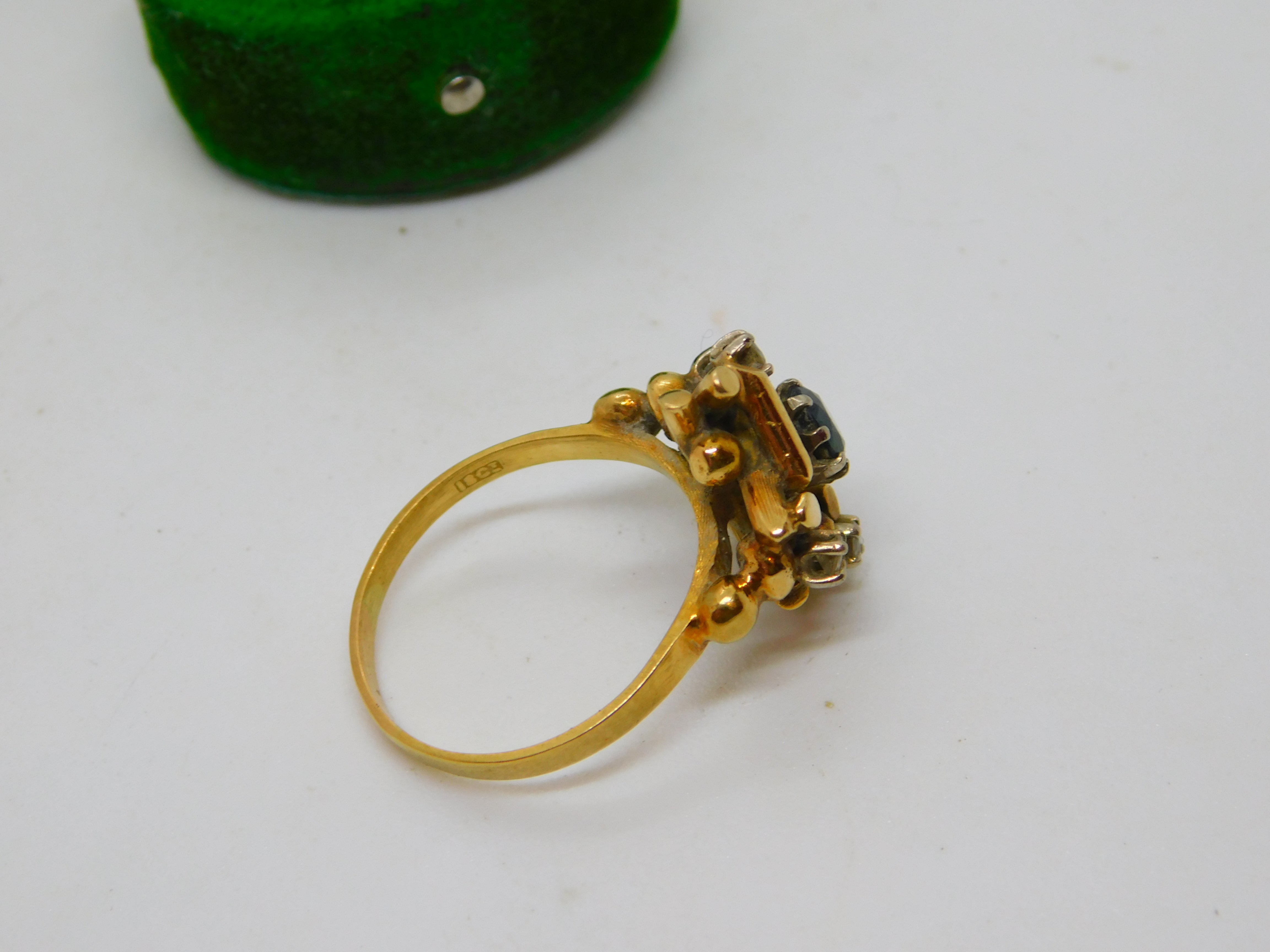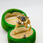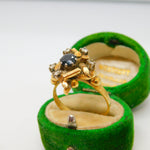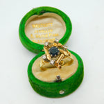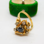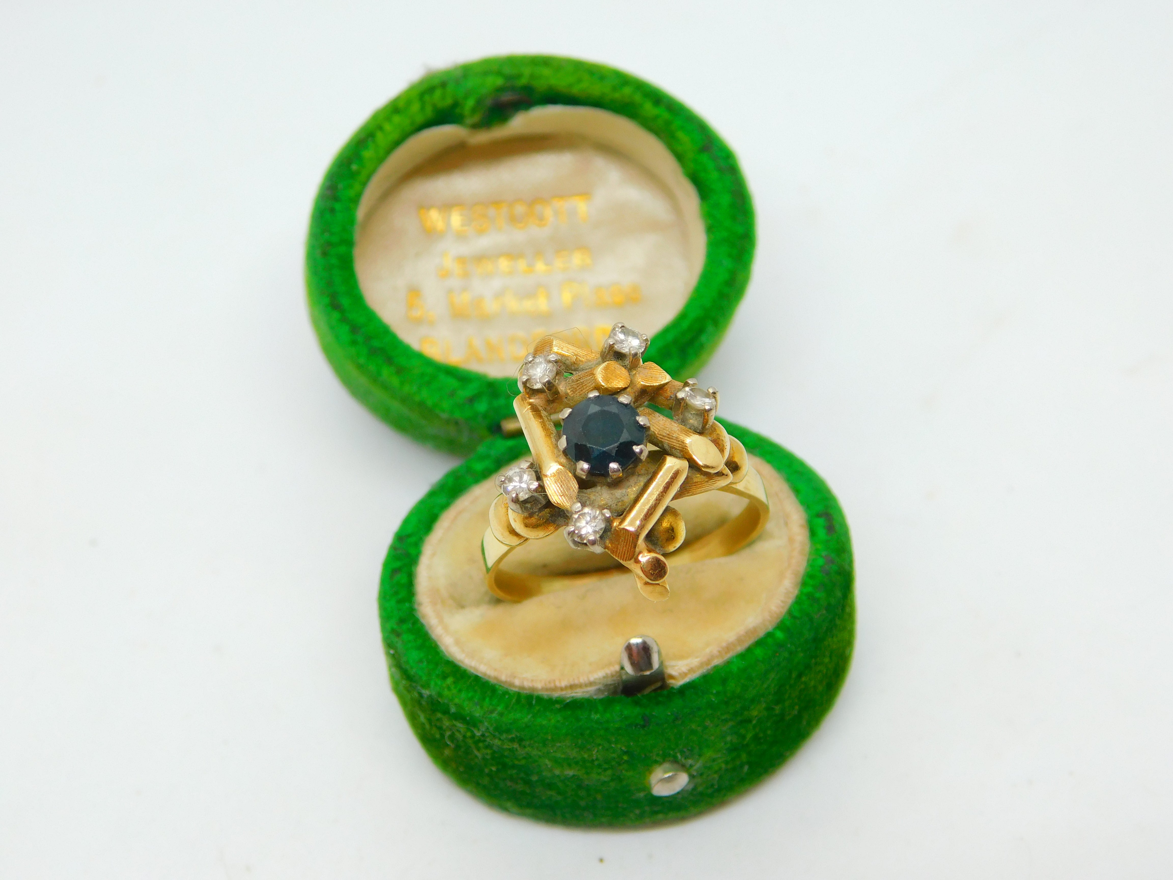 18ct Yellow Gold, Sapphire & Diamond Modernist Statement Ring Antique c1930