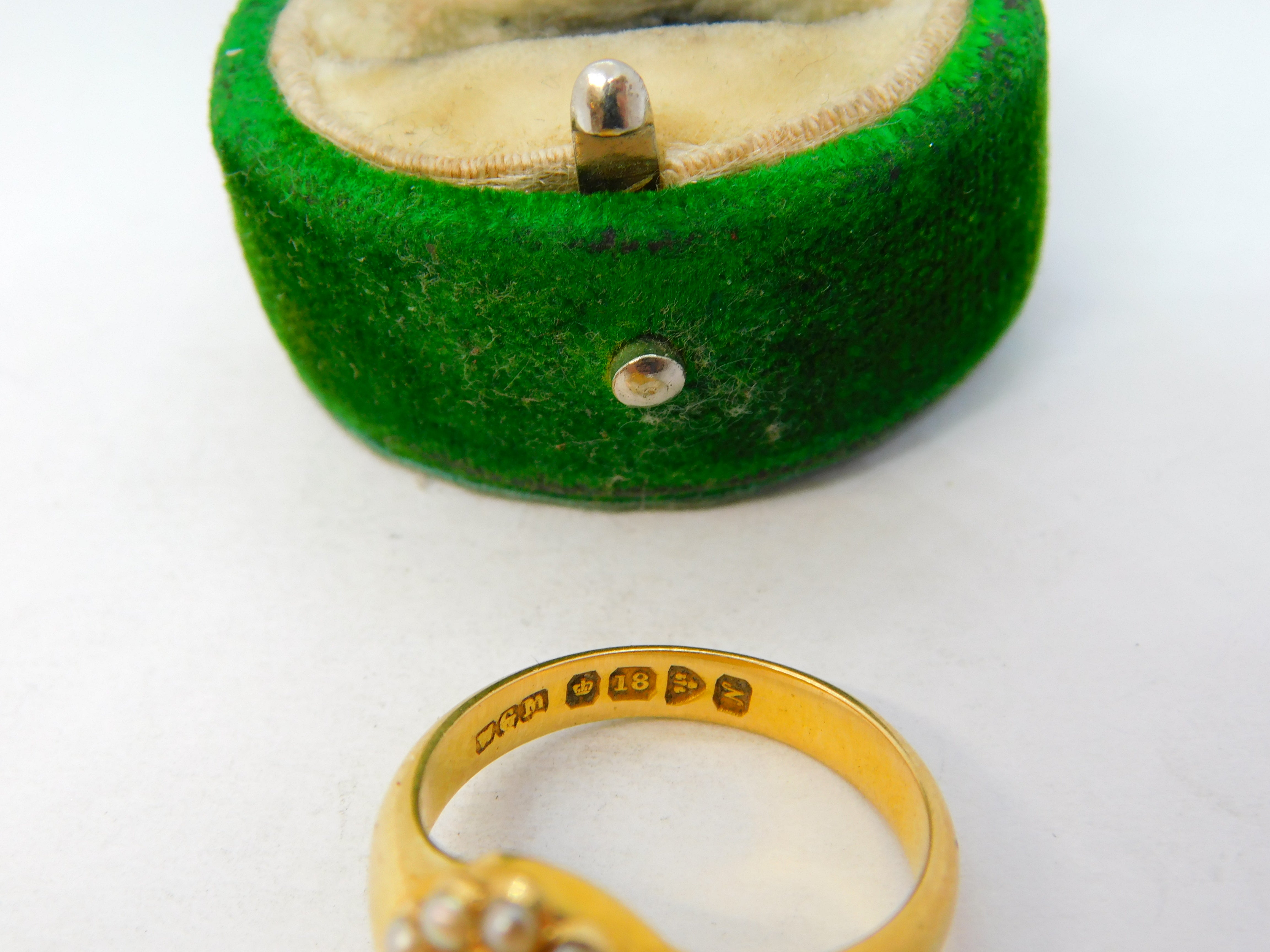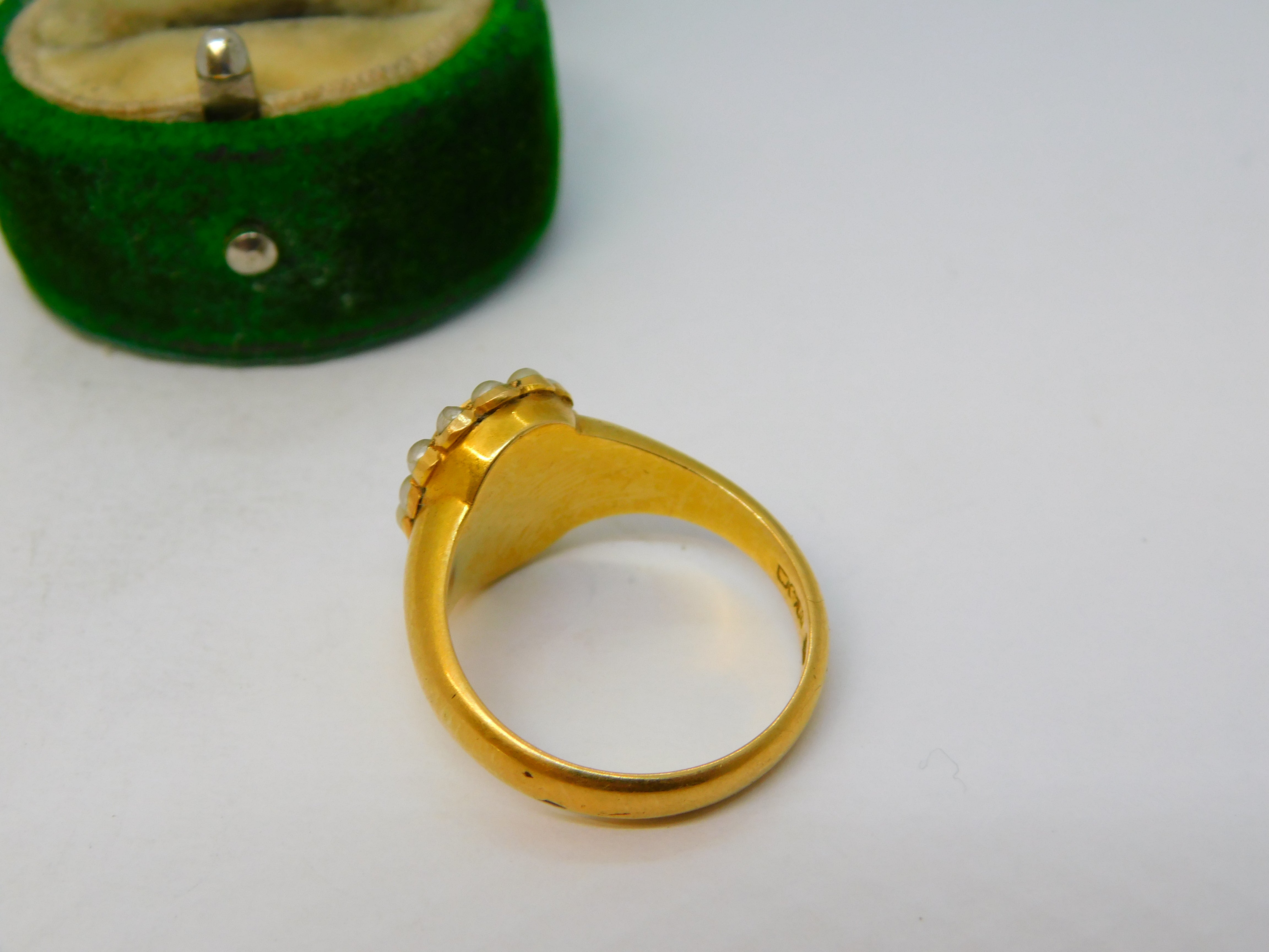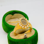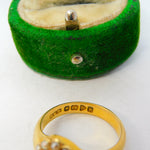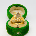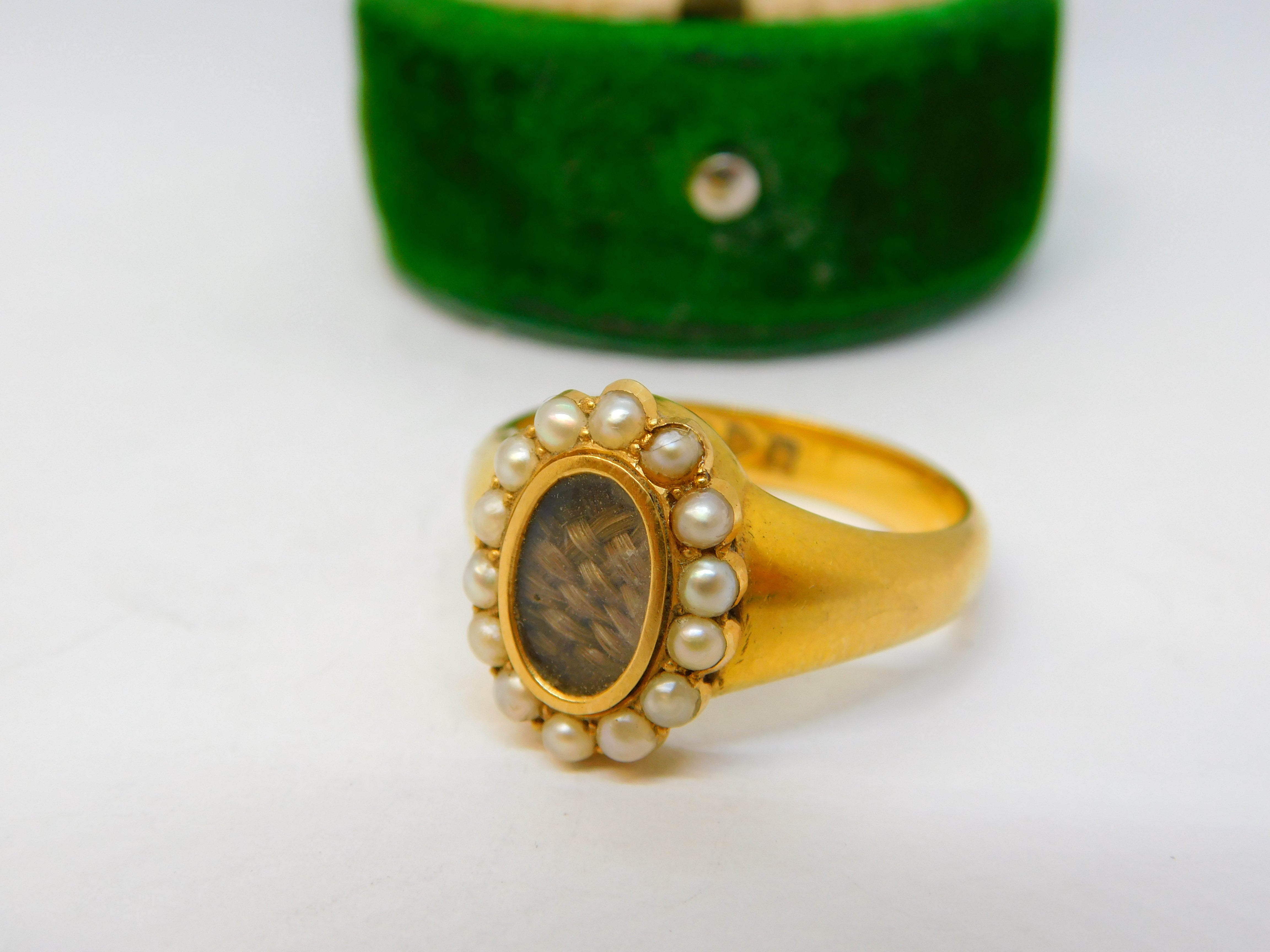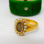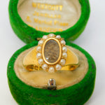 18ct Yellow Gold, Seed Pearl & Hair Set Mourning Ring Antique 1913 Chester