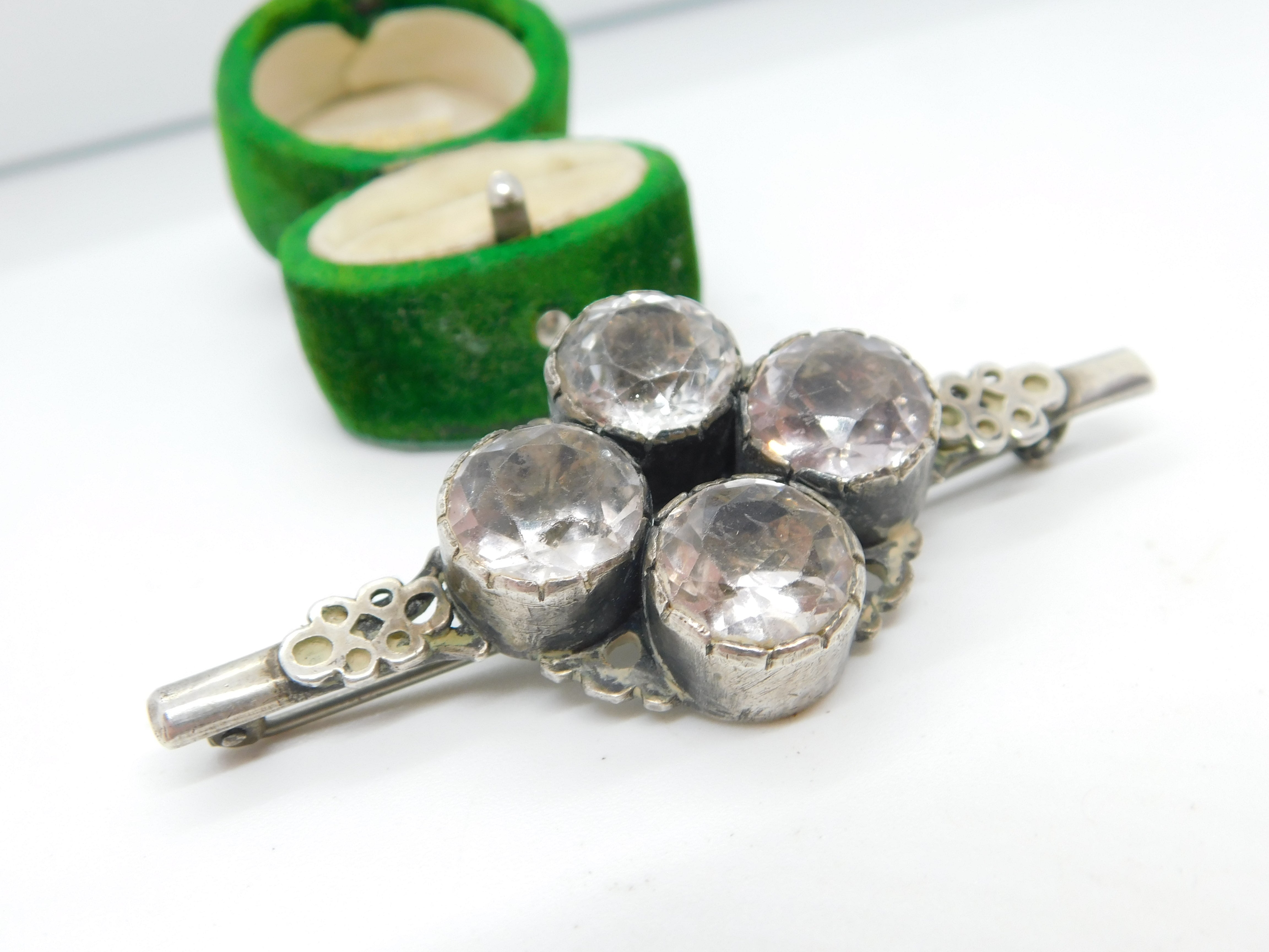 Details: A fantastic and wonderfully designed antique 18th century sterling silver floral pattern dress brooch with large paste or crystal inlaid c1790, the silver has been XRF tested as it is unmarked. This is a wonderful item that would make a perfect gift or addition to any collection. The BOX pictured is for PRESENTATION ONLY and is NOT included in the listings but used to frame the pictures unless specifically stated otherwise.