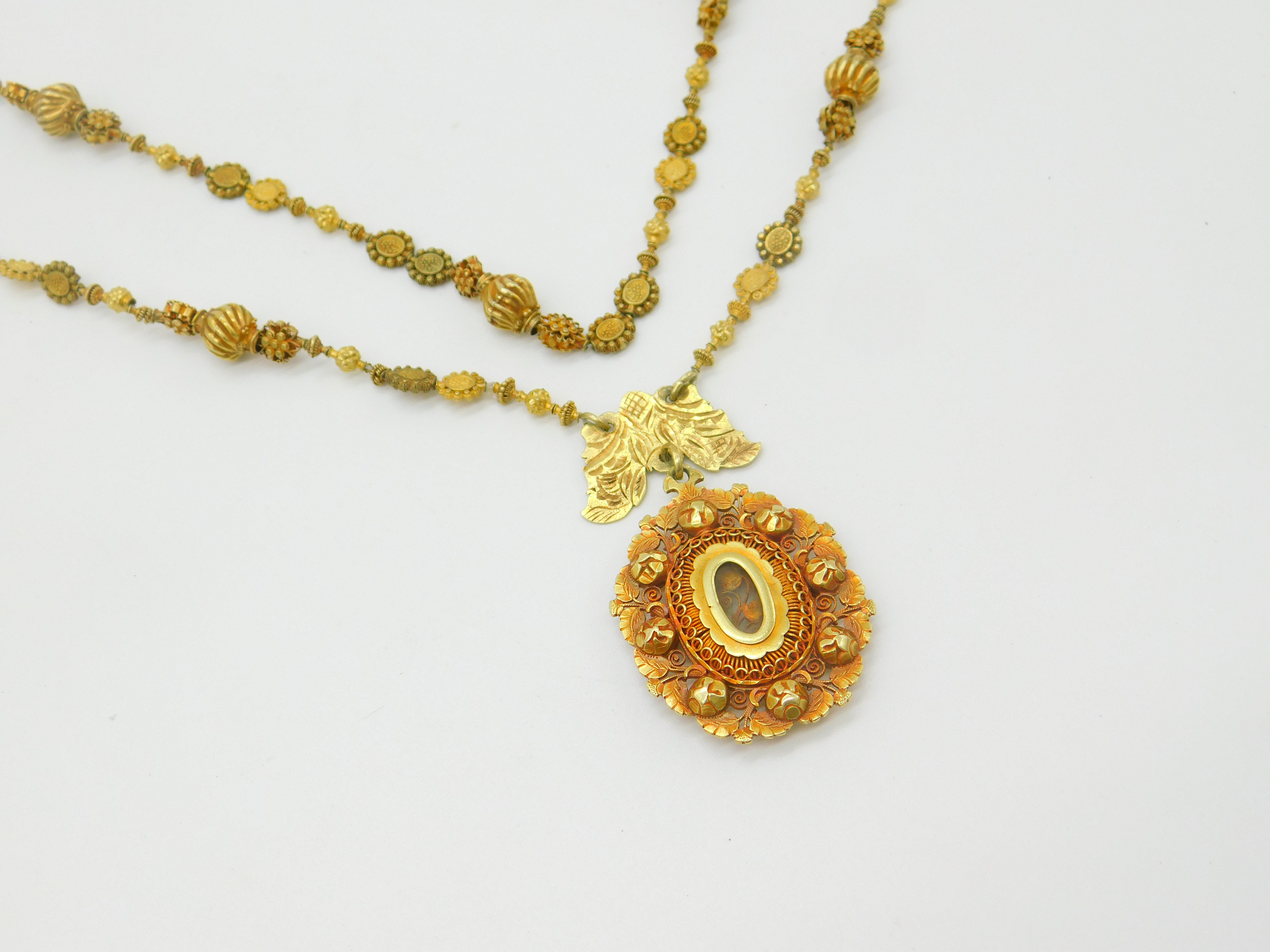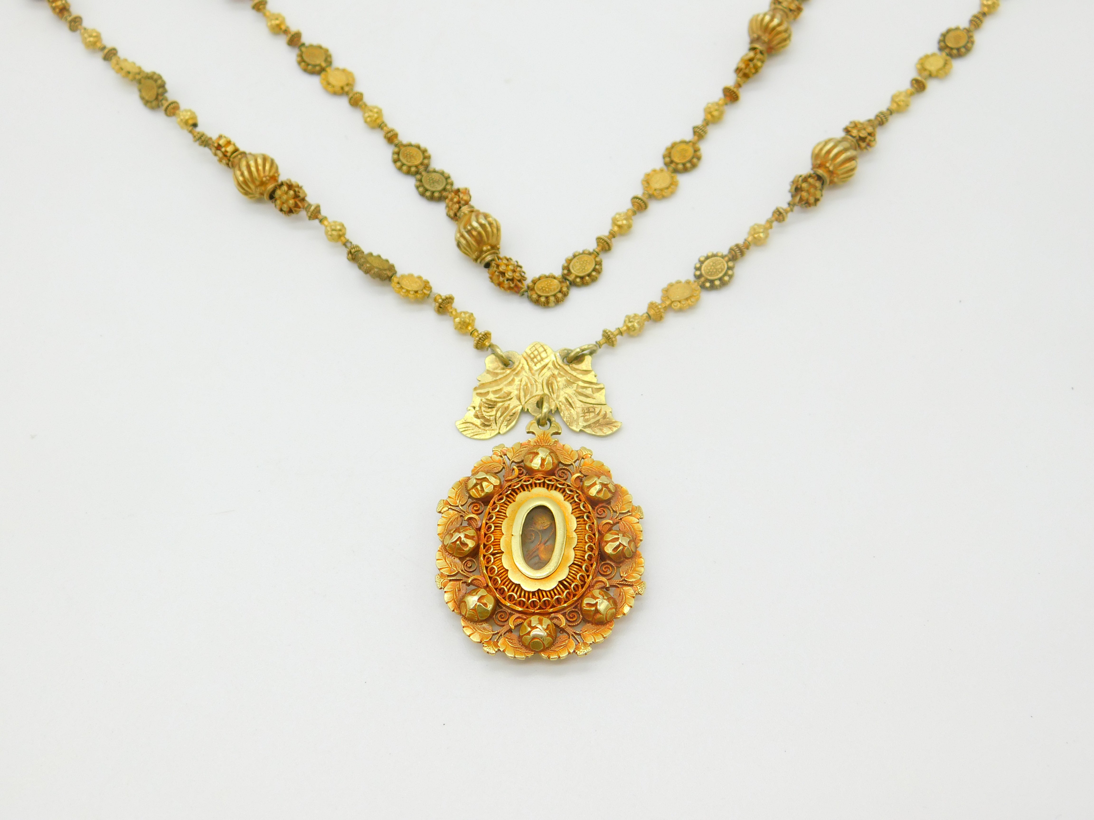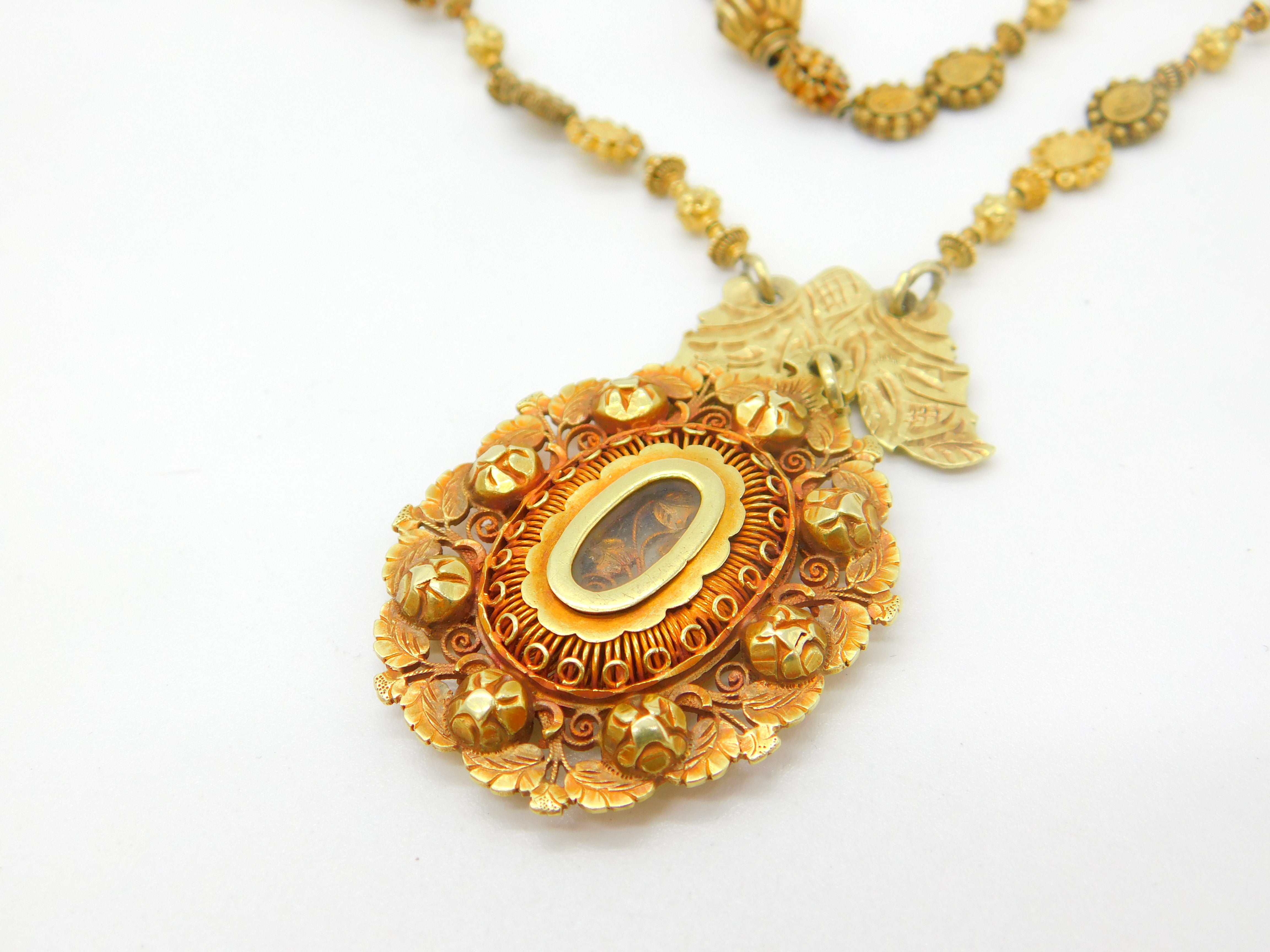 18th Century Spanish Colonial Philippines 18ct Yellow Gold Tamborin Reliquary Necklace c1750