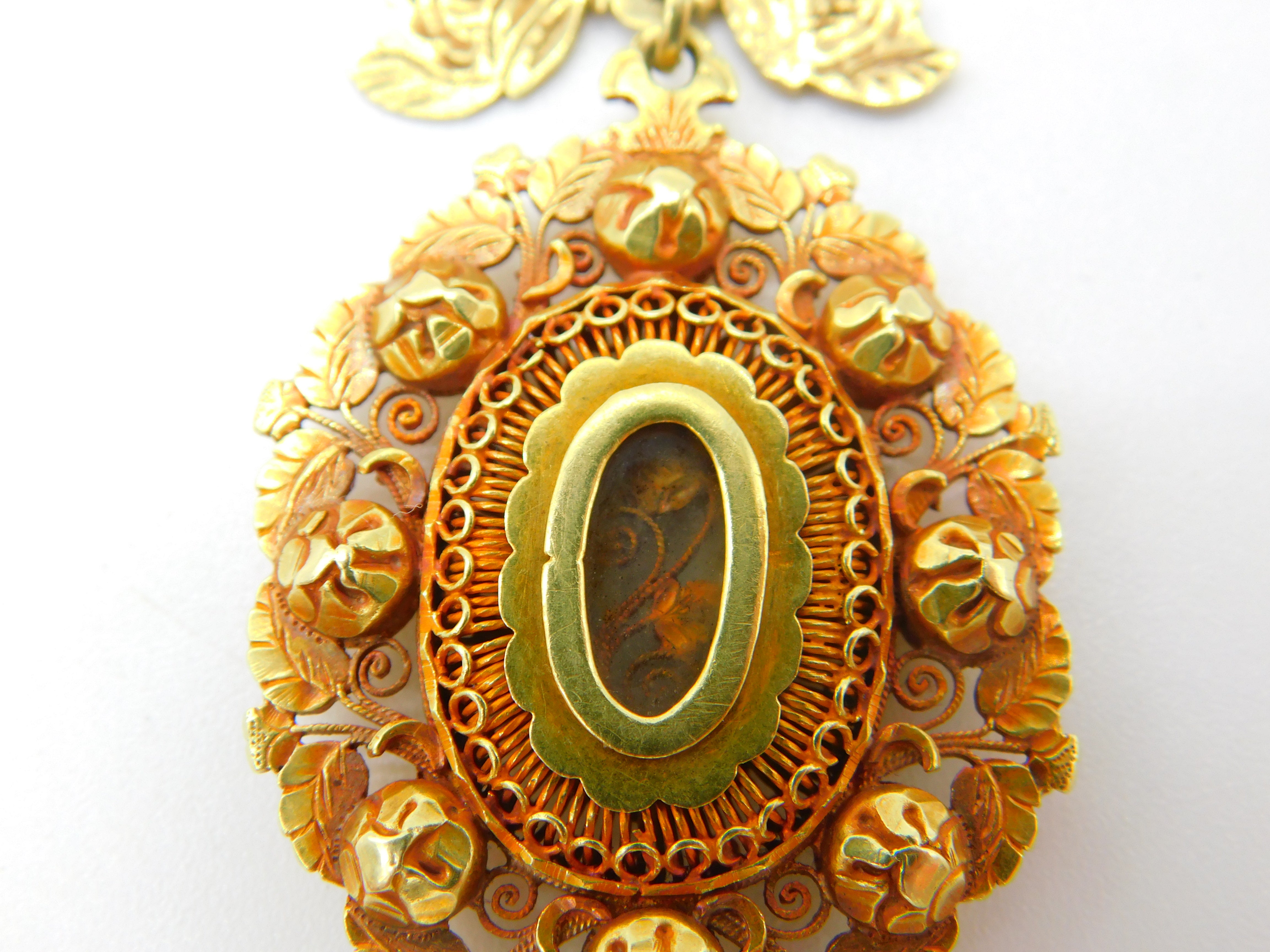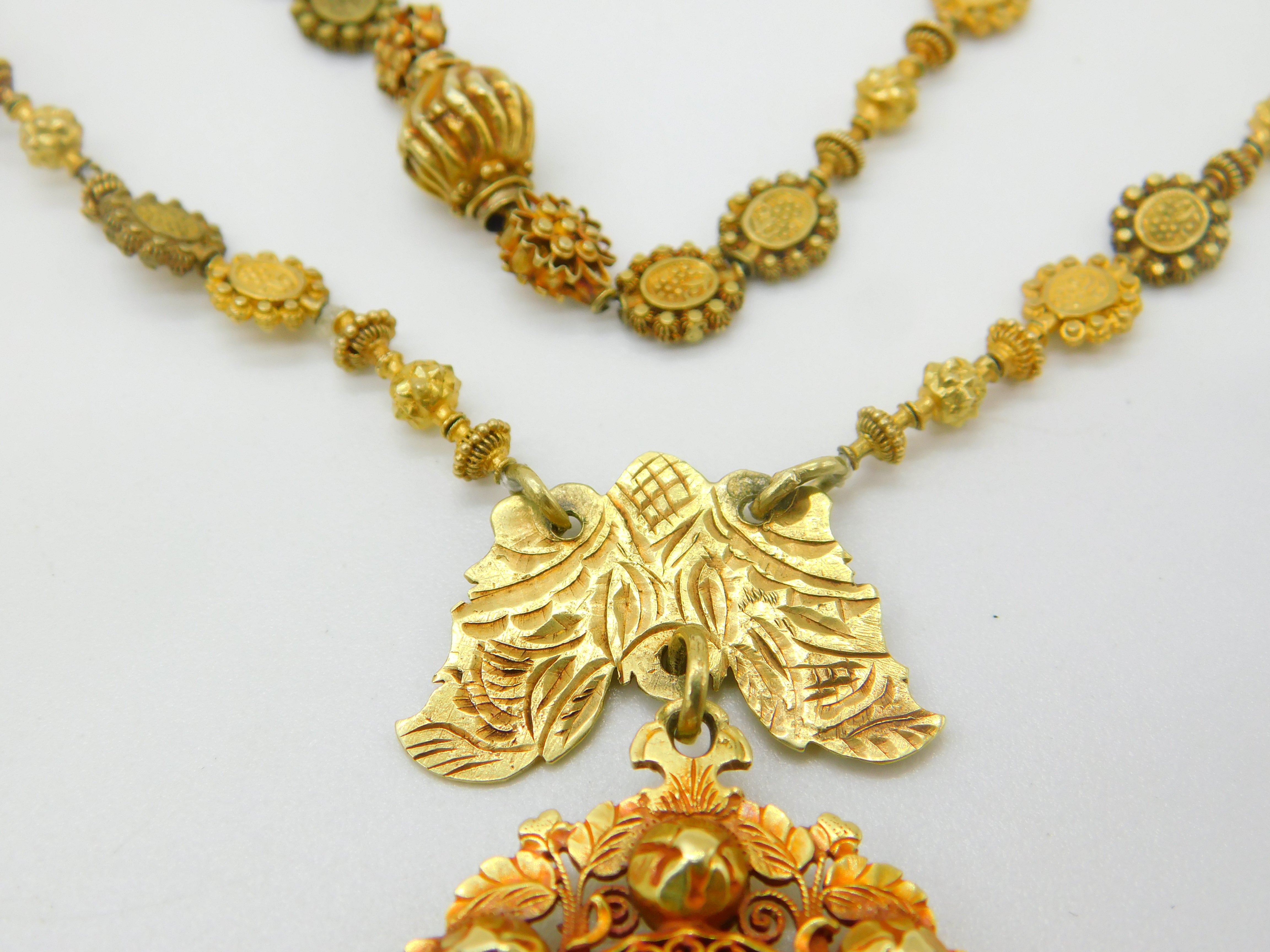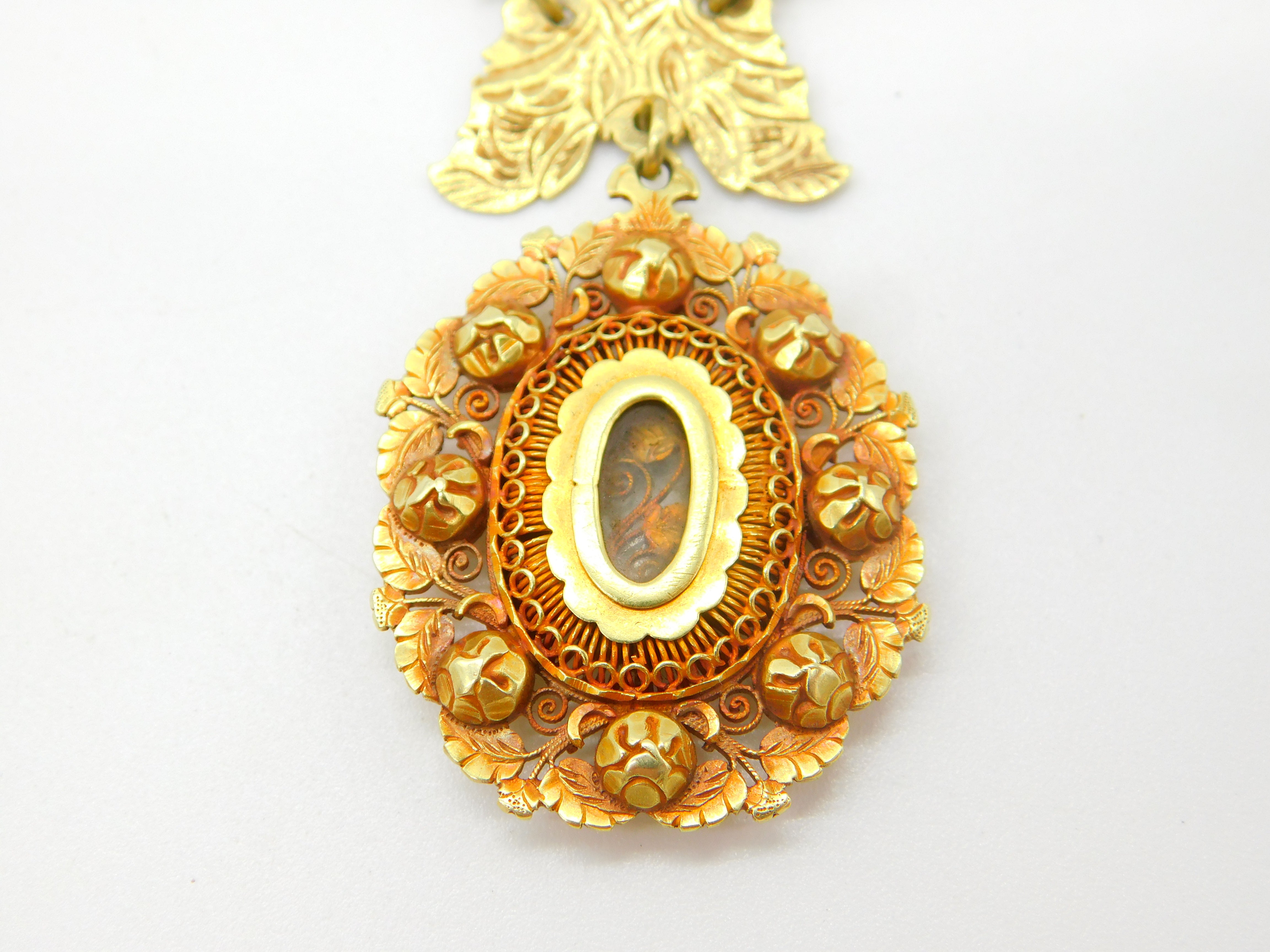 18th Century Spanish Colonial Philippines 18ct Yellow Gold Tamborin Reliquary Necklace c1750