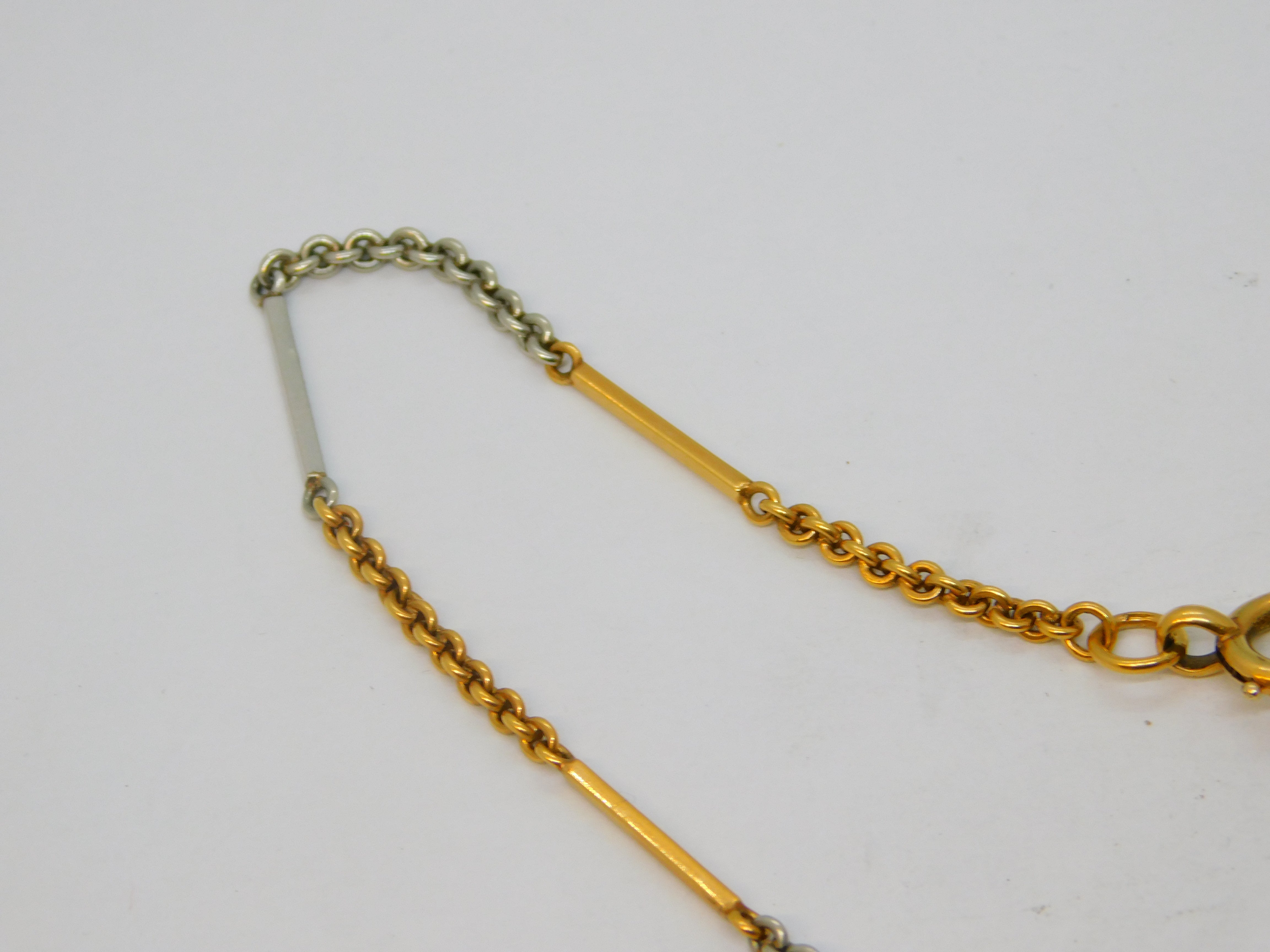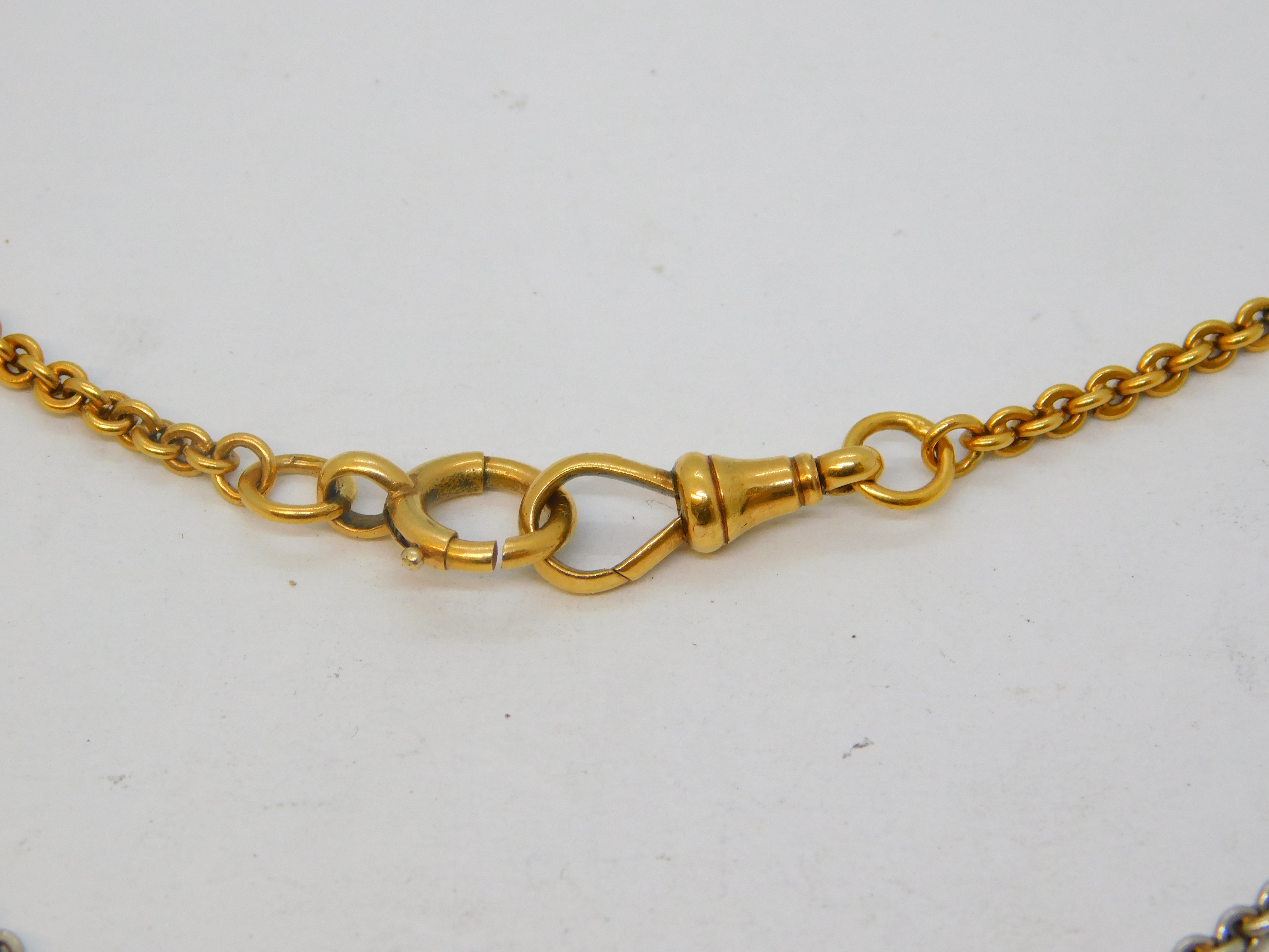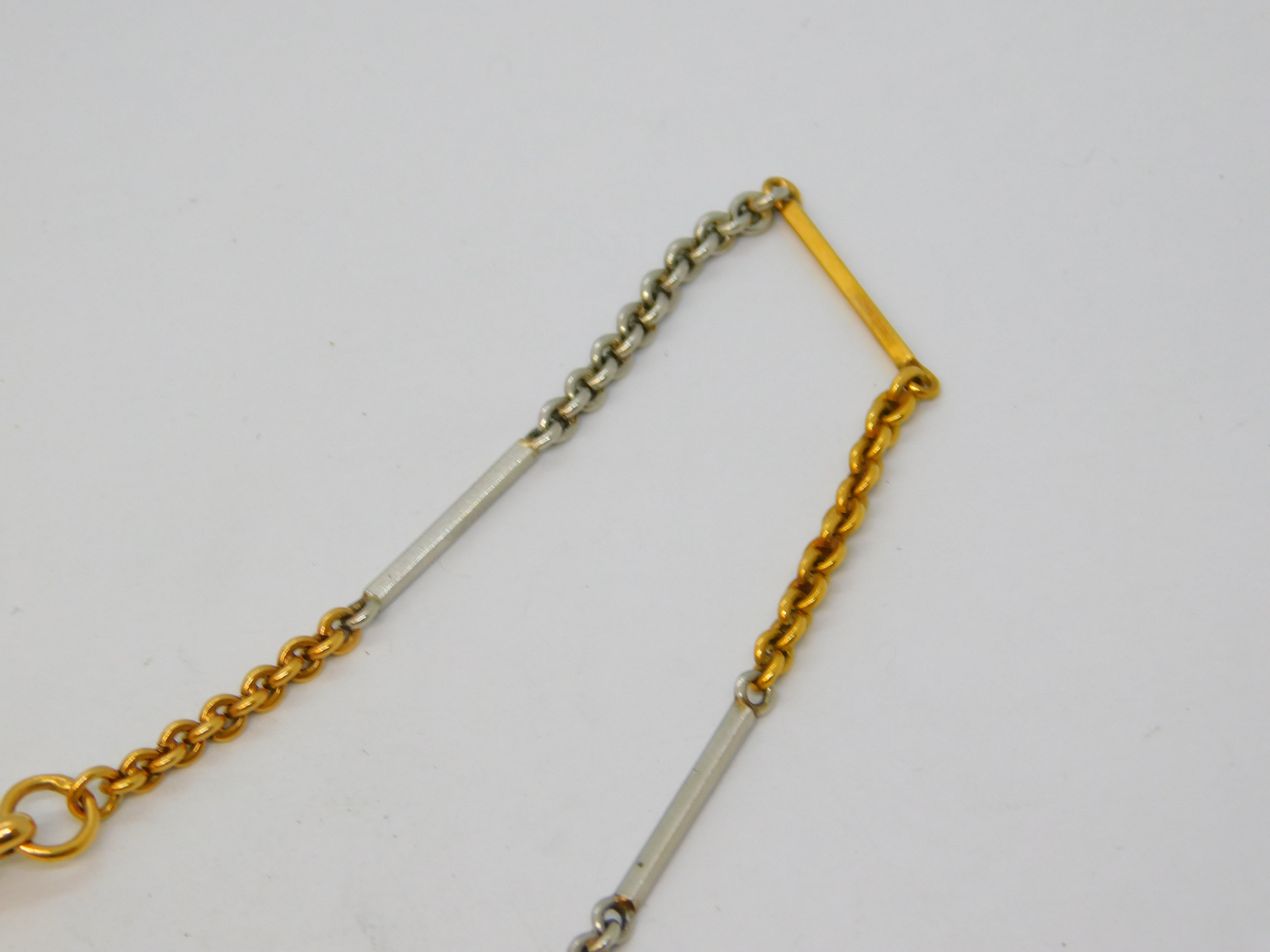 19th Century 18ct Yellow & White Gold Baton Link Watch Chain Antique c1890
