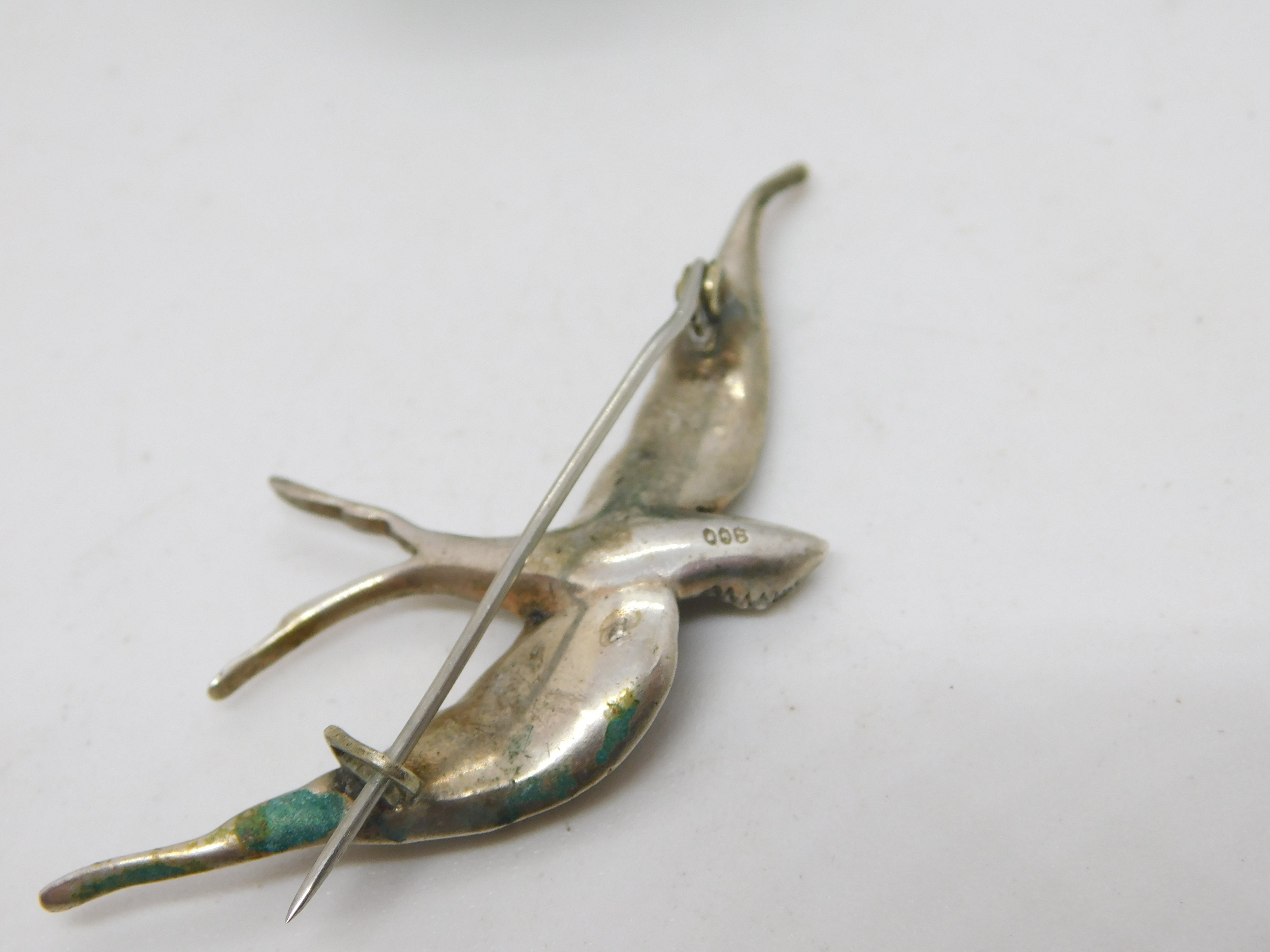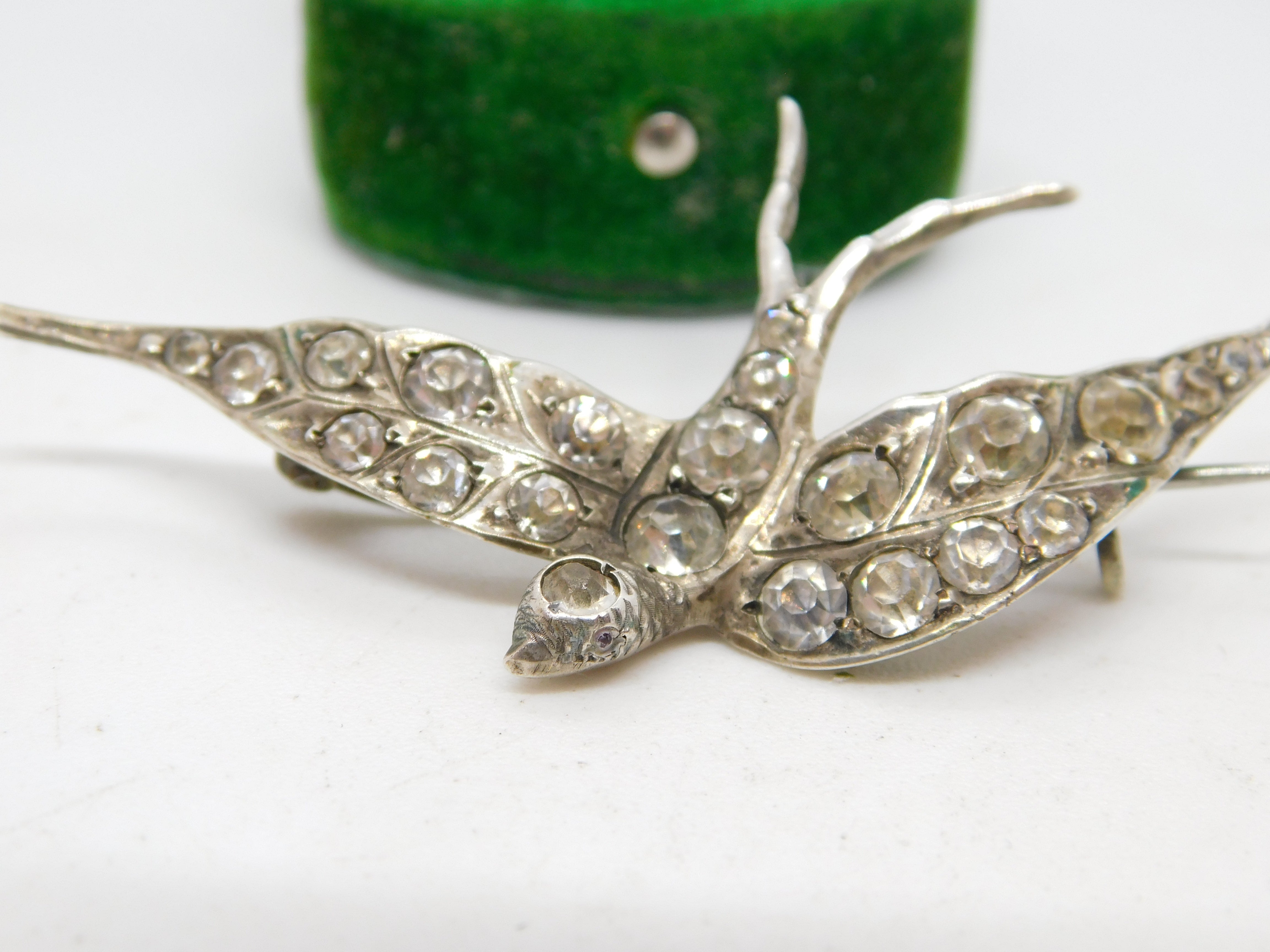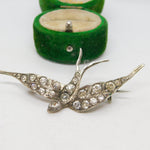 19th Century .800 Silver & Paste Set Swallow Sweetheart Brooch Antique c1890