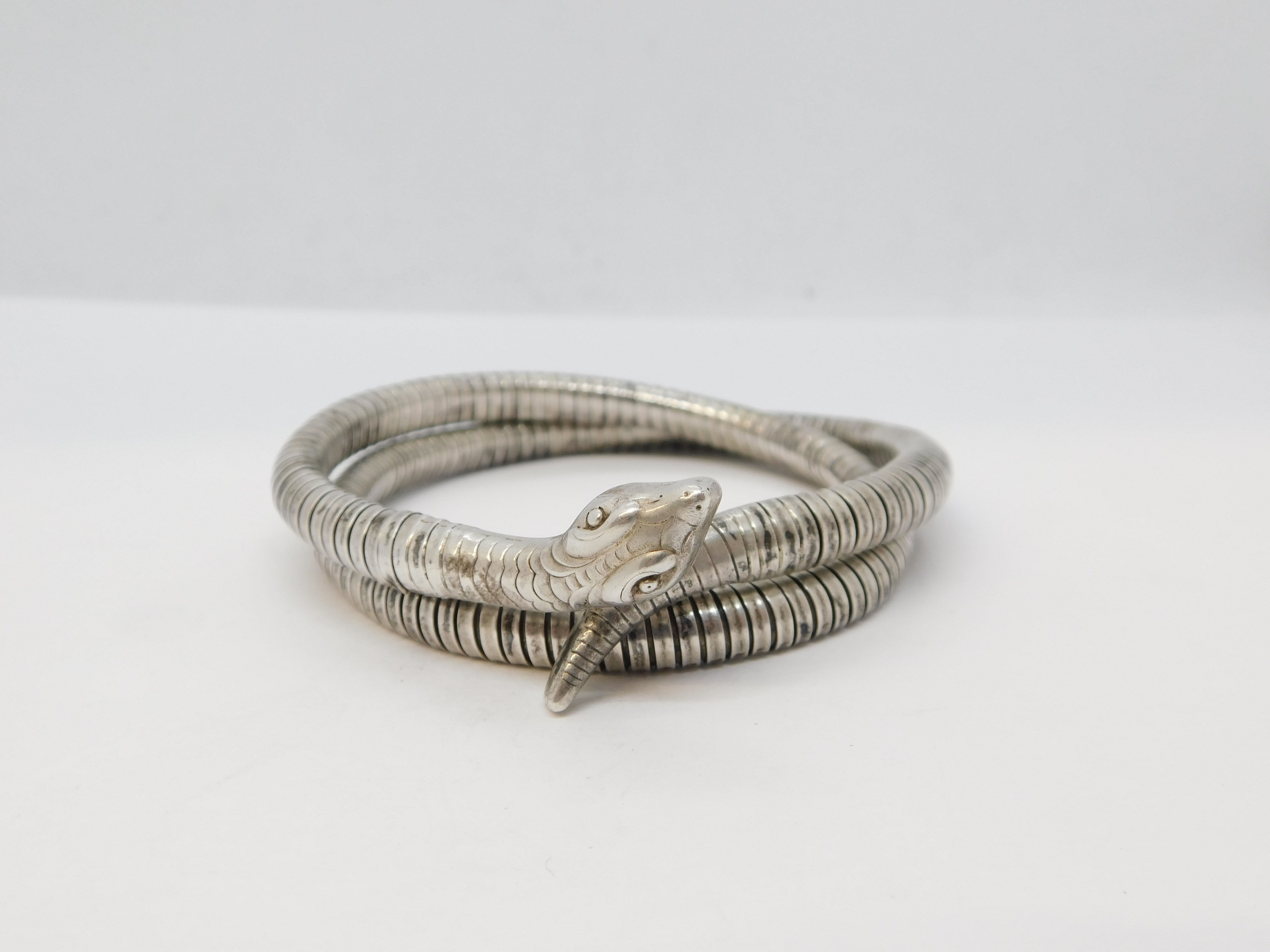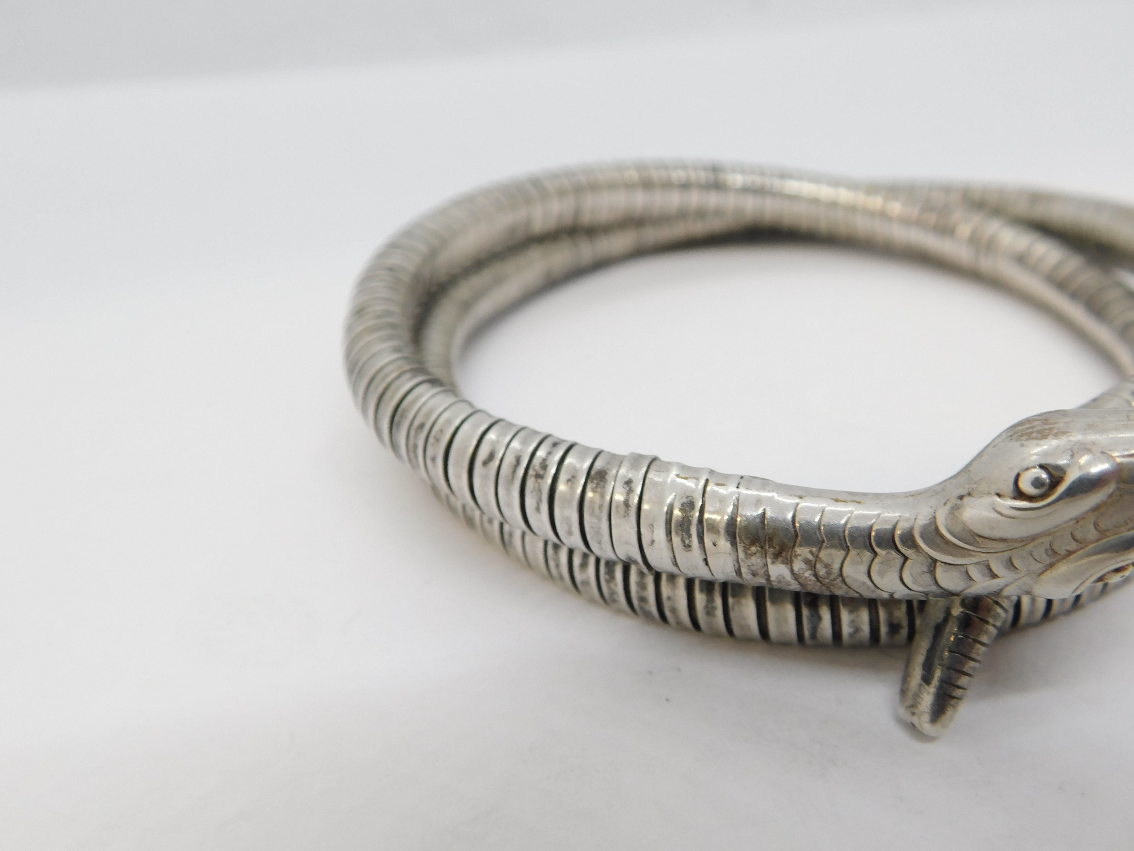 19th Century .835 Silver Articulated Snake Serpent Bangle Bracelet Antique c1880