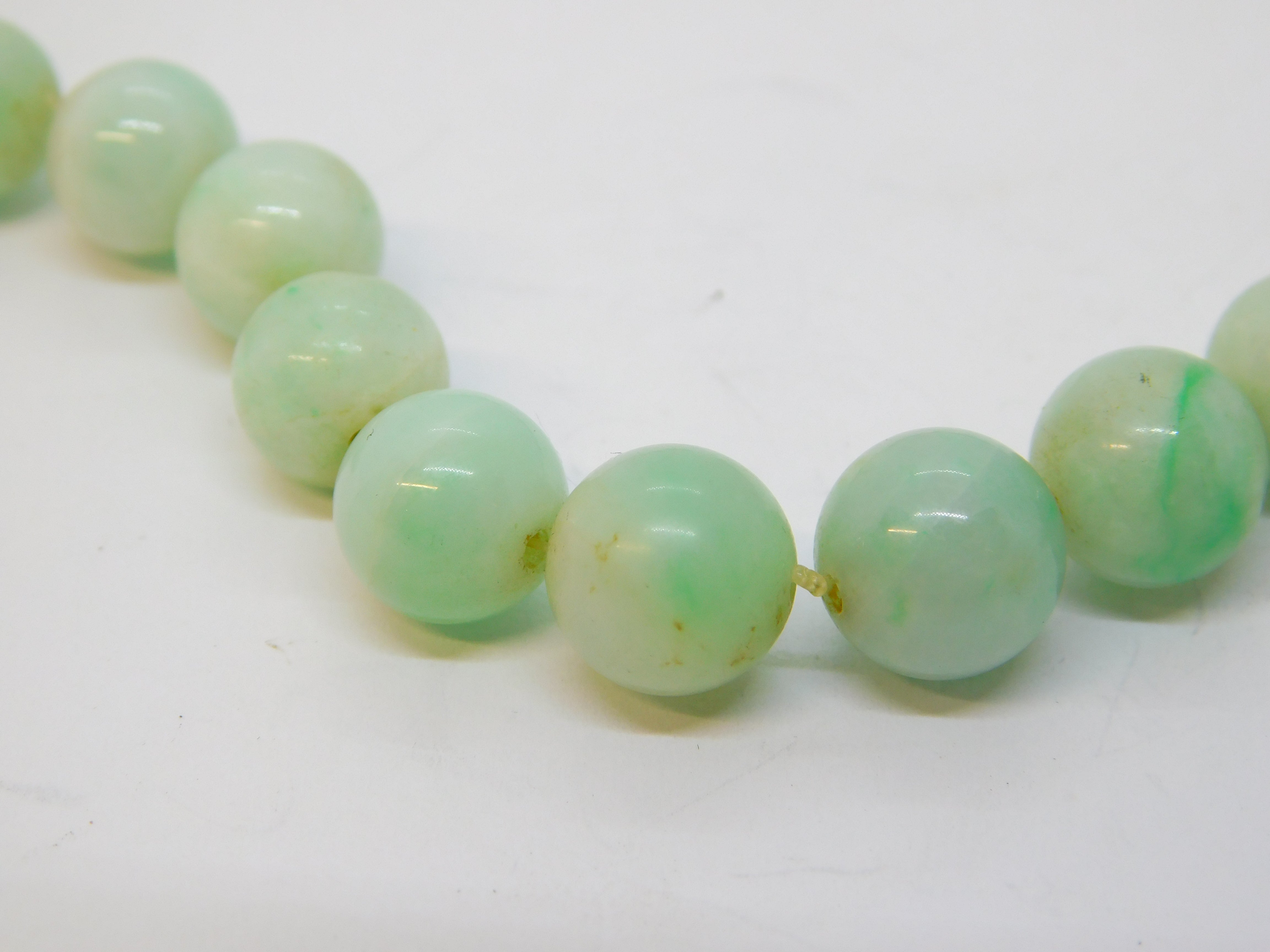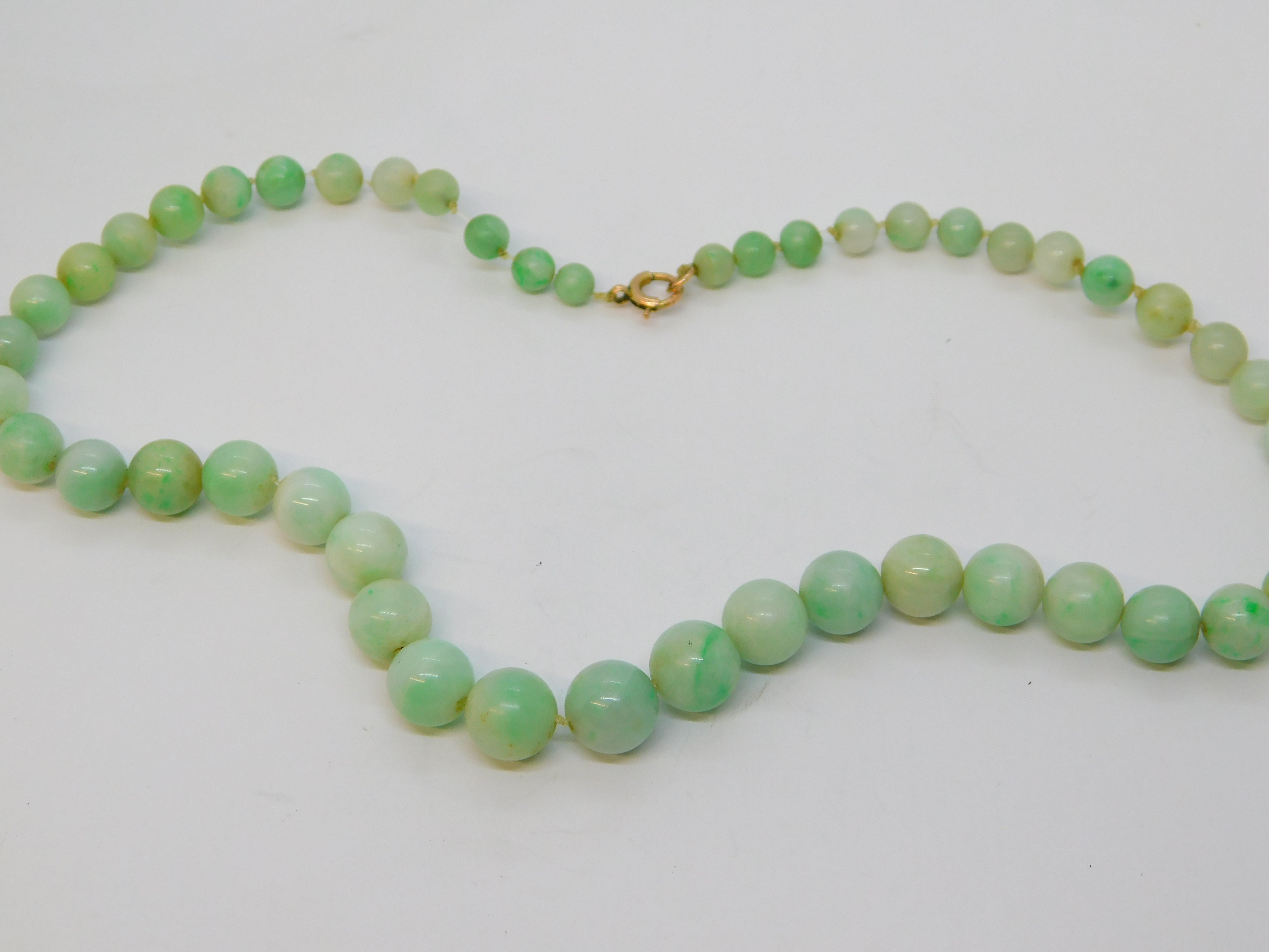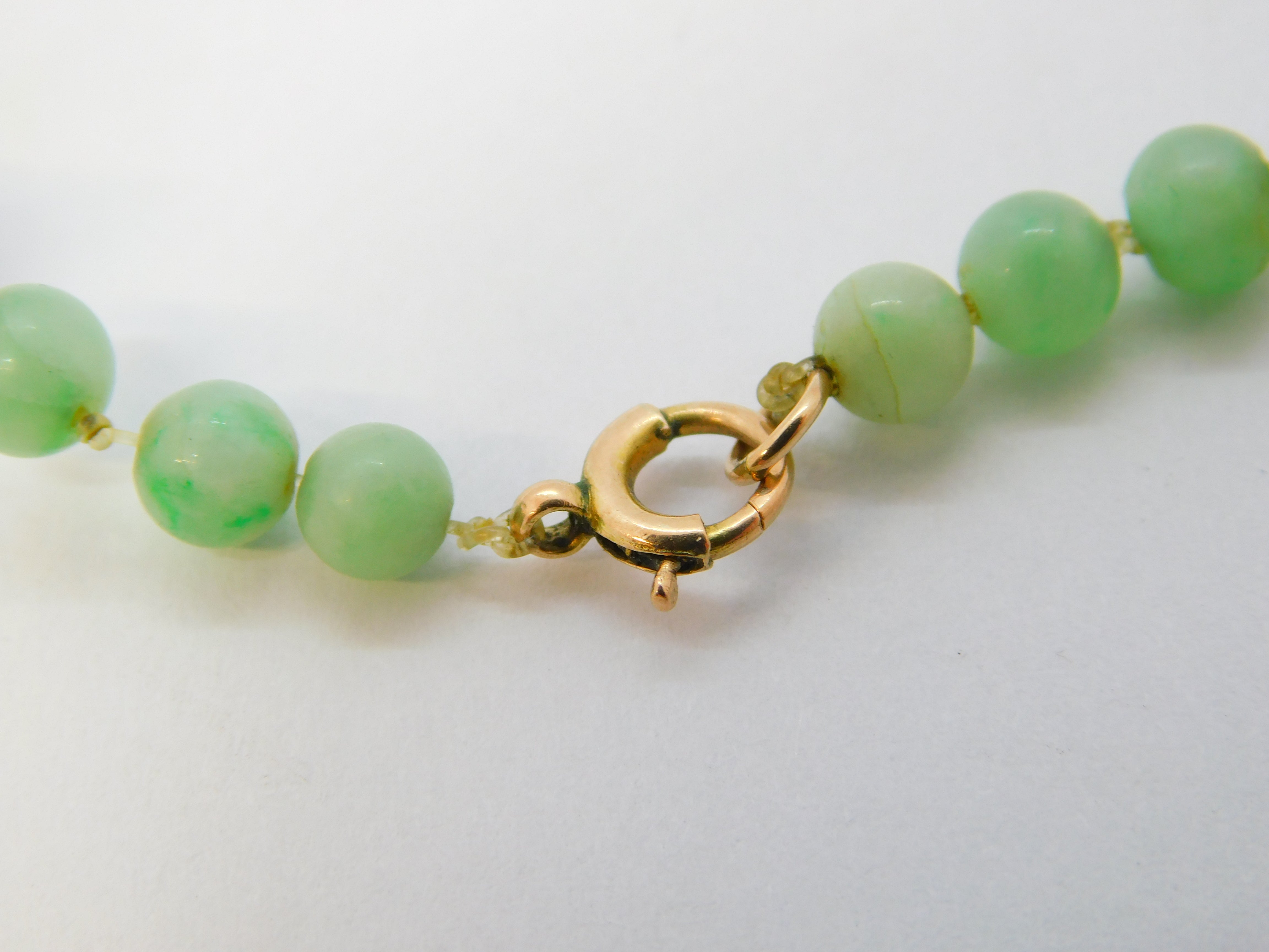 19th Century 9ct Gold Carved Green Jade Graduated Bead Necklace Antique c1860
