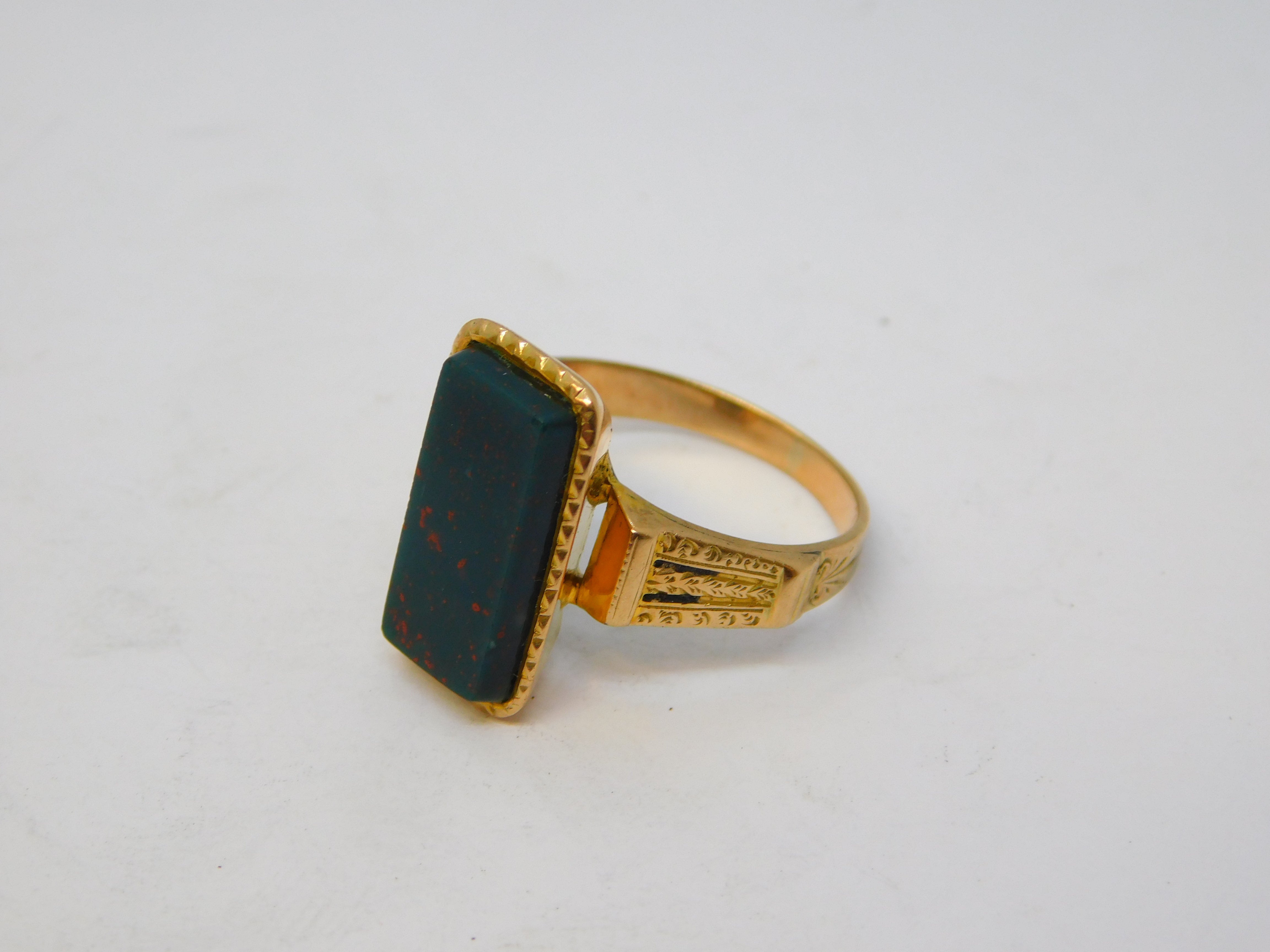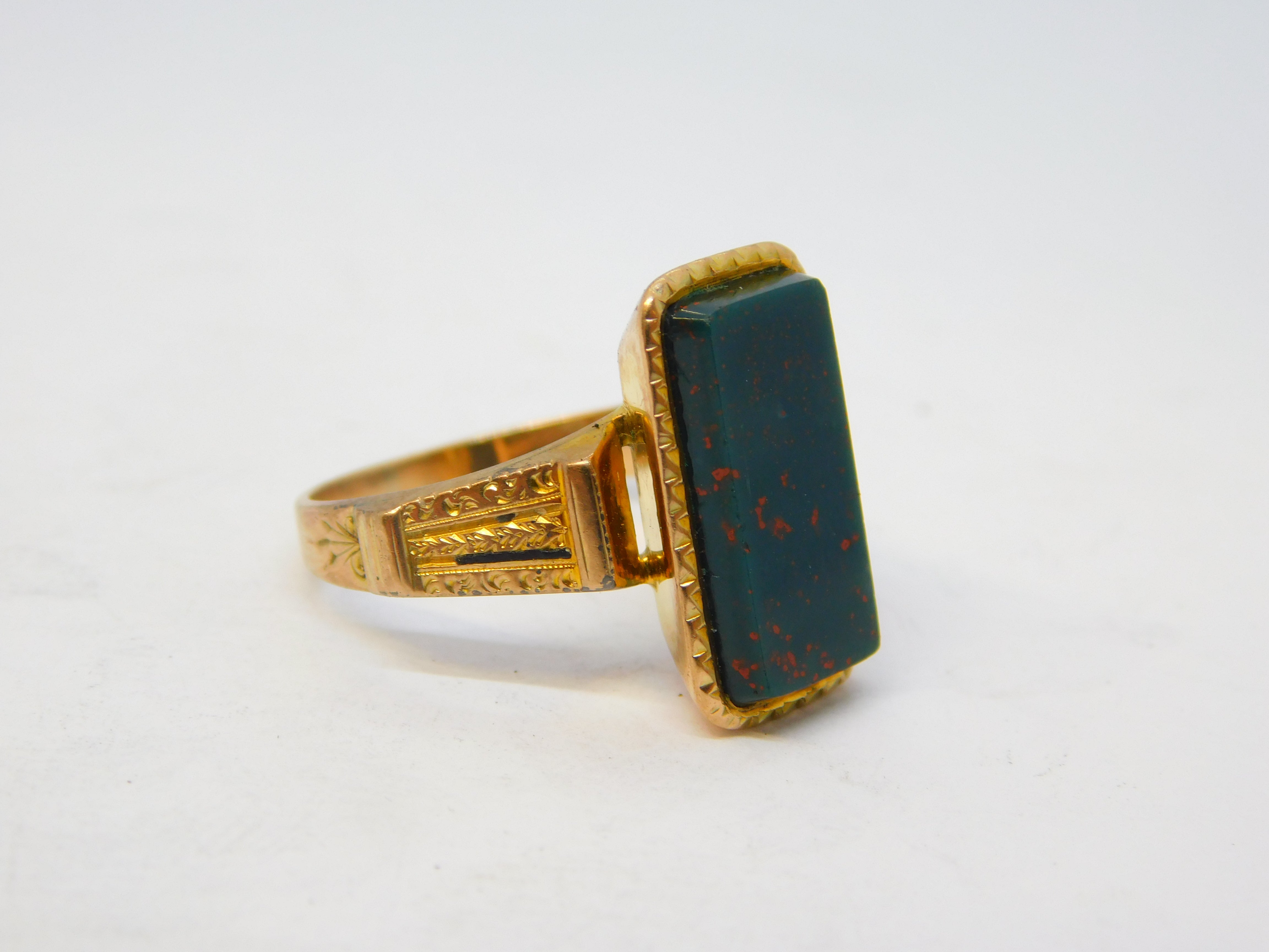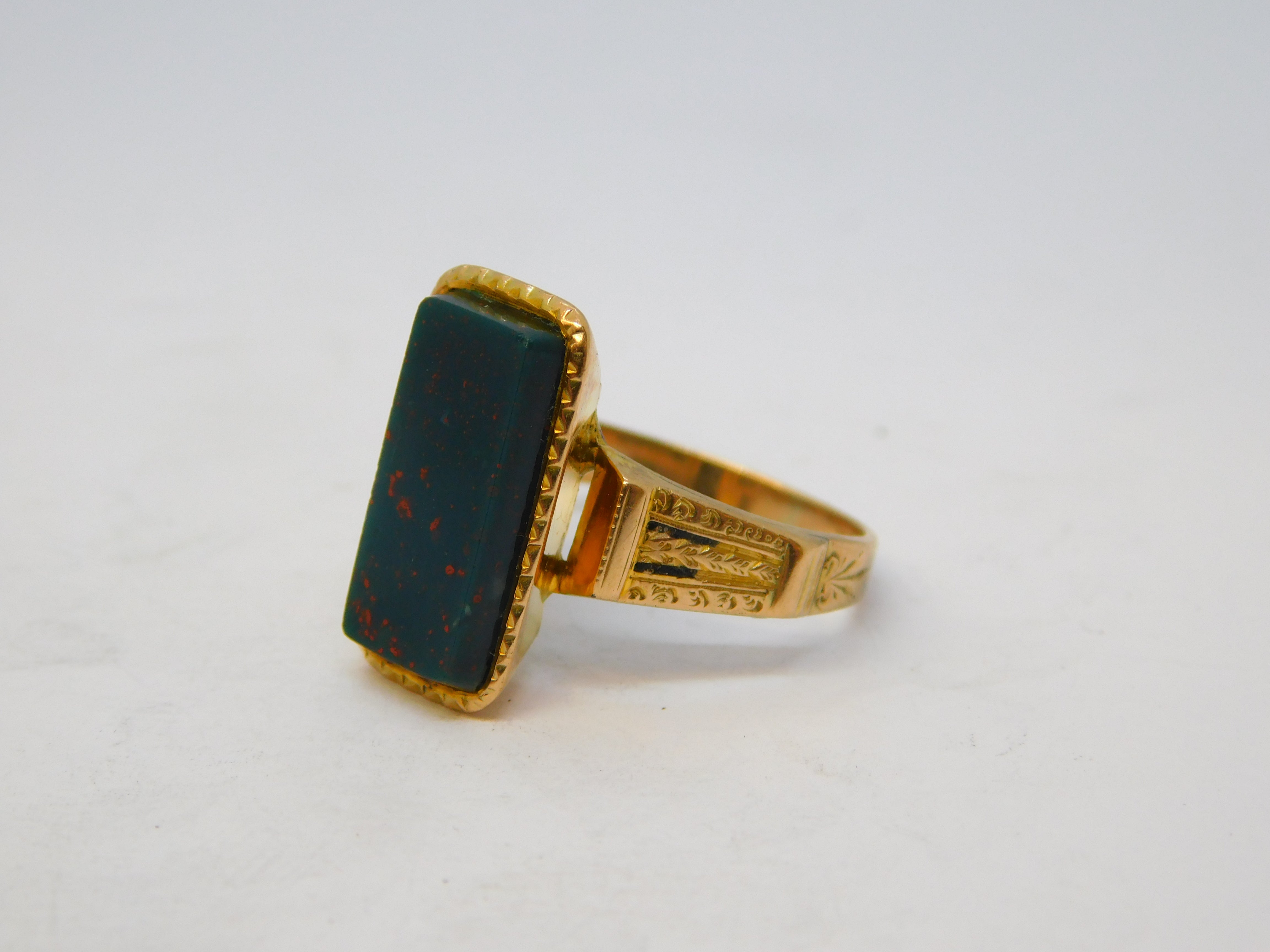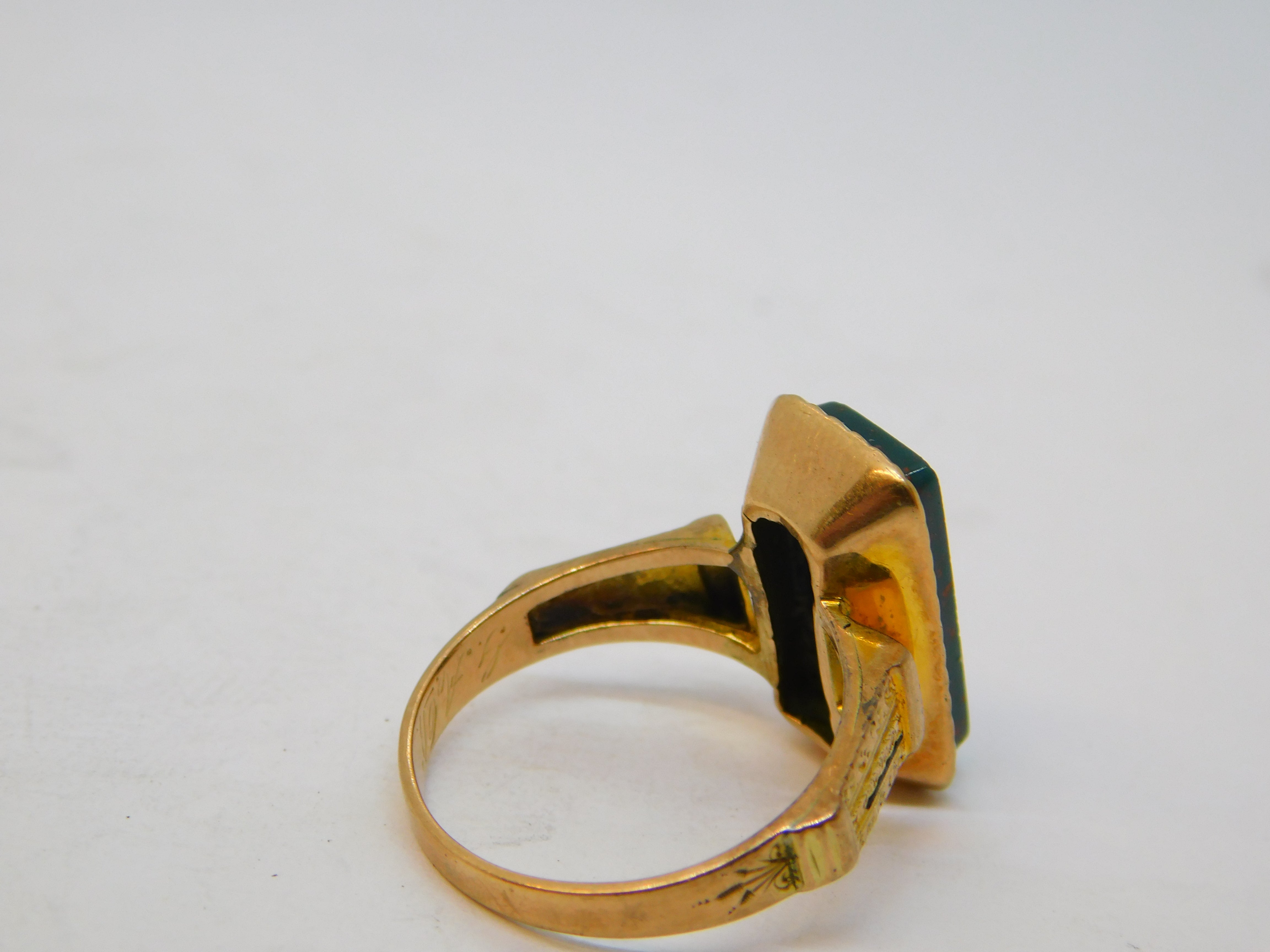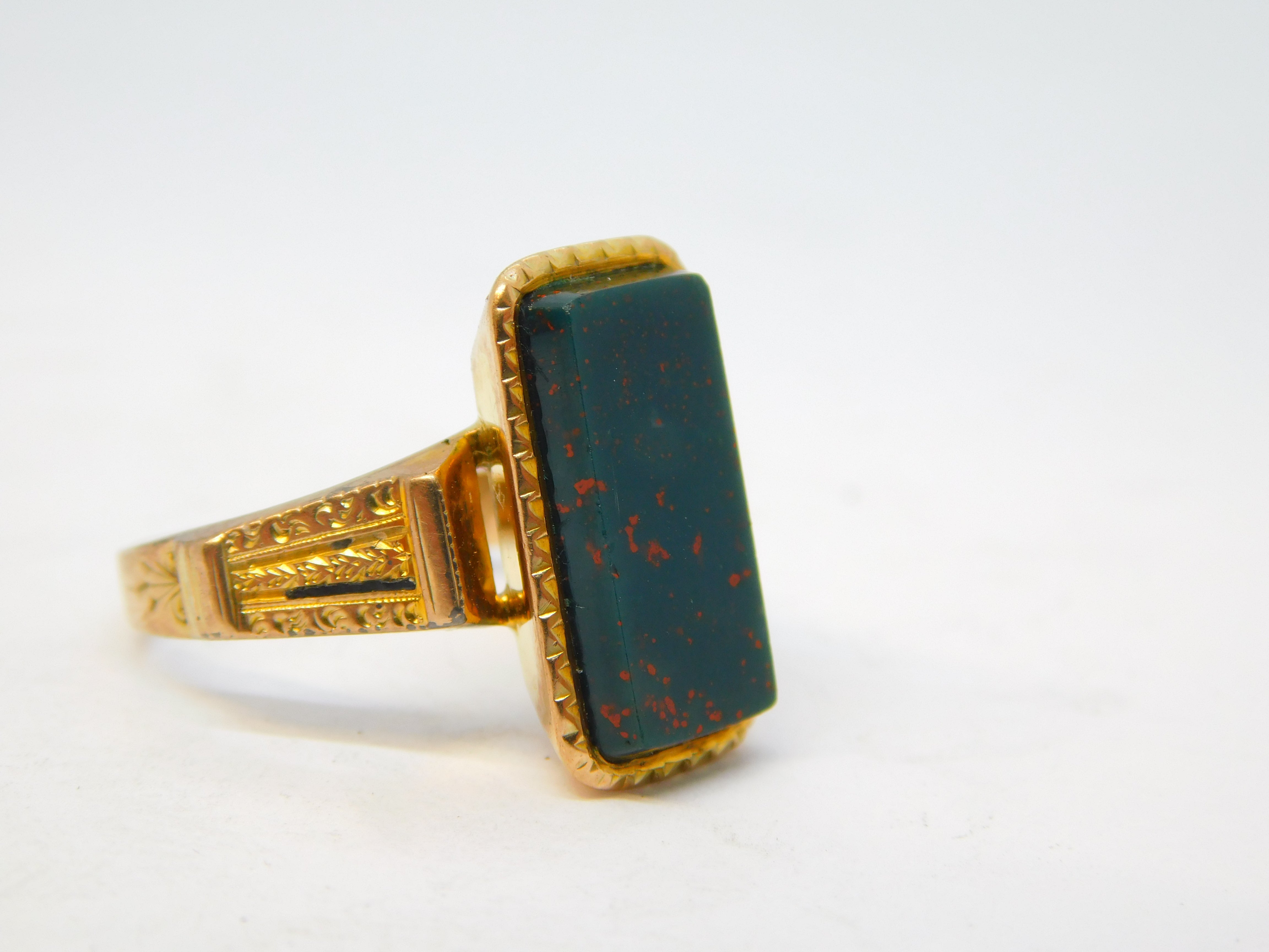 19th Century 9ct Gold Large Bloodstone Panel Signet Ring Antique c1840