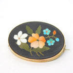19th Century 9ct Rose Gold Mounted Pietra Dura Floral Brooch Antique c1880