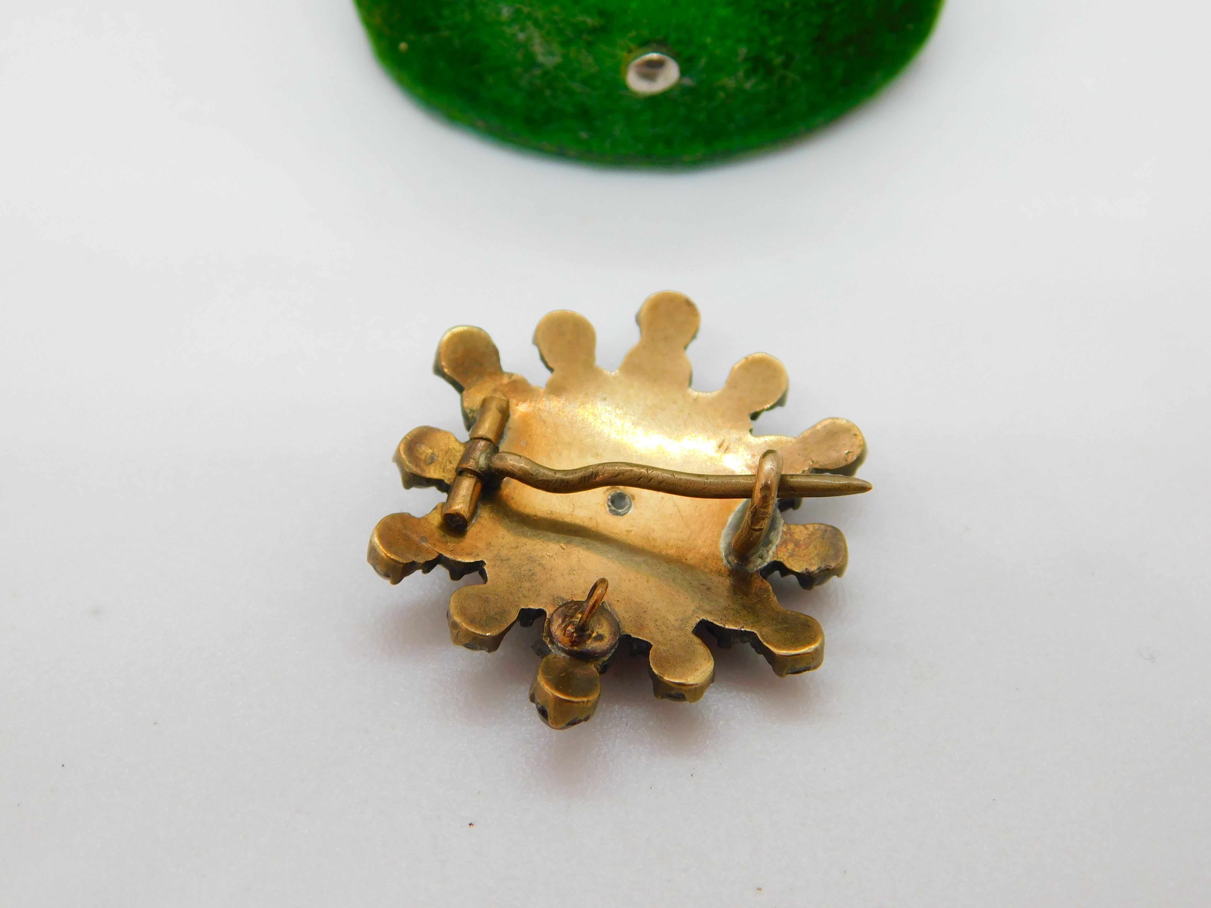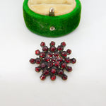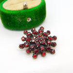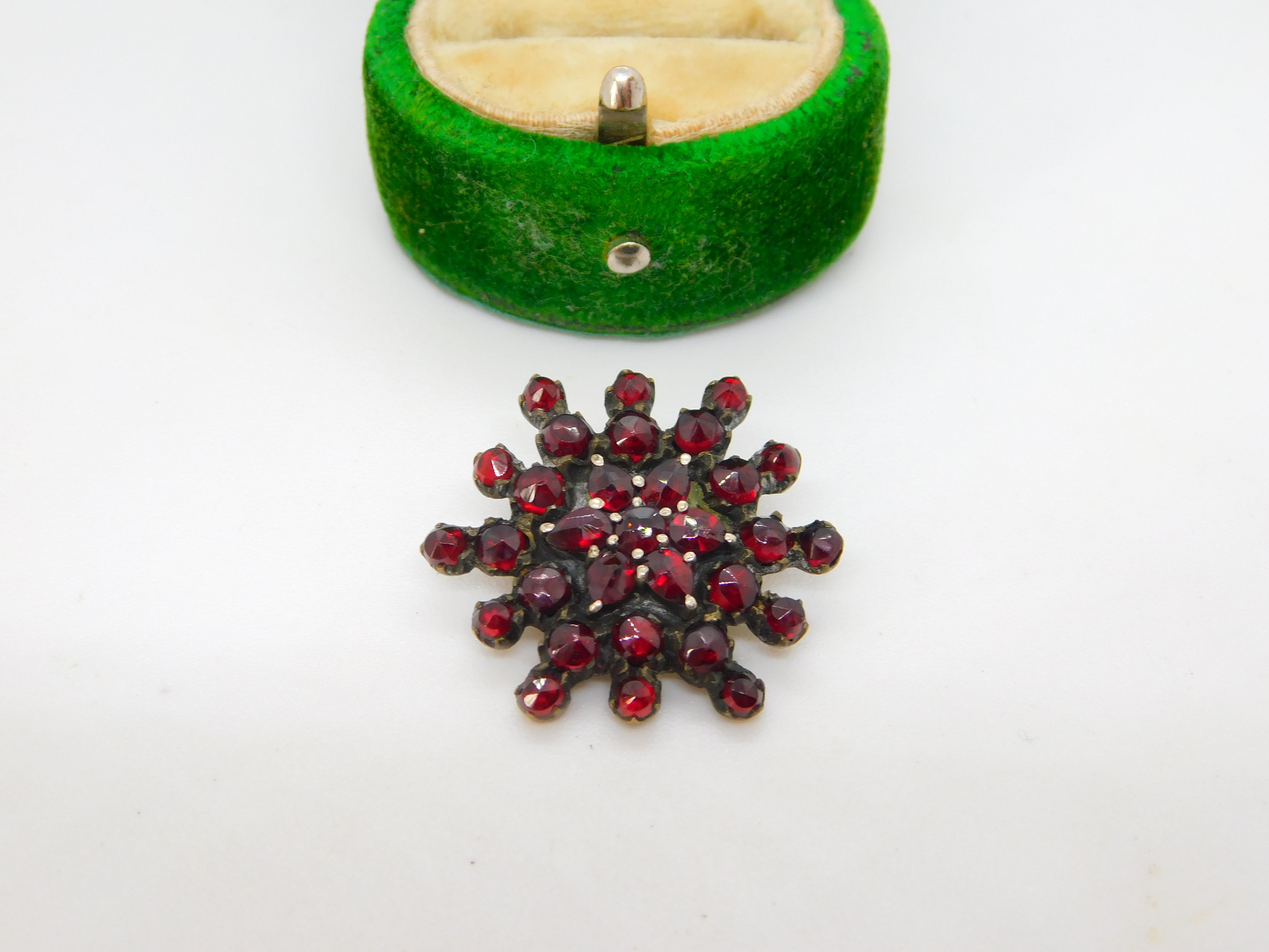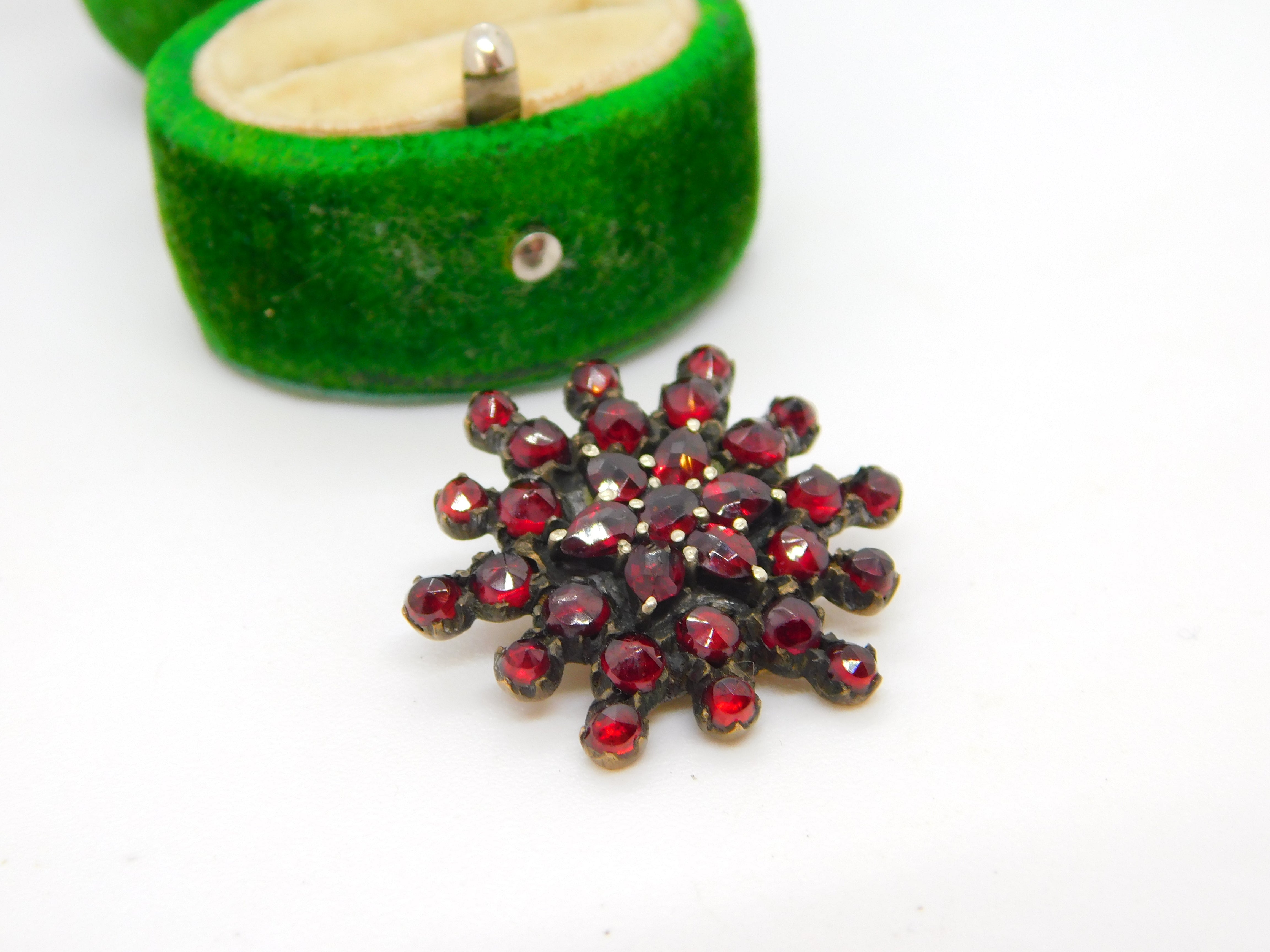 19th Century Austrian 8ct Gold & Bohemian Garnet Snowflake Brooch Antique c1860