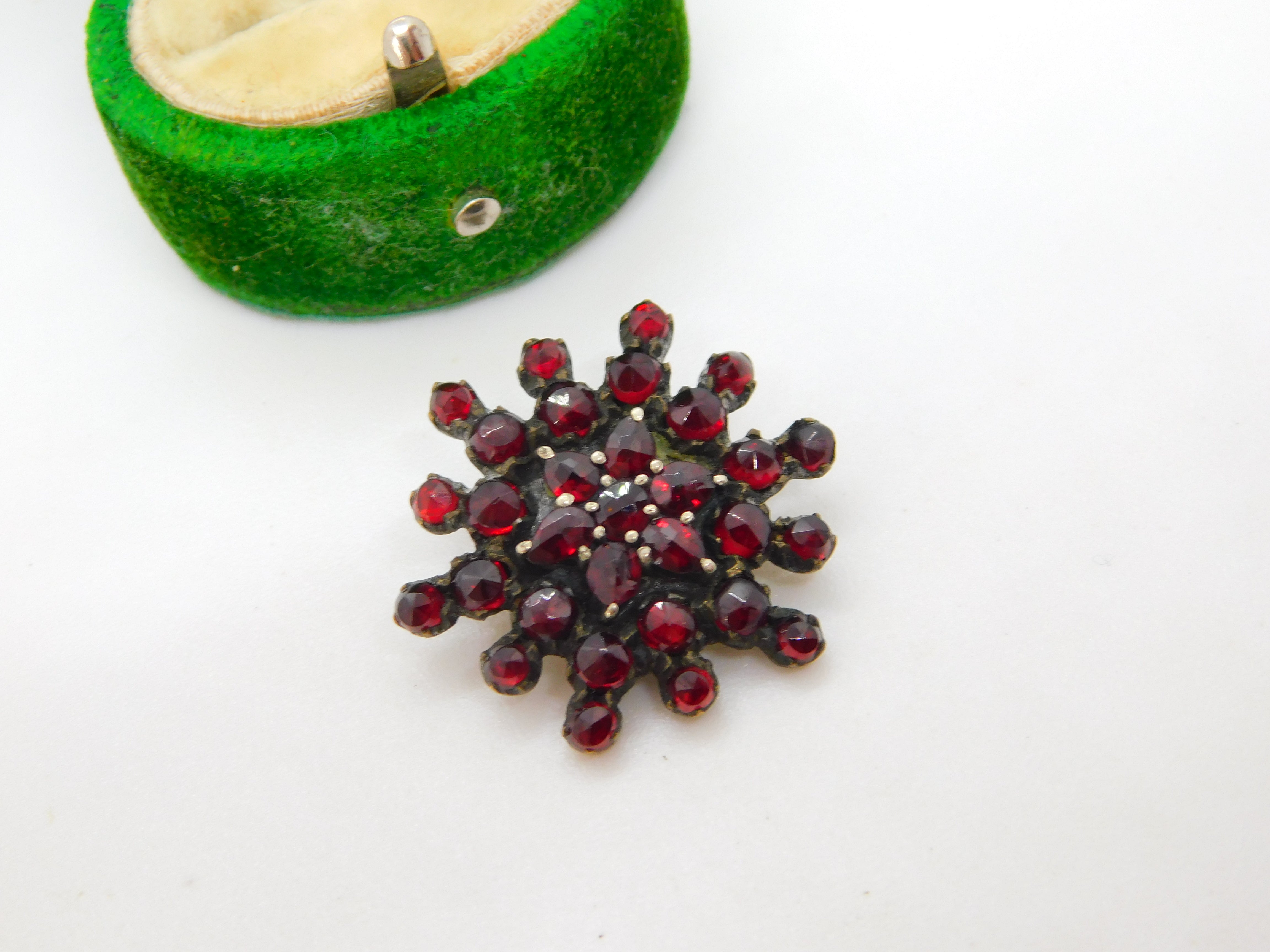 Details: A fantastic and wonderfully designed antique 19th century austro-hungarian 8ct yellow gold & bohemian garnet snowflake form brooch c1860, the gold has been XRF tested as it is unmarked. This is a wonderful item that would make a perfect gift or addition to any collection. The BOX pictured is for PRESENTATION ONLY and is NOT included in the listings but used to frame the pictures unless specifically stated otherwise.