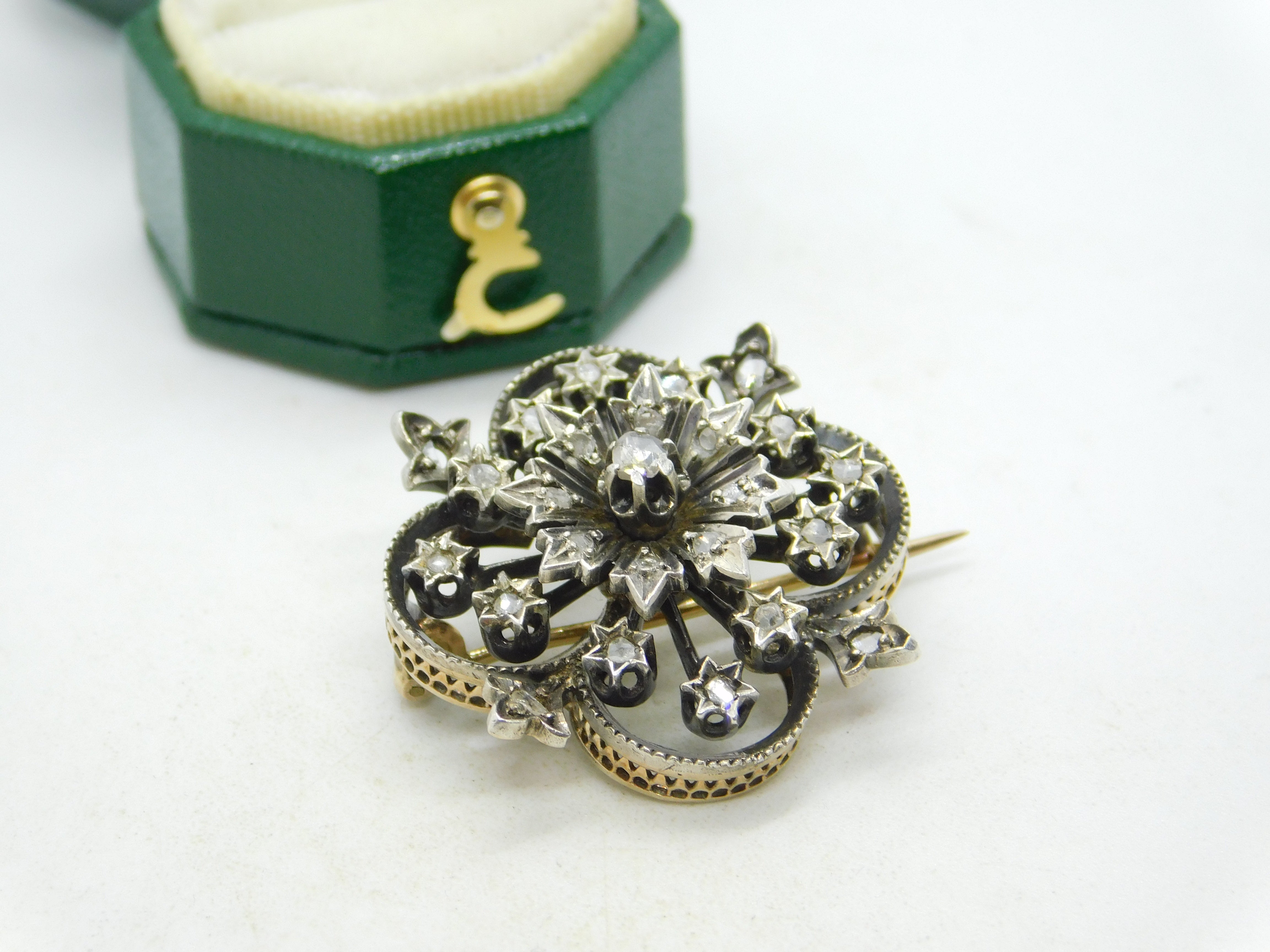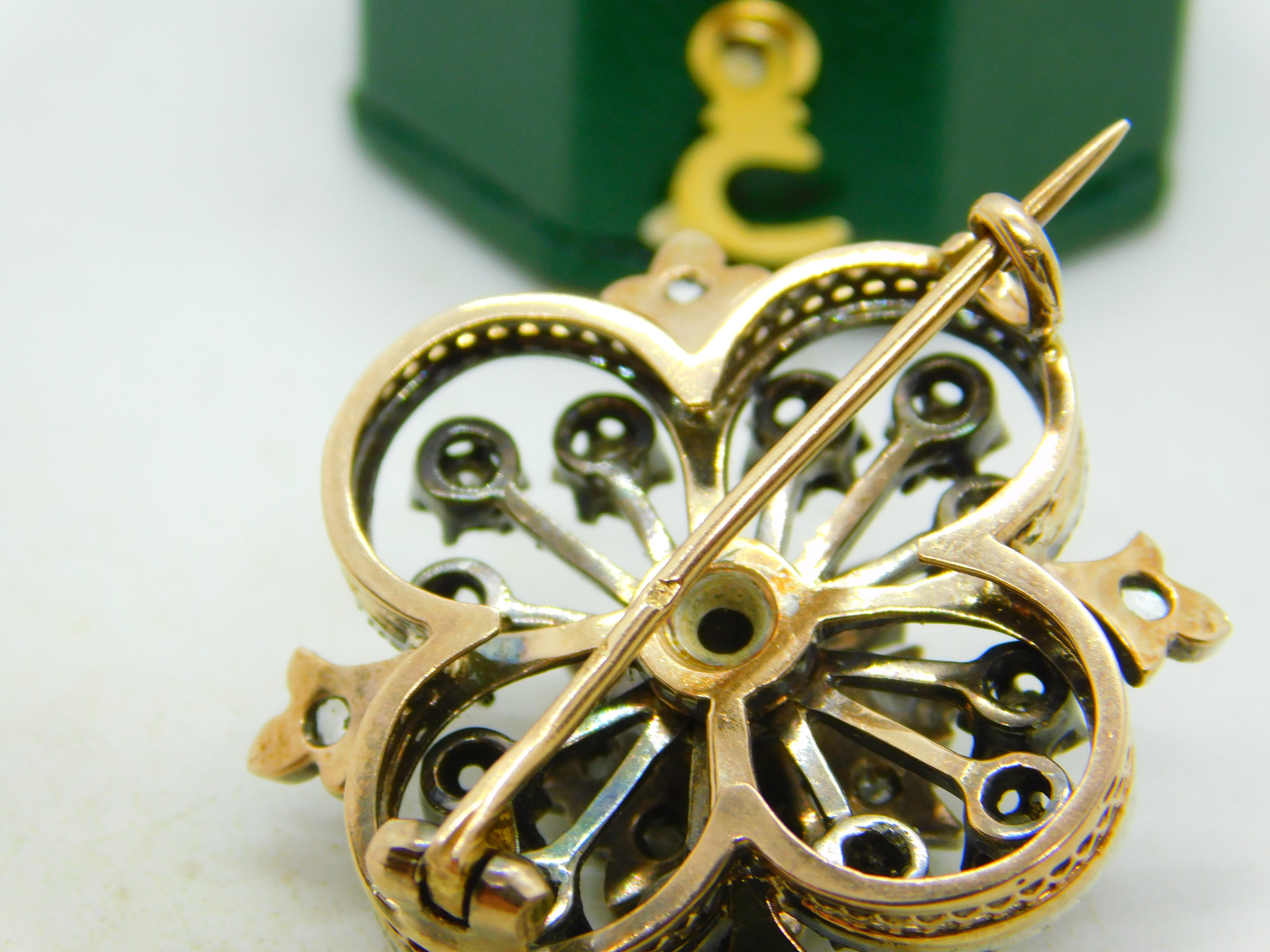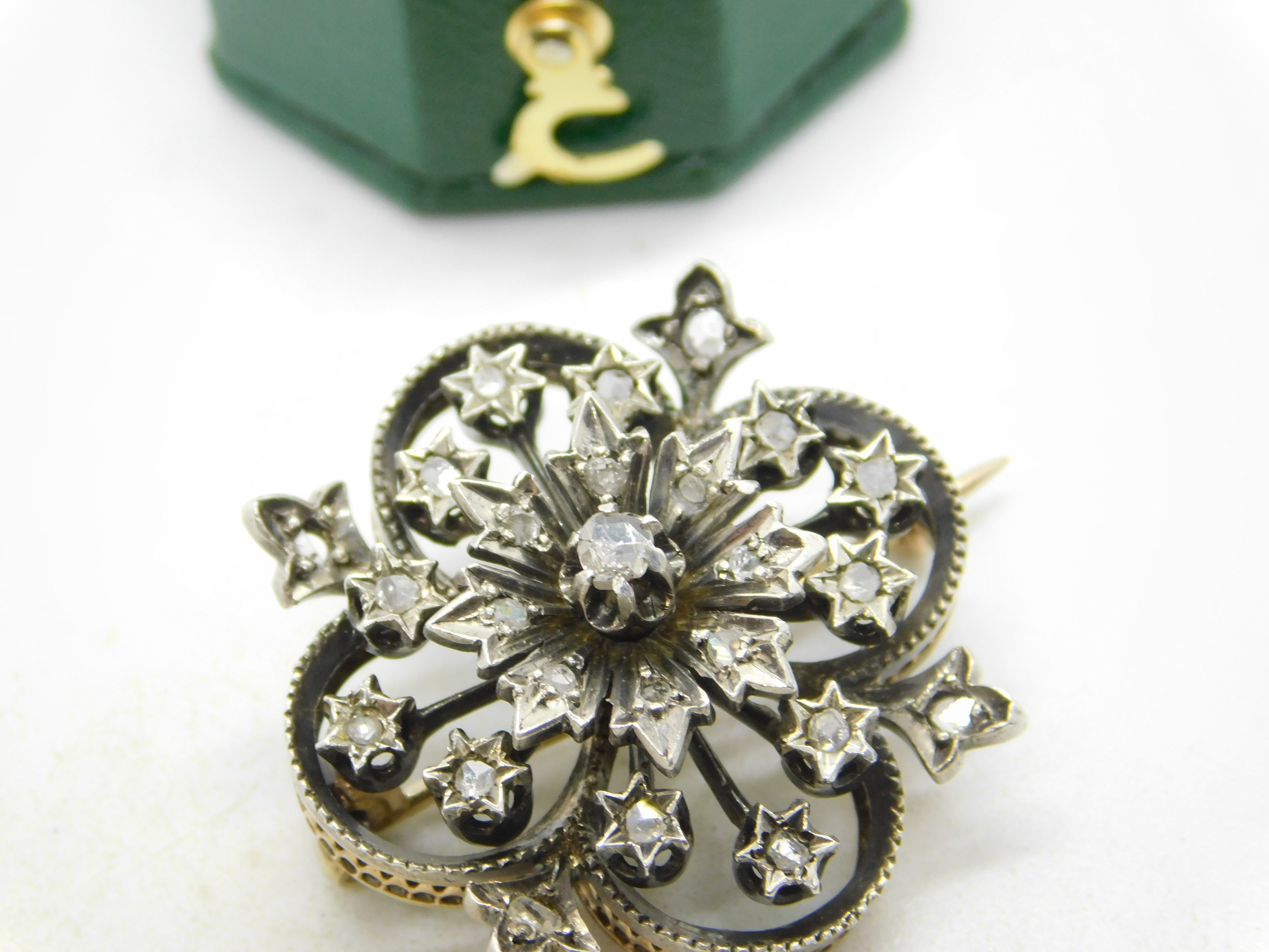 19th Century French 18ct Gold Old Cut Diamond Floral Brooch Antique c1890