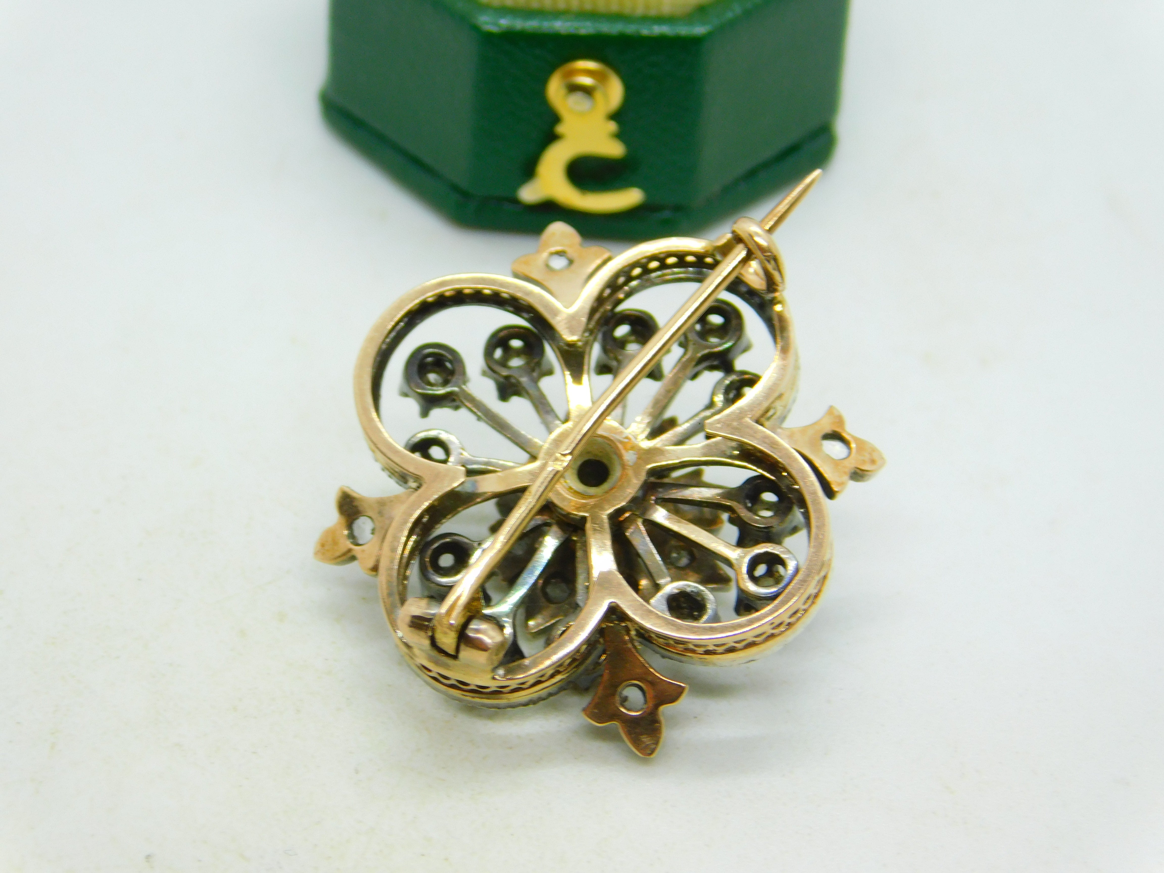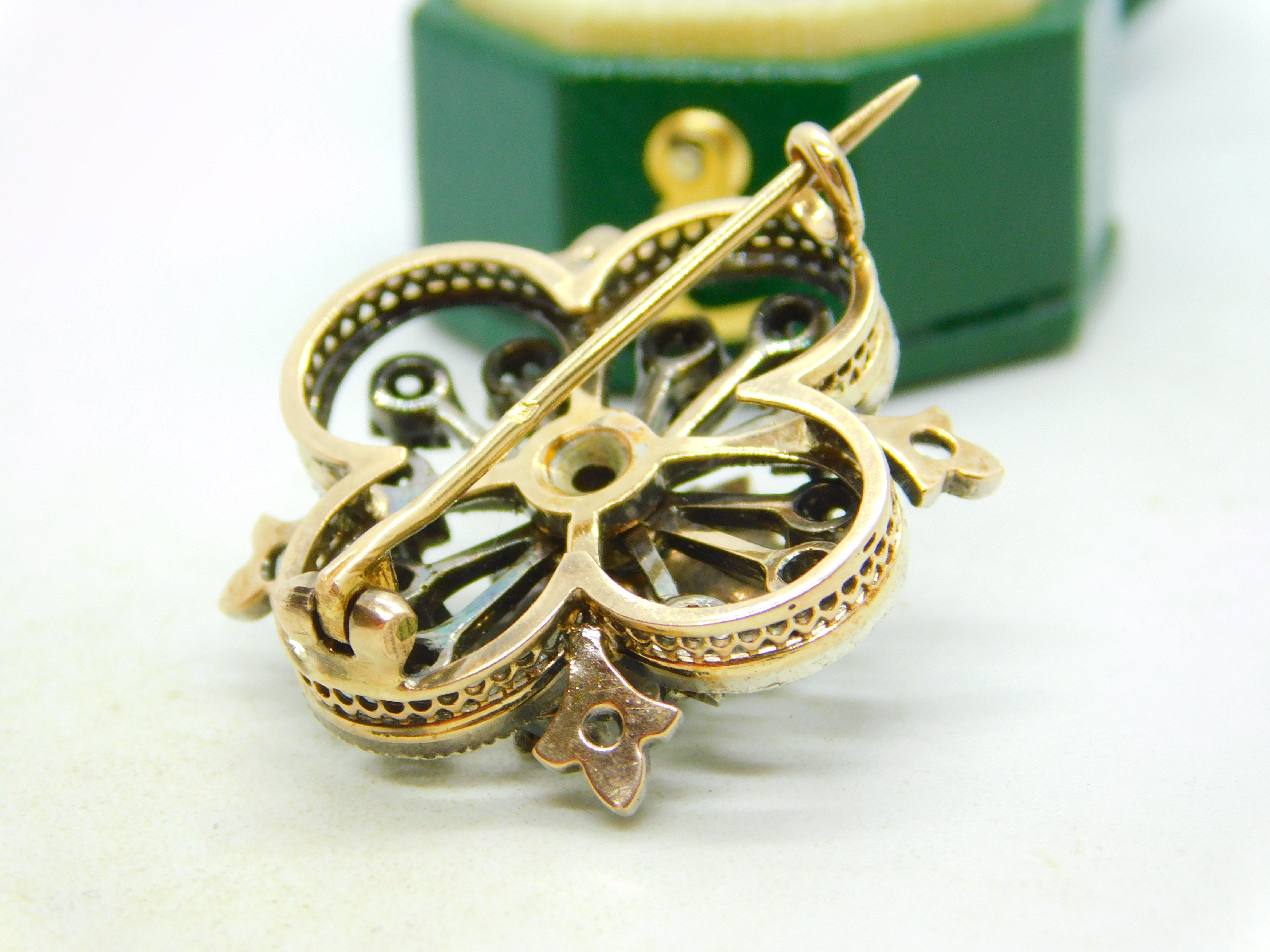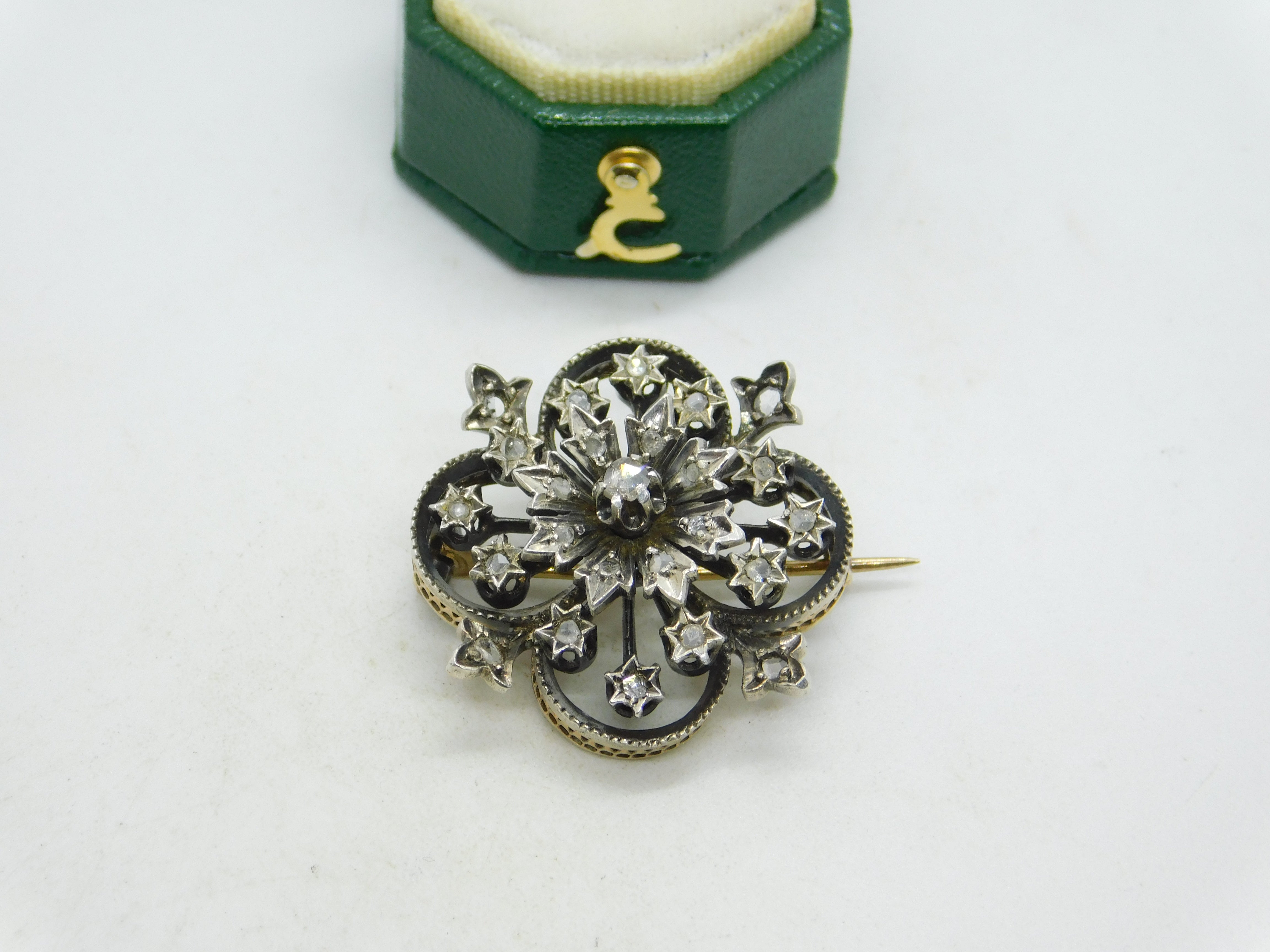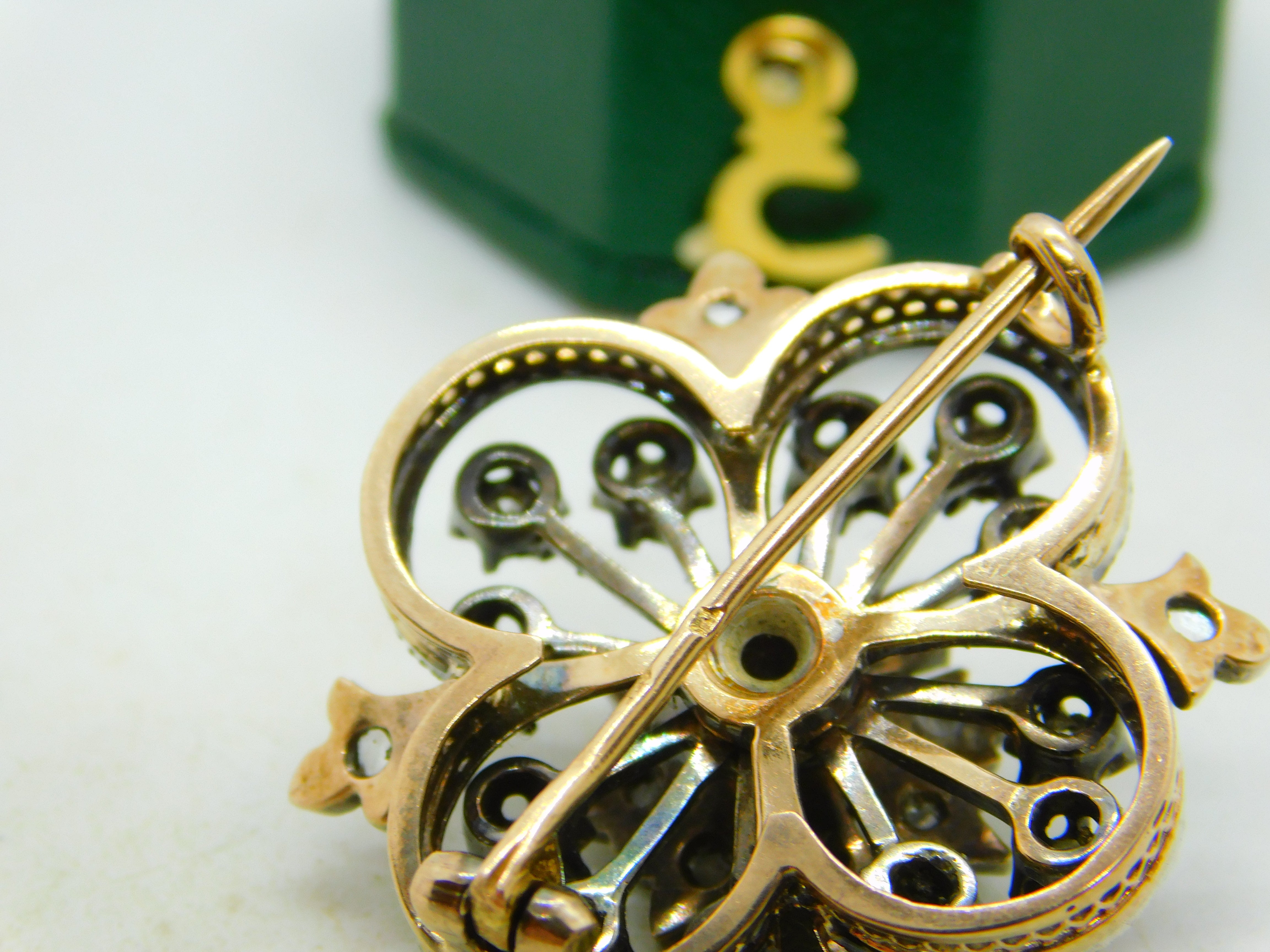 19th Century French 18ct Gold Old Cut Diamond Floral Brooch Antique c1890