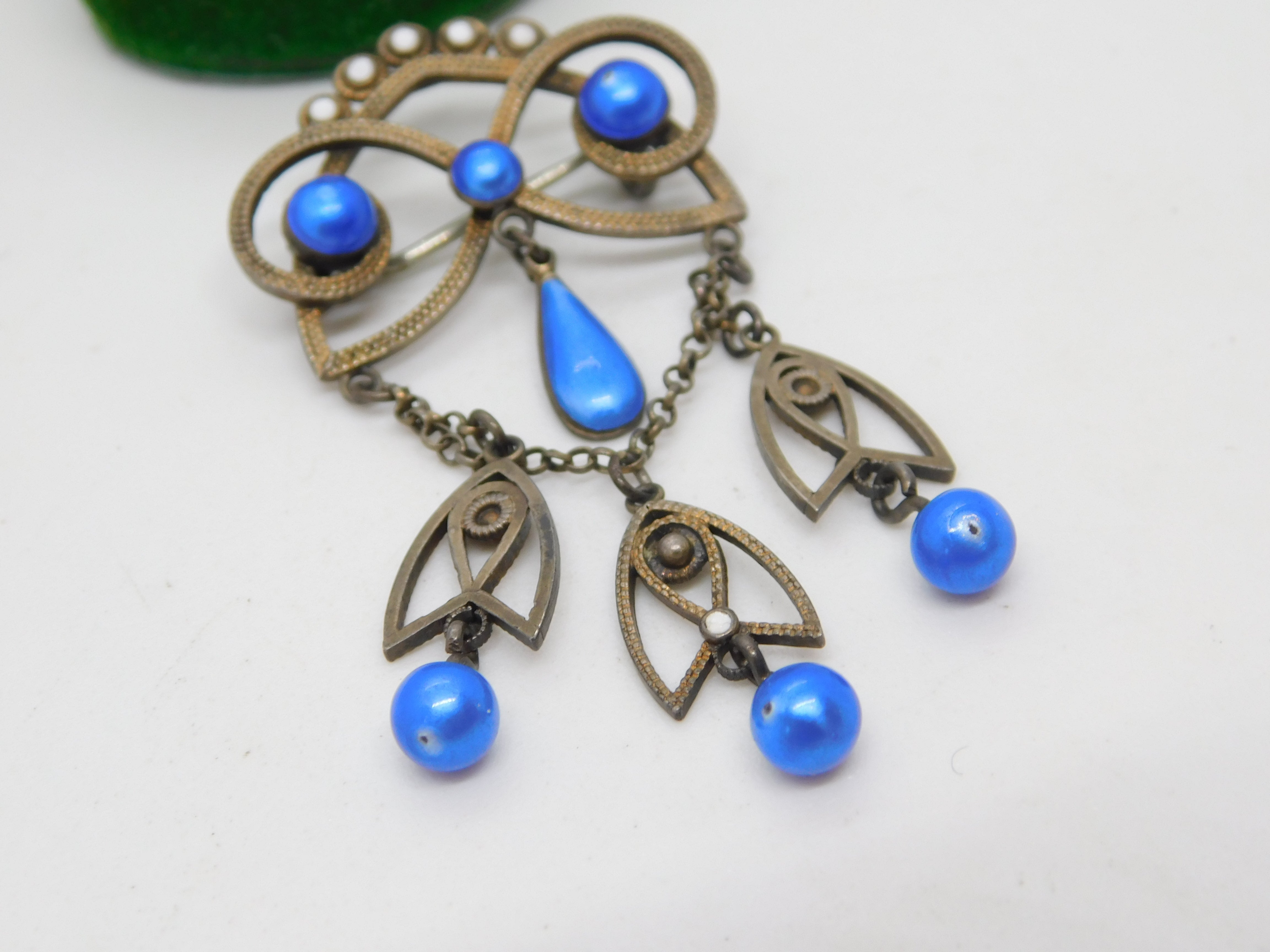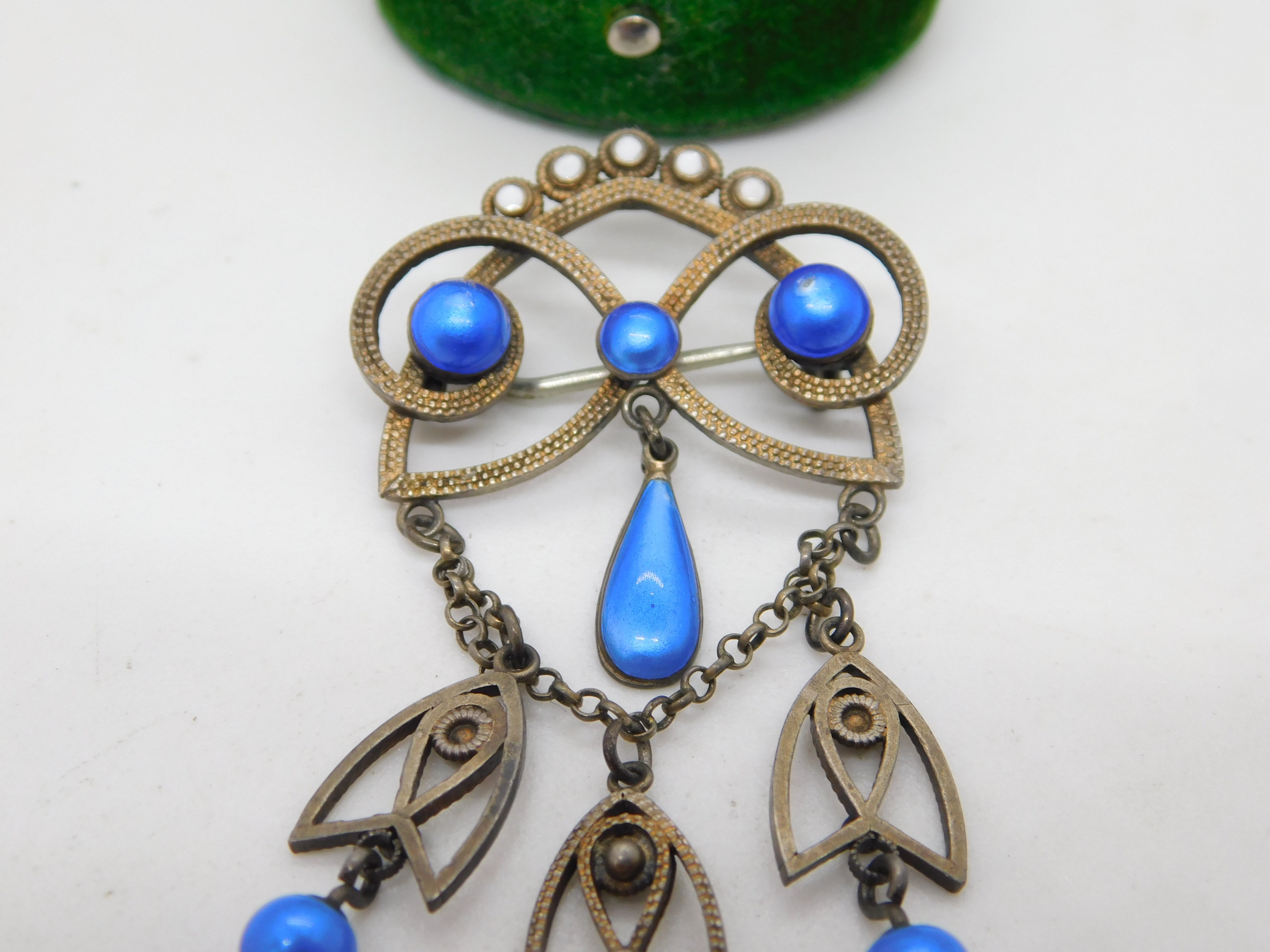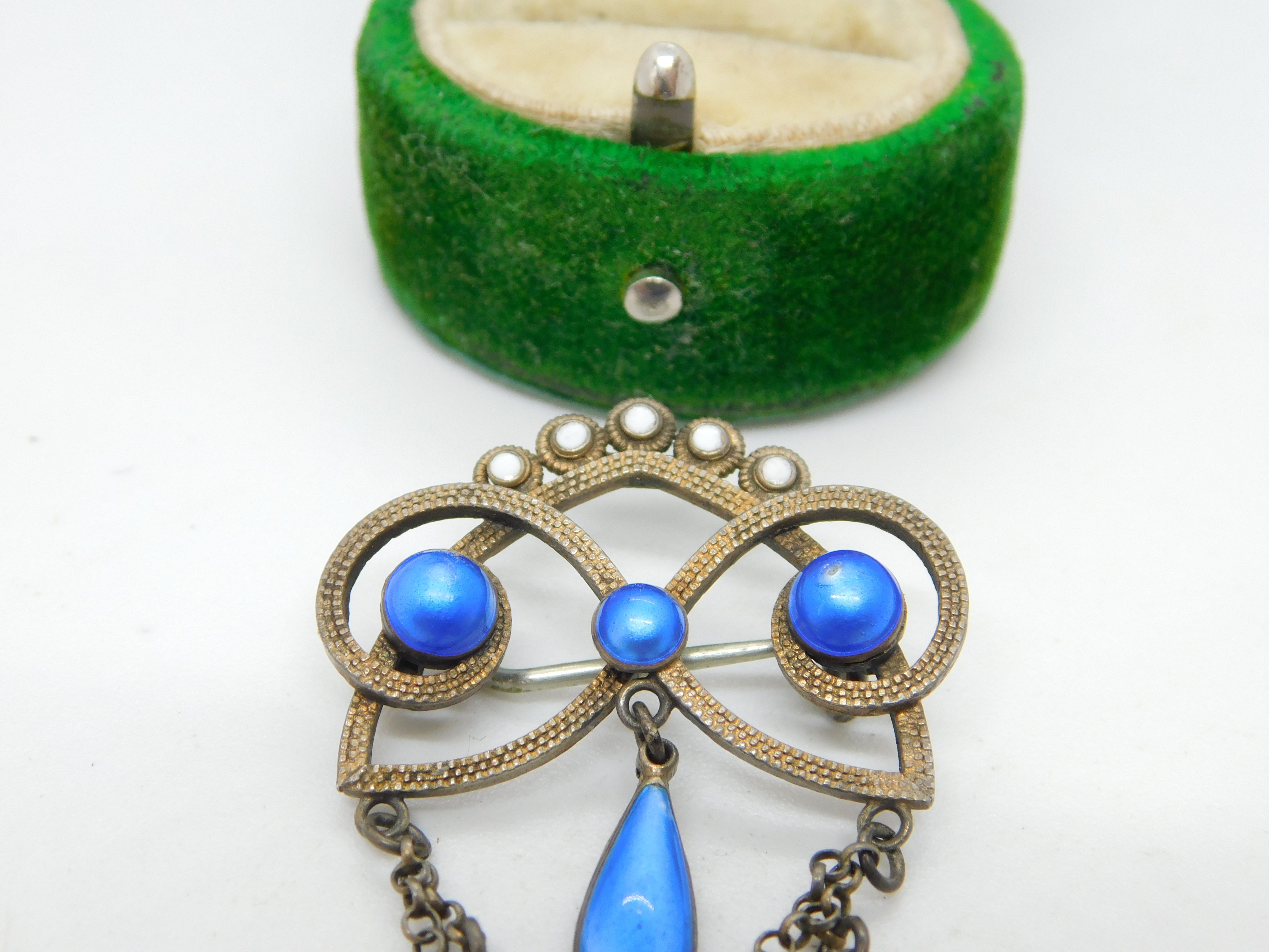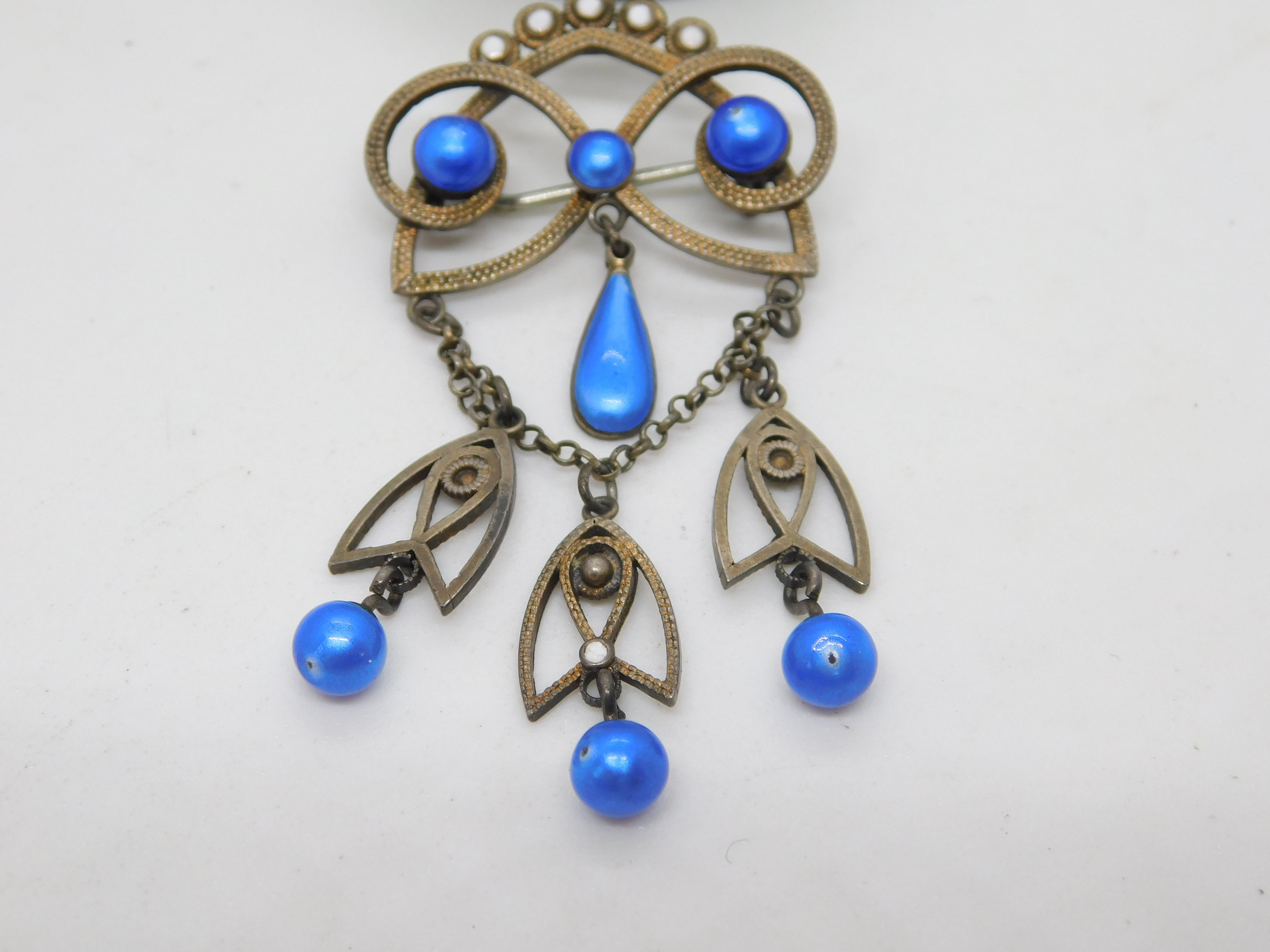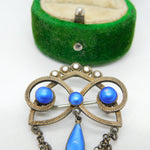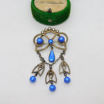 Details: A fantastic and wonderfully designed antique 19th century Norwegian .930 silver & white enamel floral lavalier drop brooch set with blue simulated pearls hallmarked to the top edge by prestigious maker Marius Hammer c1890. This is a wonderful item that would make a perfect gift or addition to any collection. The BOX pictured is for PRESENTATION ONLY and is NOT included in the listings but used to frame the pictures unless specifically stated otherwise.