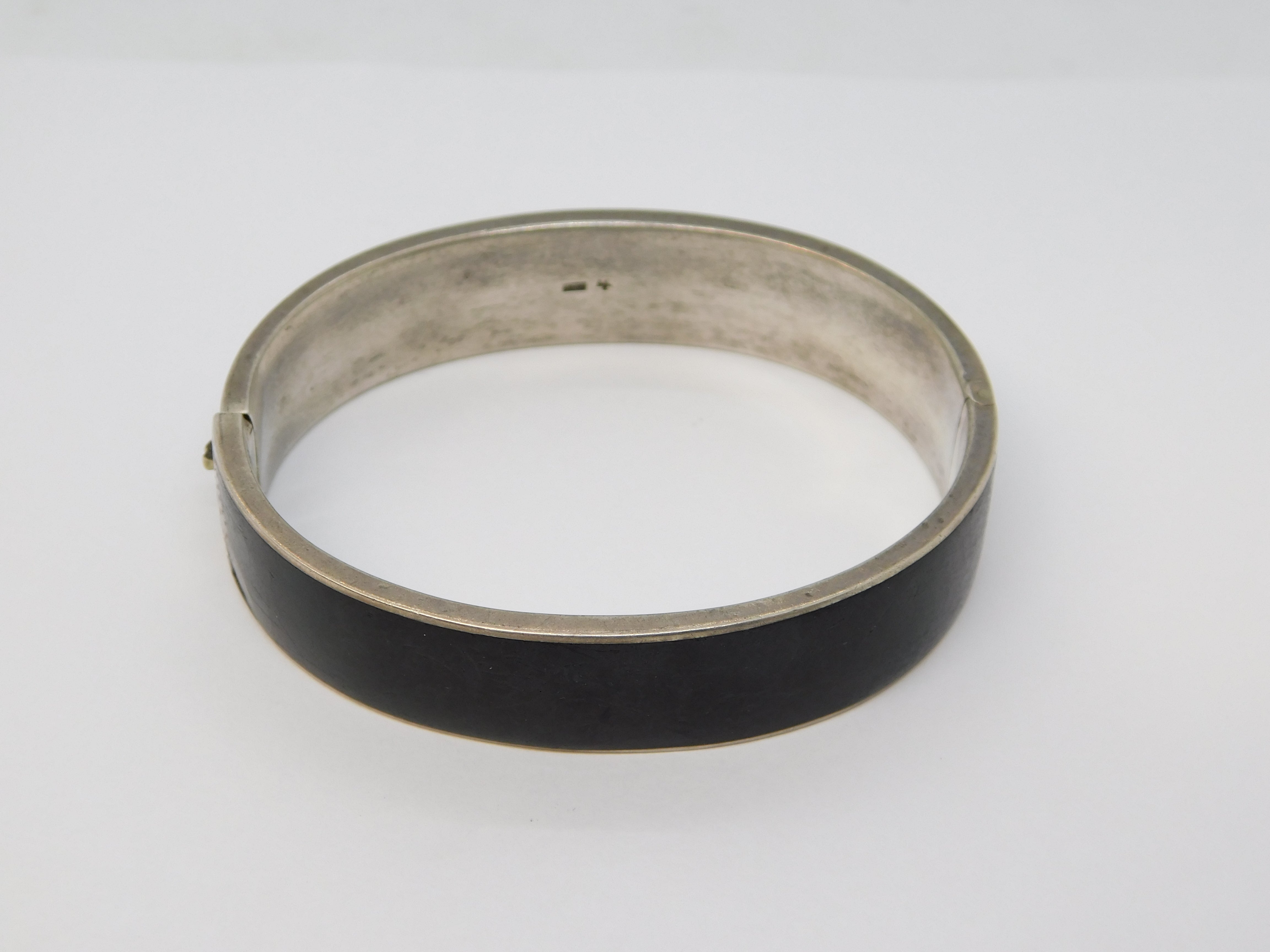 Details: A fantastic and wonderfully designed antique German or Austrian 19th century silver & black enamel mourning bangle with Gott Schütze Dich or May God Protect You written to the front, hallmarked to the interior, minor enamel loss in a few areas c1860s. This is a wonderful item that would make a perfect gift or addition to any collection. We are more than happy to provide XRF reports for items upon request.