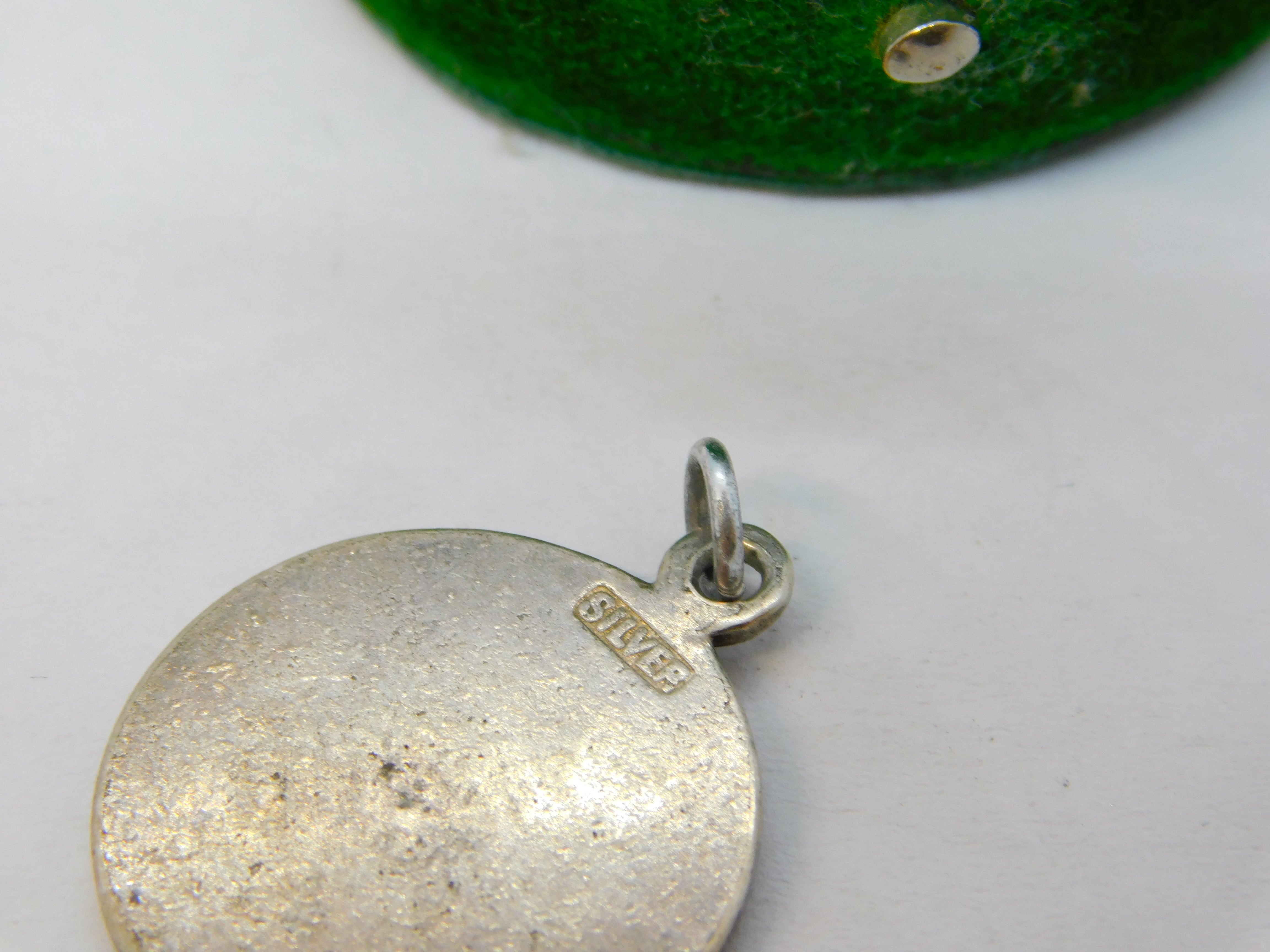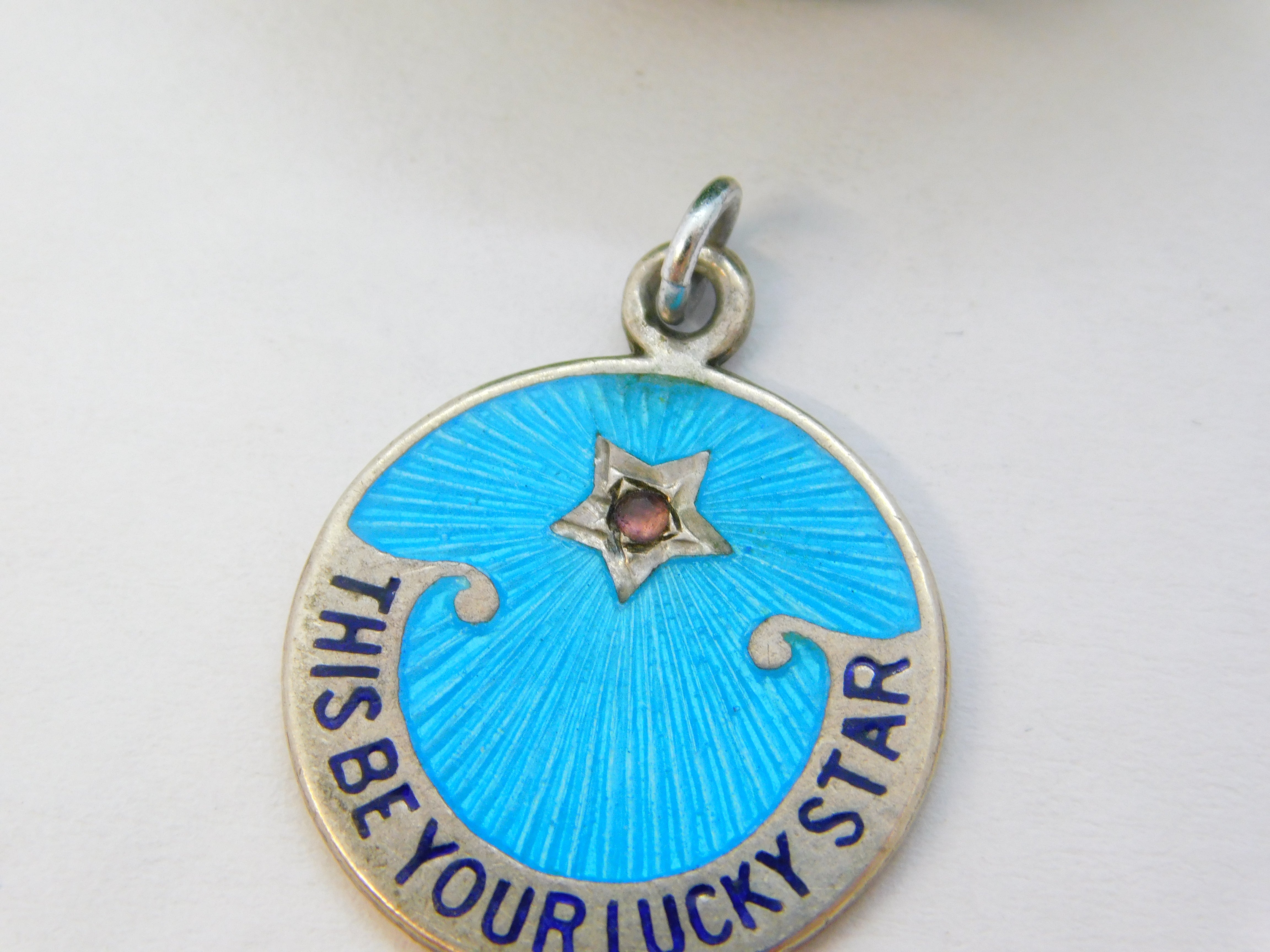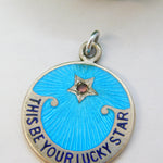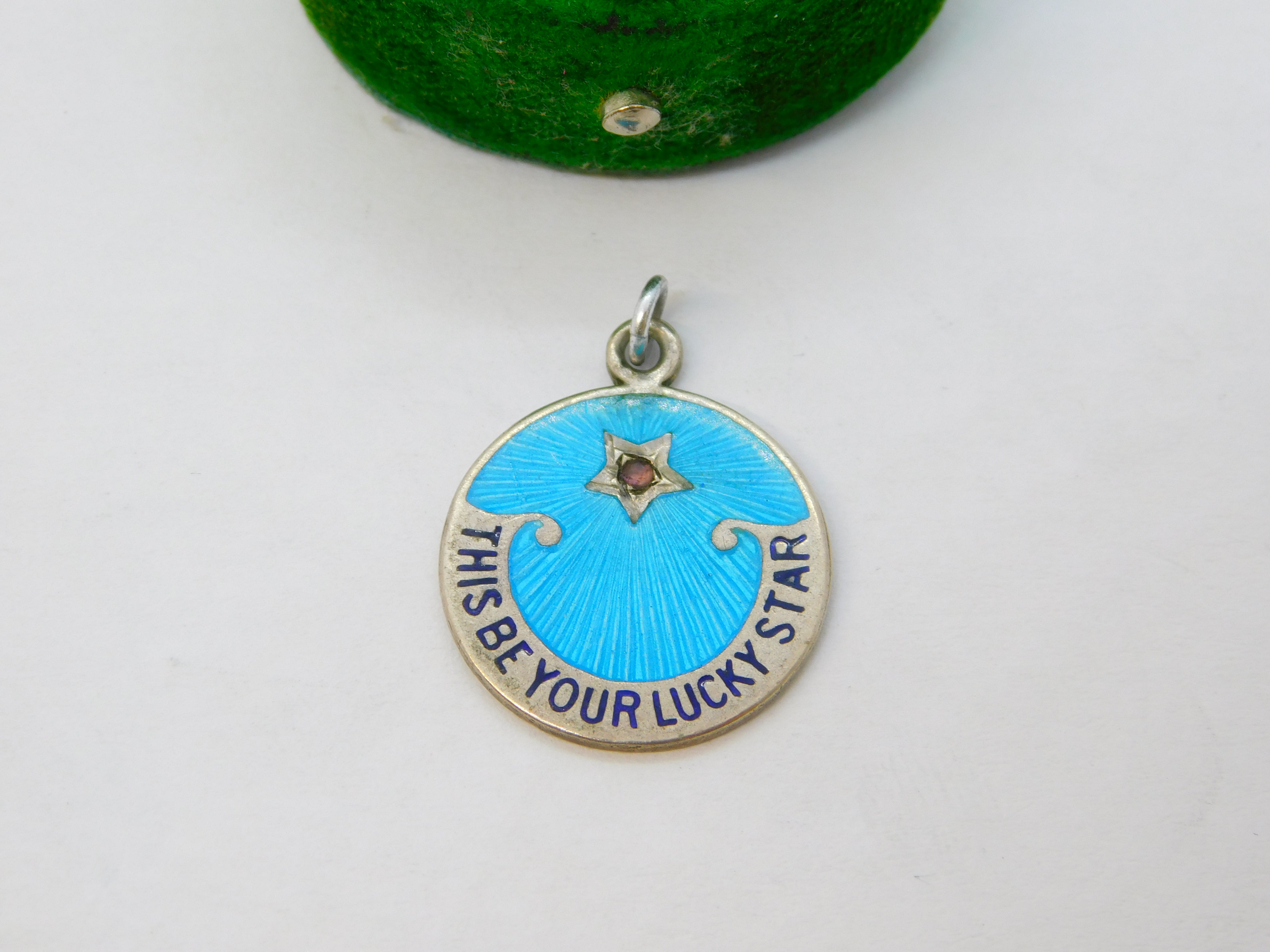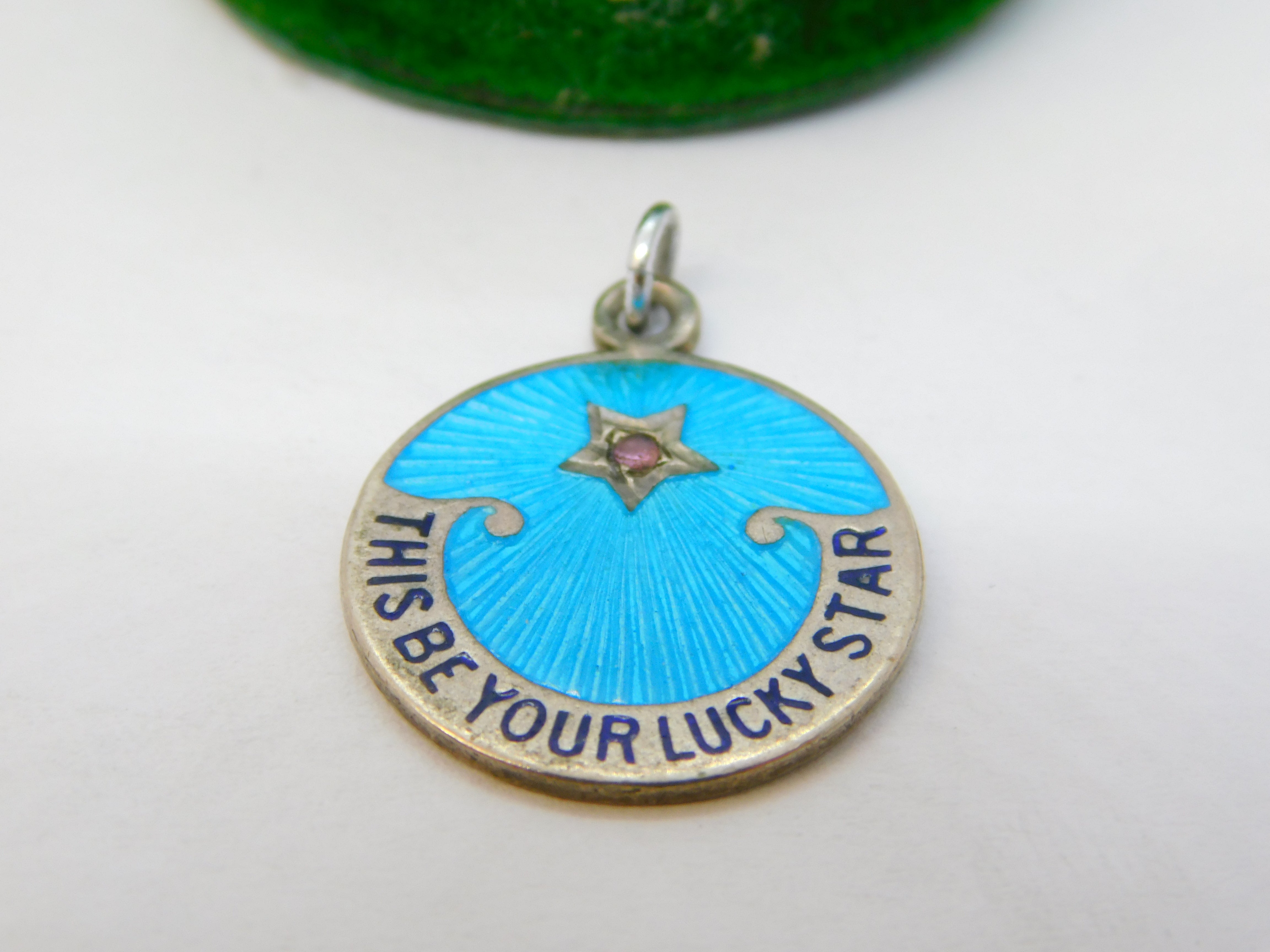19th Century Sterling Silver Guilloche Enamel 'This Be Your Lucky Star' Pendant c1900