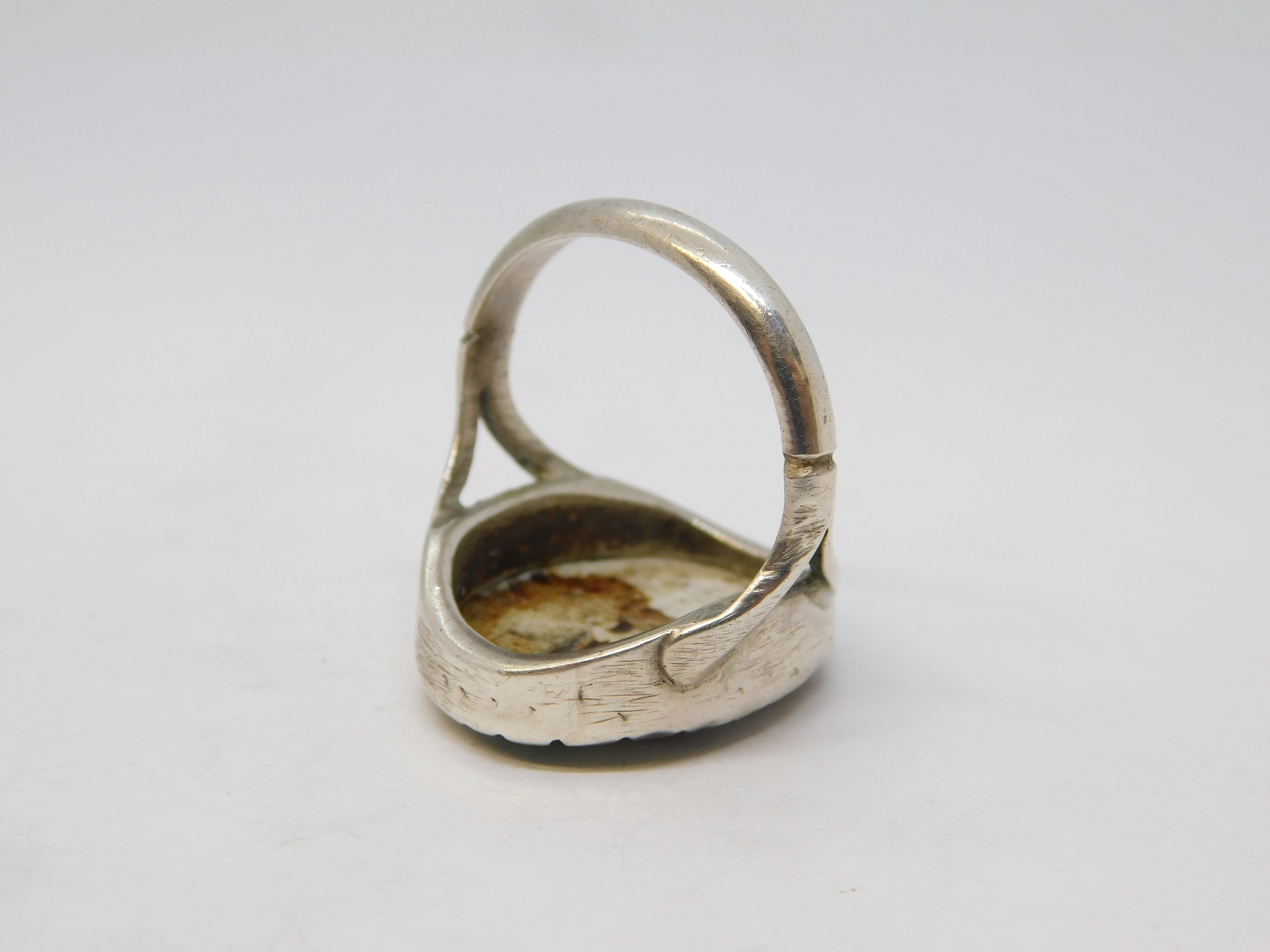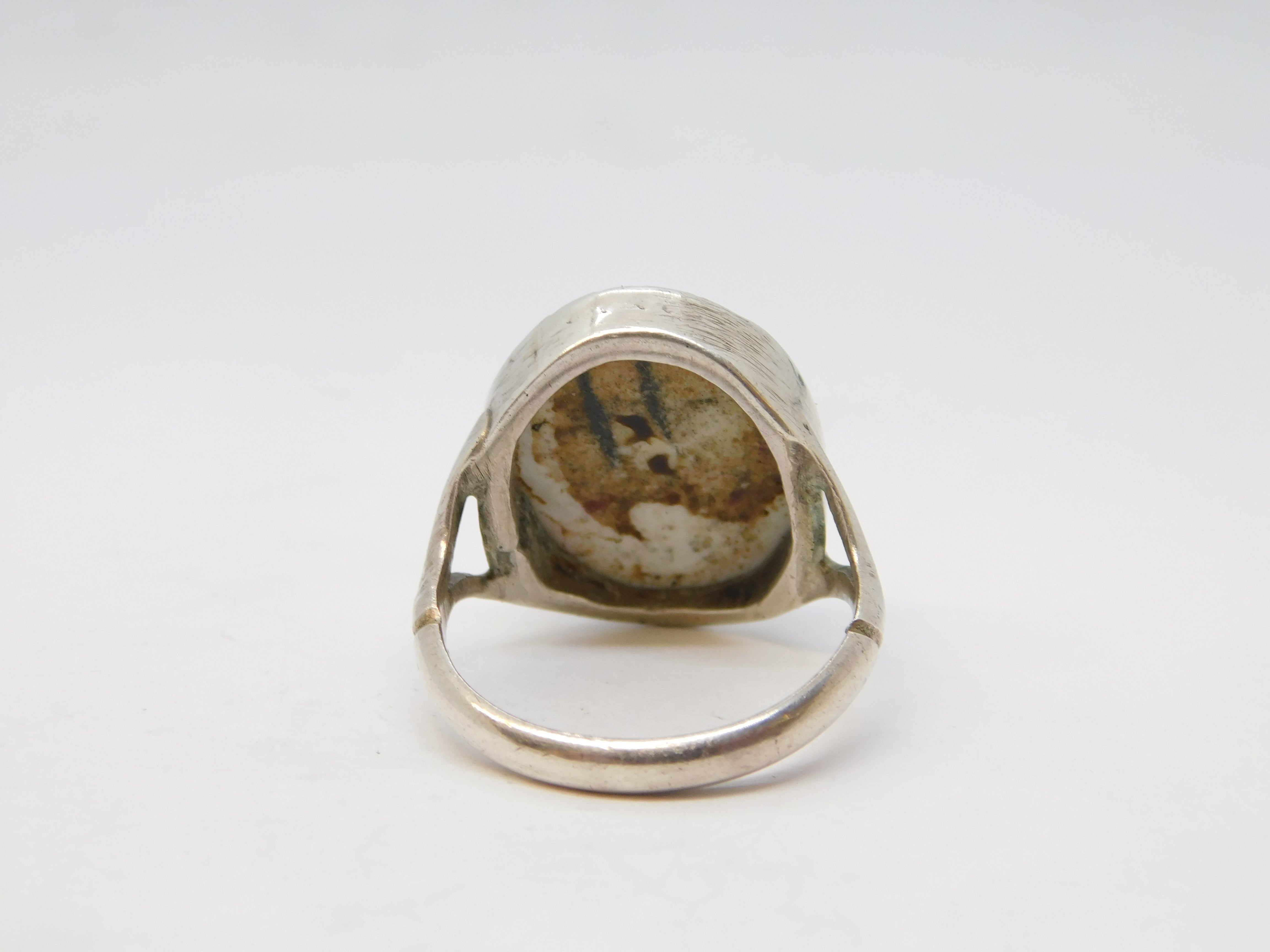 Victorian Sterling Silver Mary Queen of Scots Porcelain Dress Ring Antique c1860