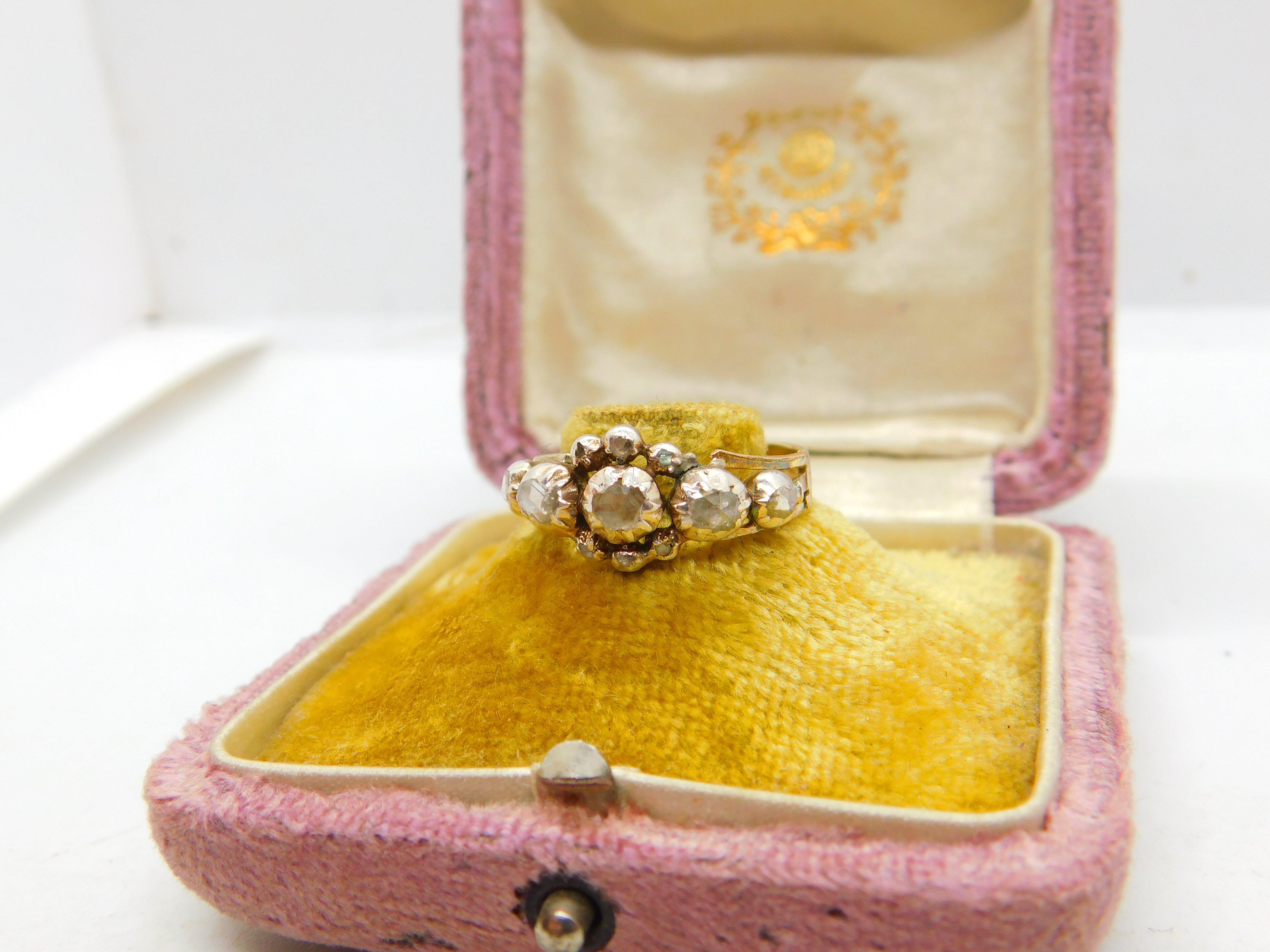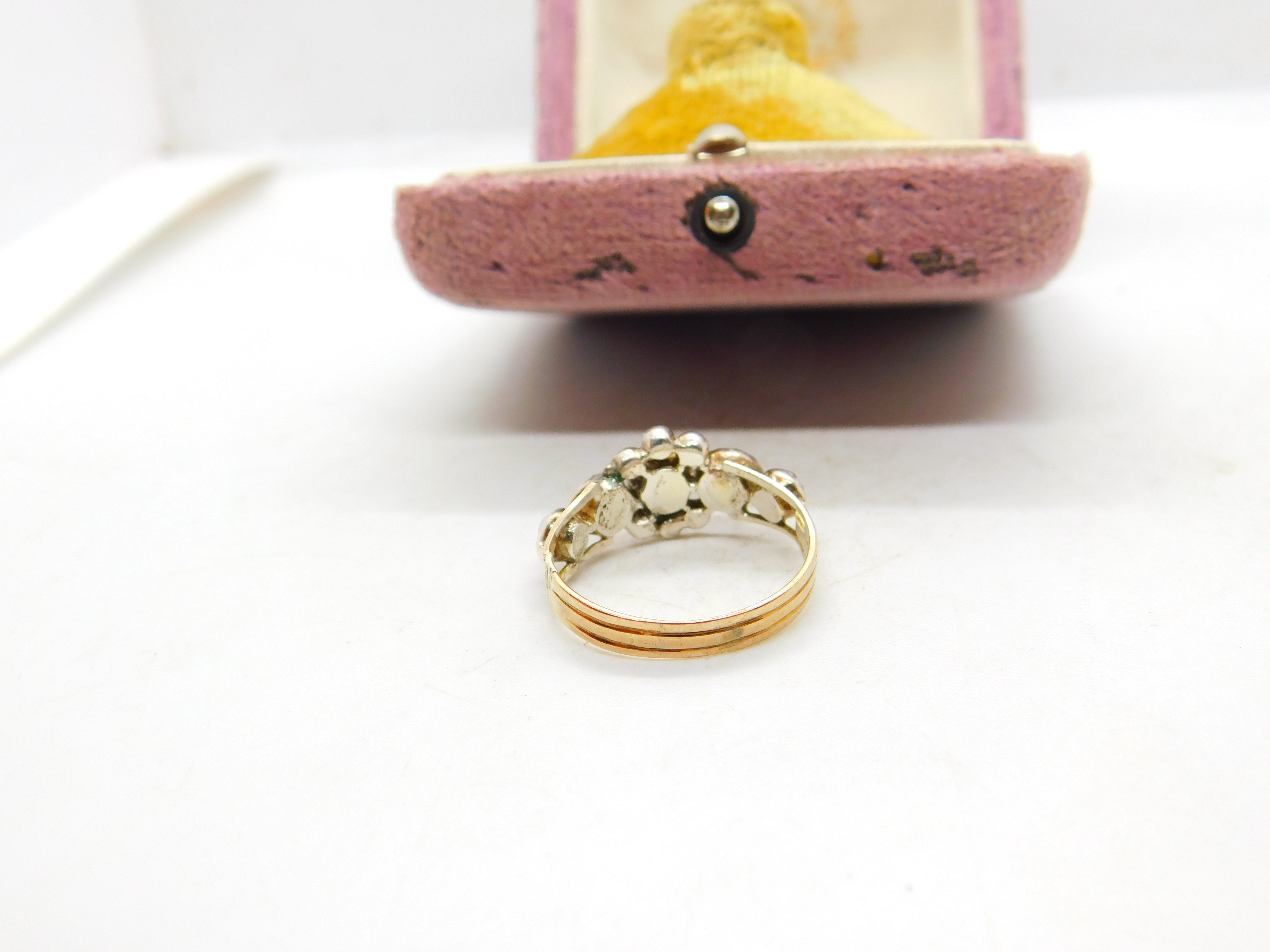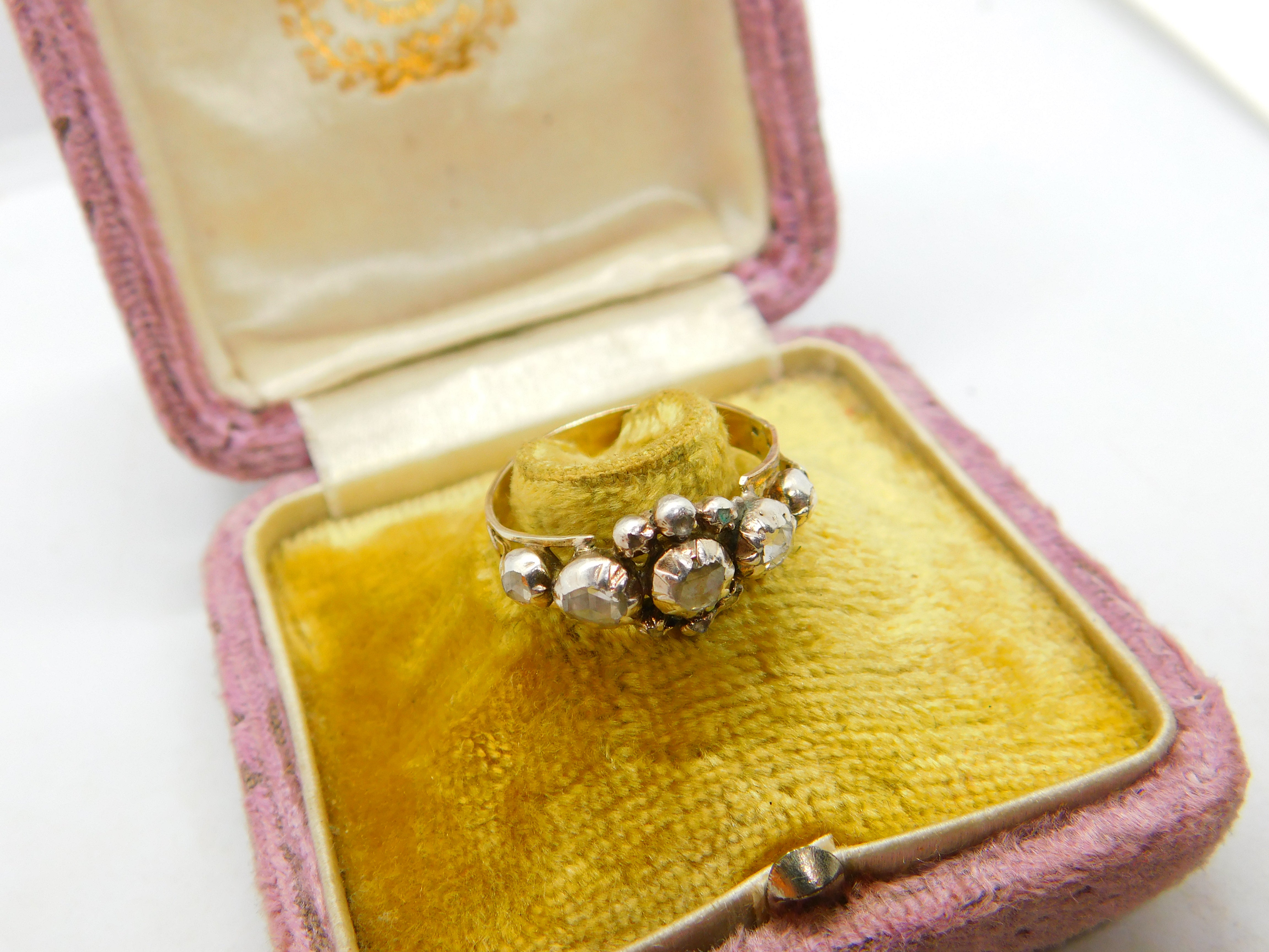 1ct Rose Cut Diamond Set 18ct Gold Floral Band Ring Antique c1800 Georgian
