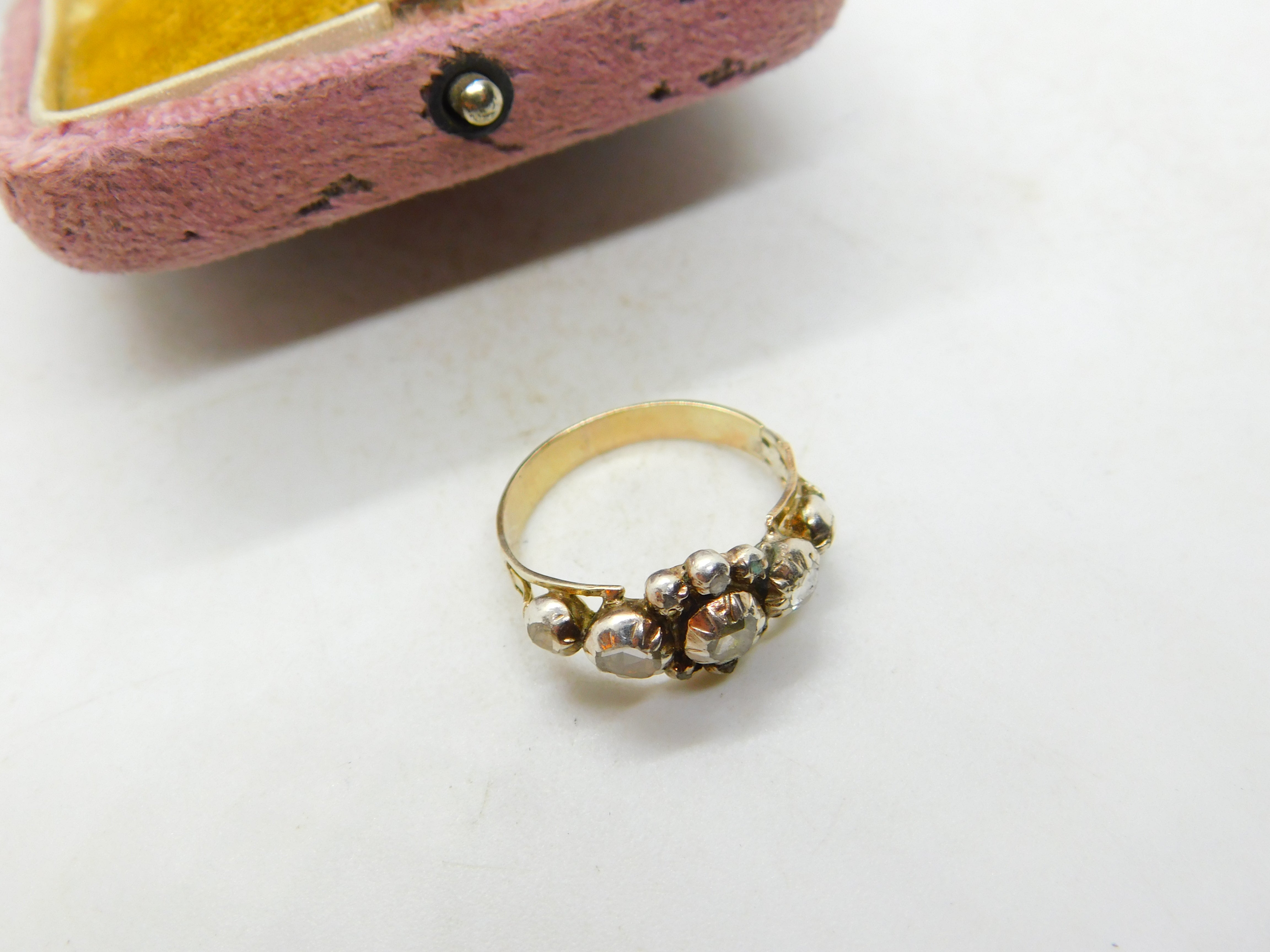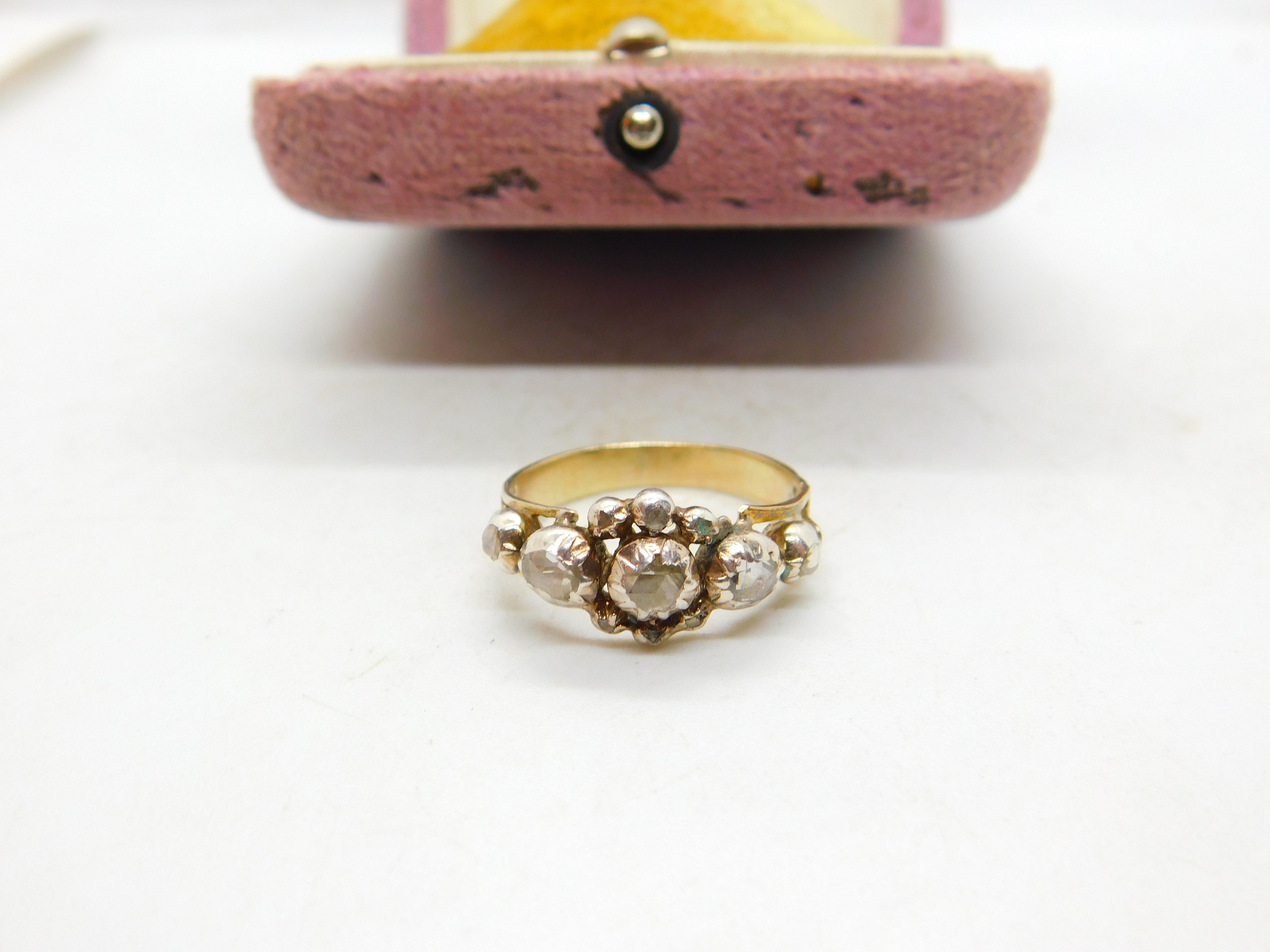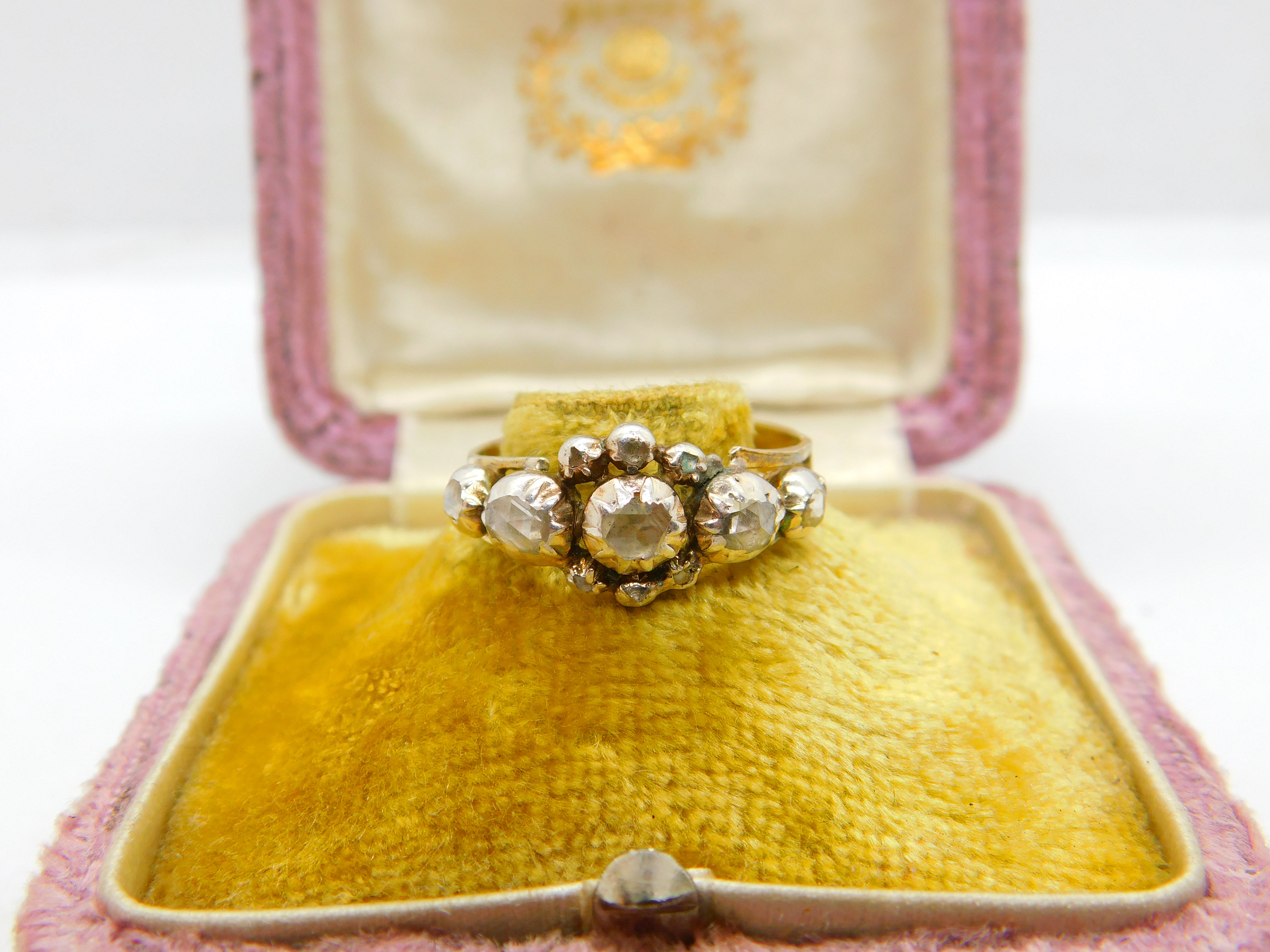 1ct Rose Cut Diamond Set 18ct Gold Floral Band Ring Antique c1800 Georgian