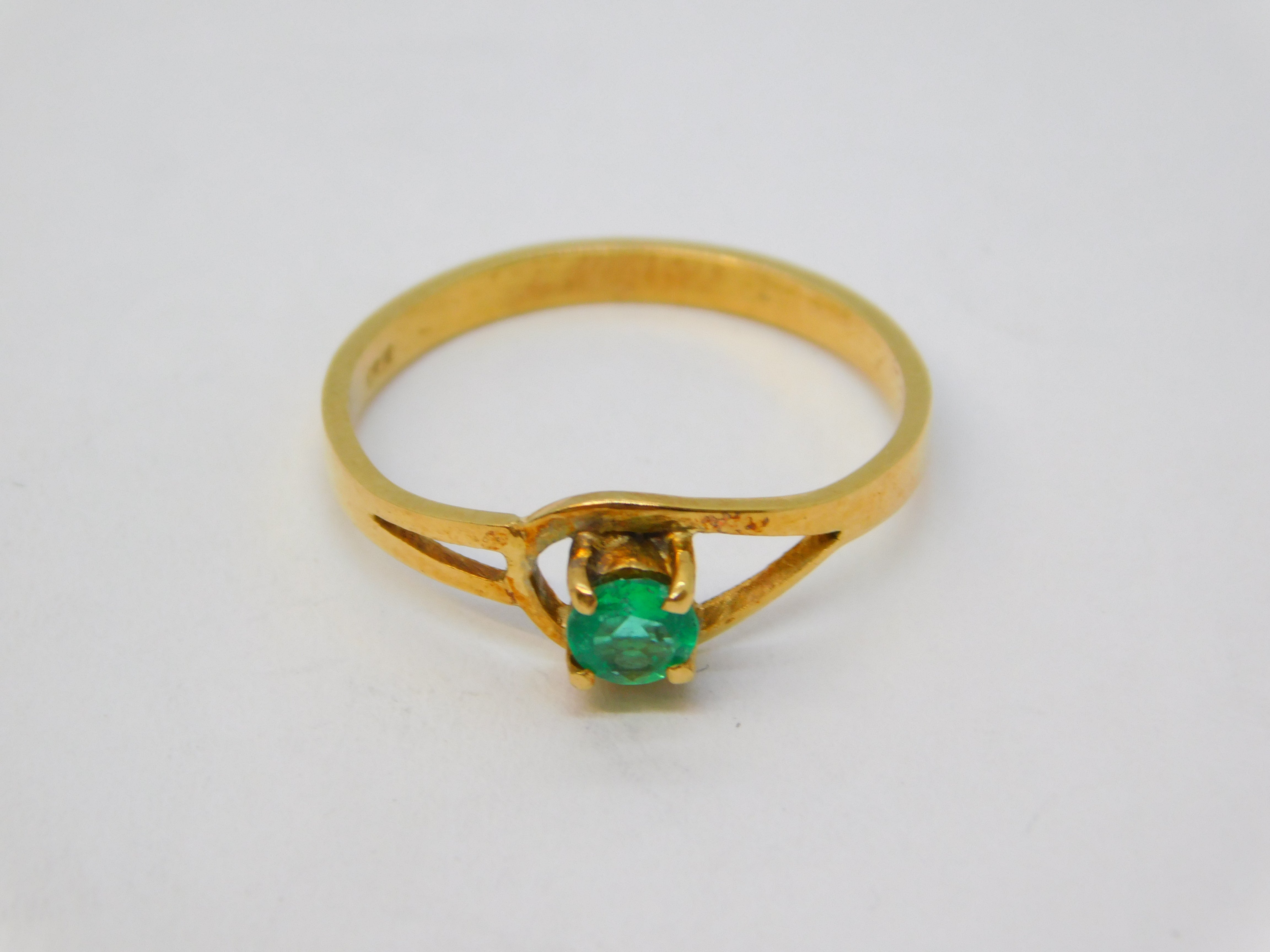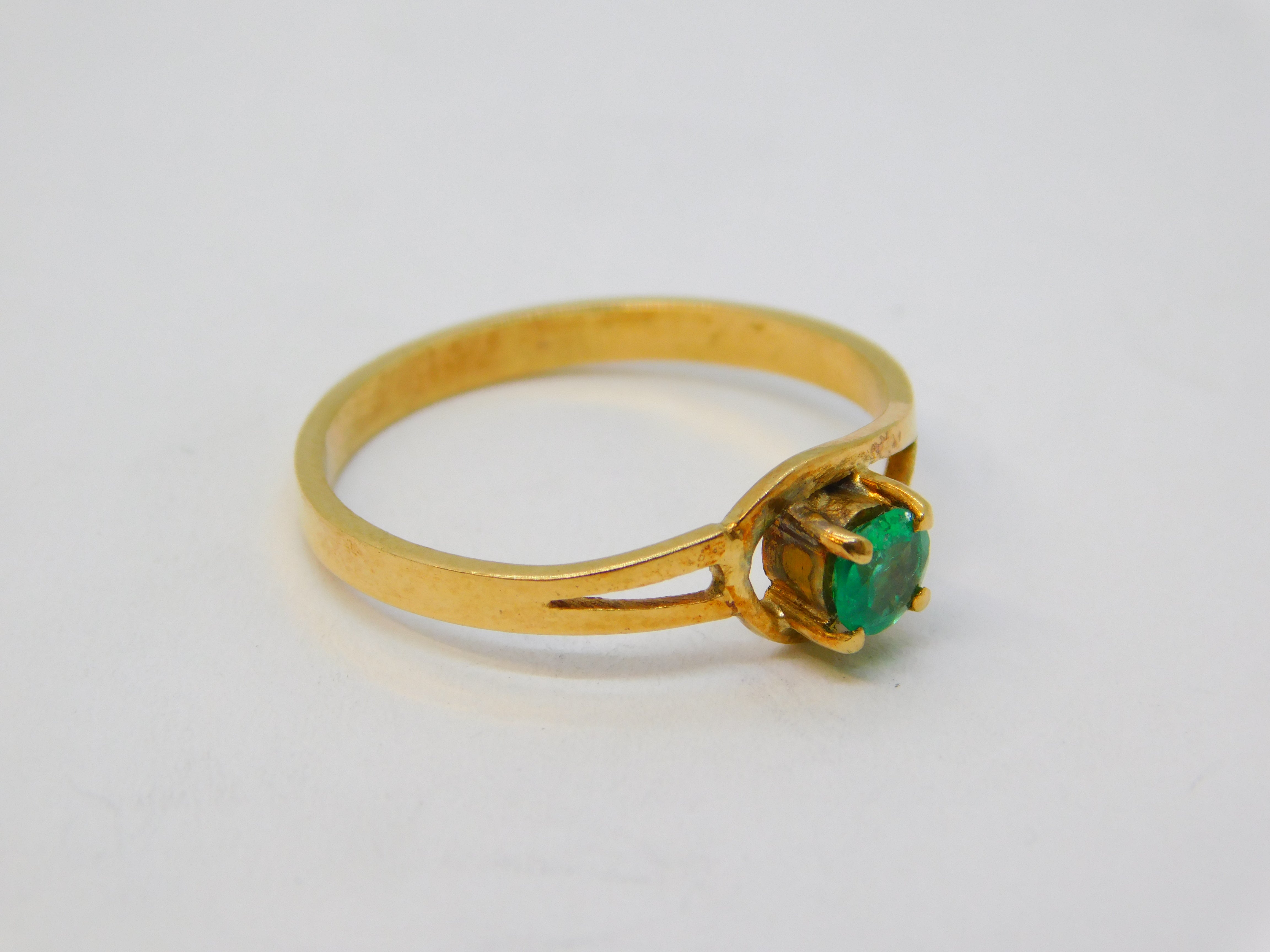 20th Century 18ct Gold & 0.2ct Cushion Cut Emerald Dress Ring Antique c1930