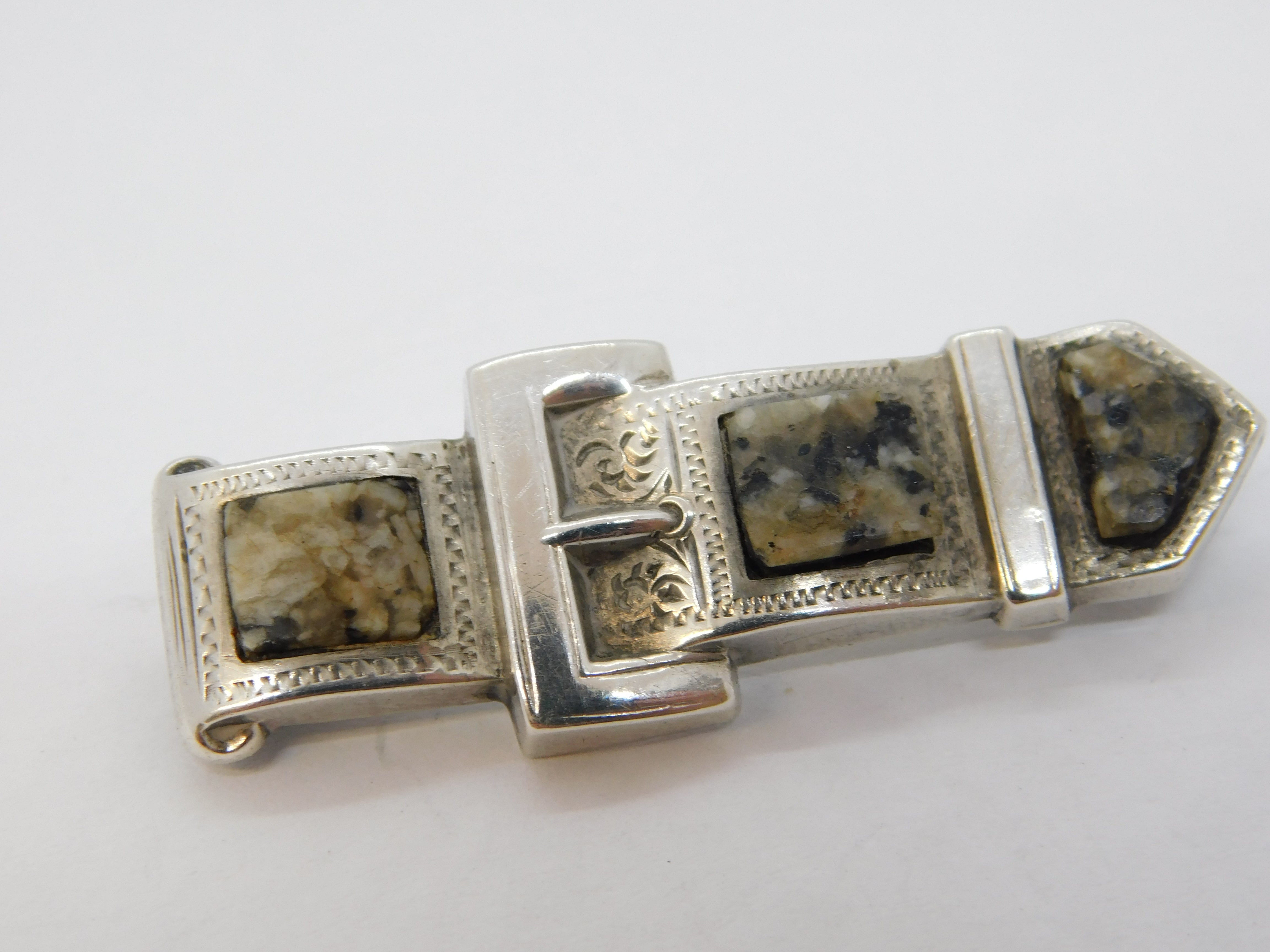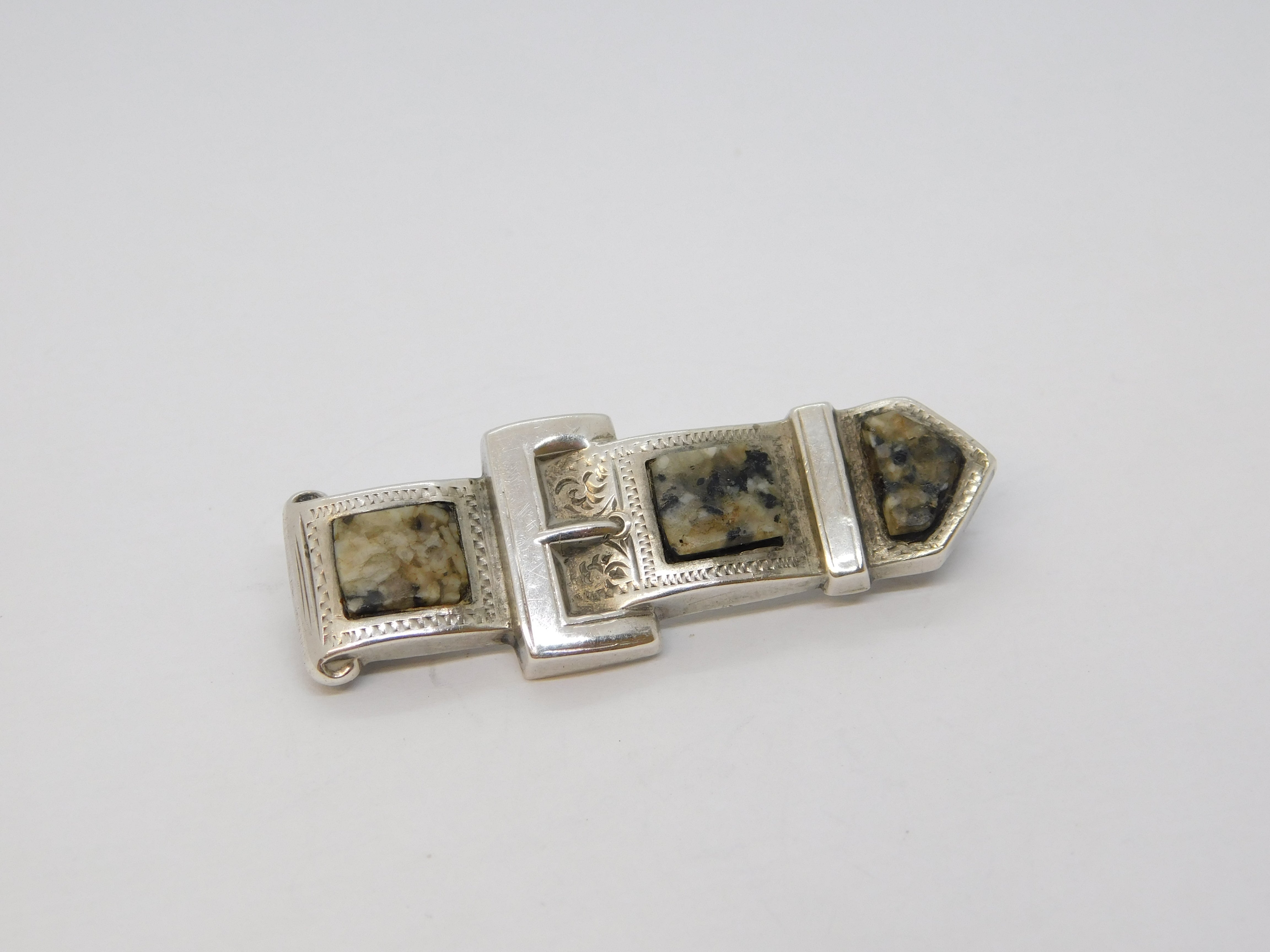 20th Century Scottish Sterling Silver & Red Marble Buckle Brooch Antique 1911 Birmingham