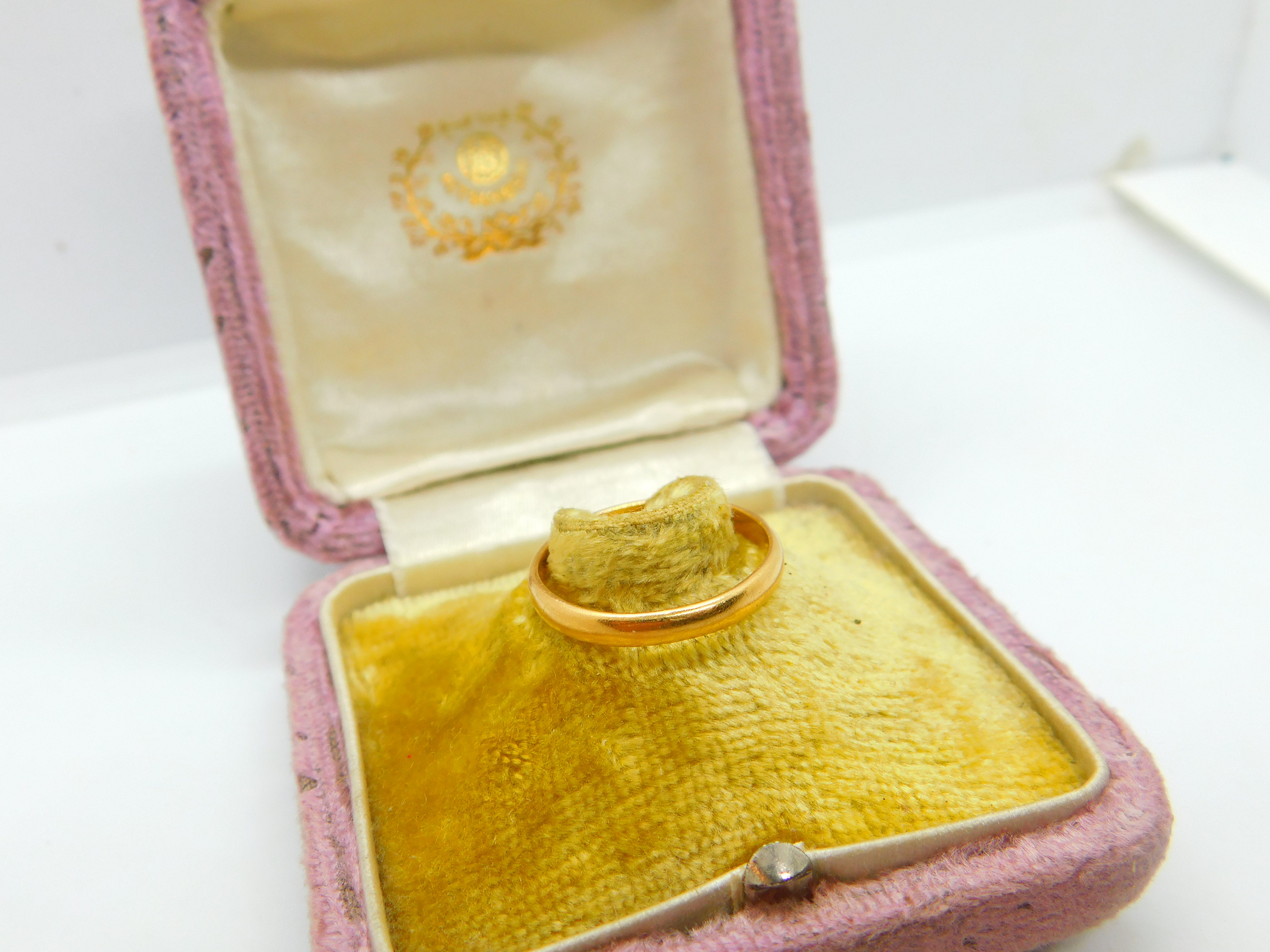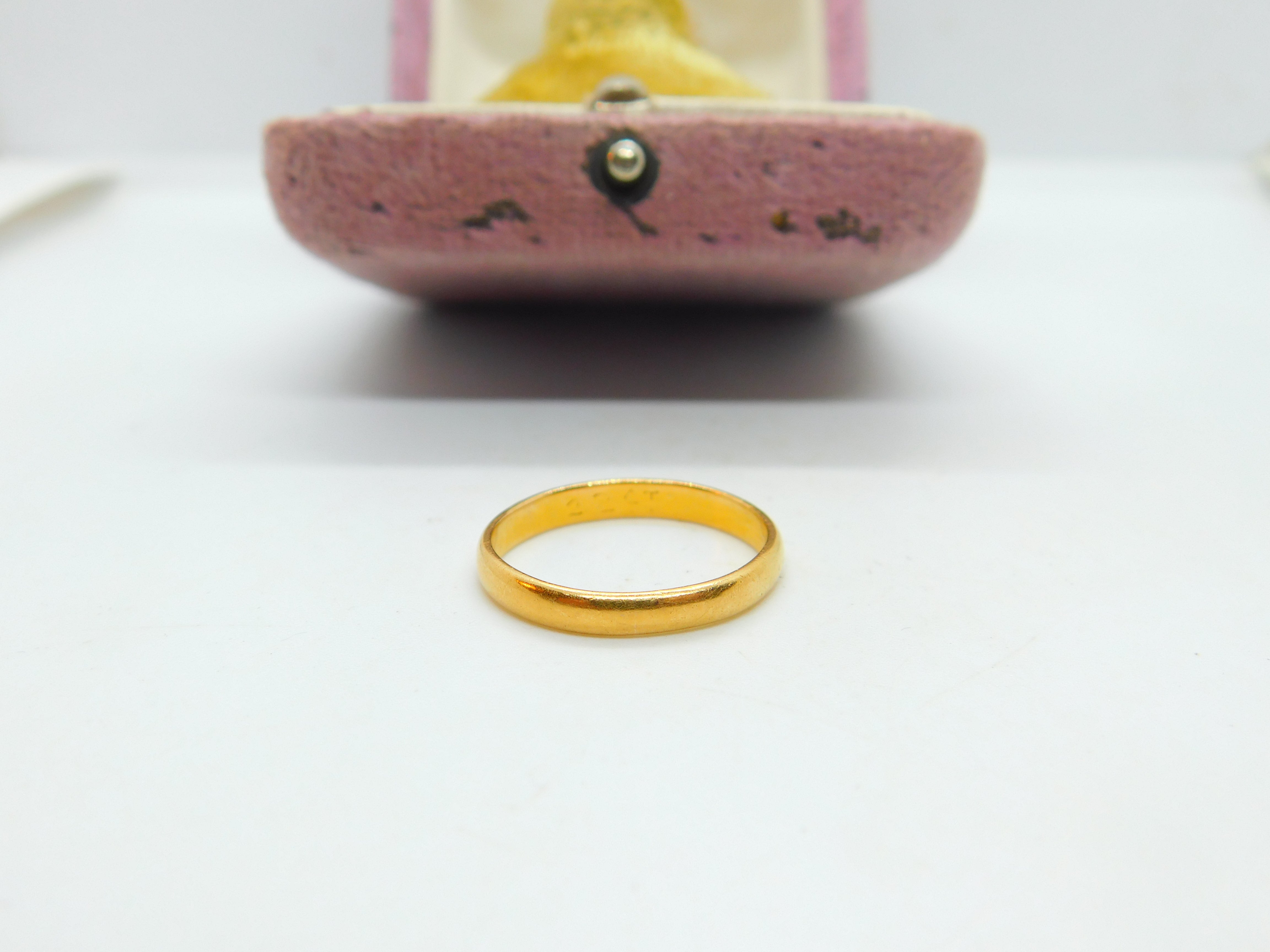 Details: A fantastic and wonderfully designed antique art deco 22ct yellow gold simple wedding band ring with nice detail and buttery colour etched 22ct to the inner band and XRF tested c1920. This is a wonderful item that would make a perfect gift or addition to any collection. The BOX pictured is for PRESENTATION ONLY and is NOT included in the listings but used to frame the pictures unless specifically stated otherwise.