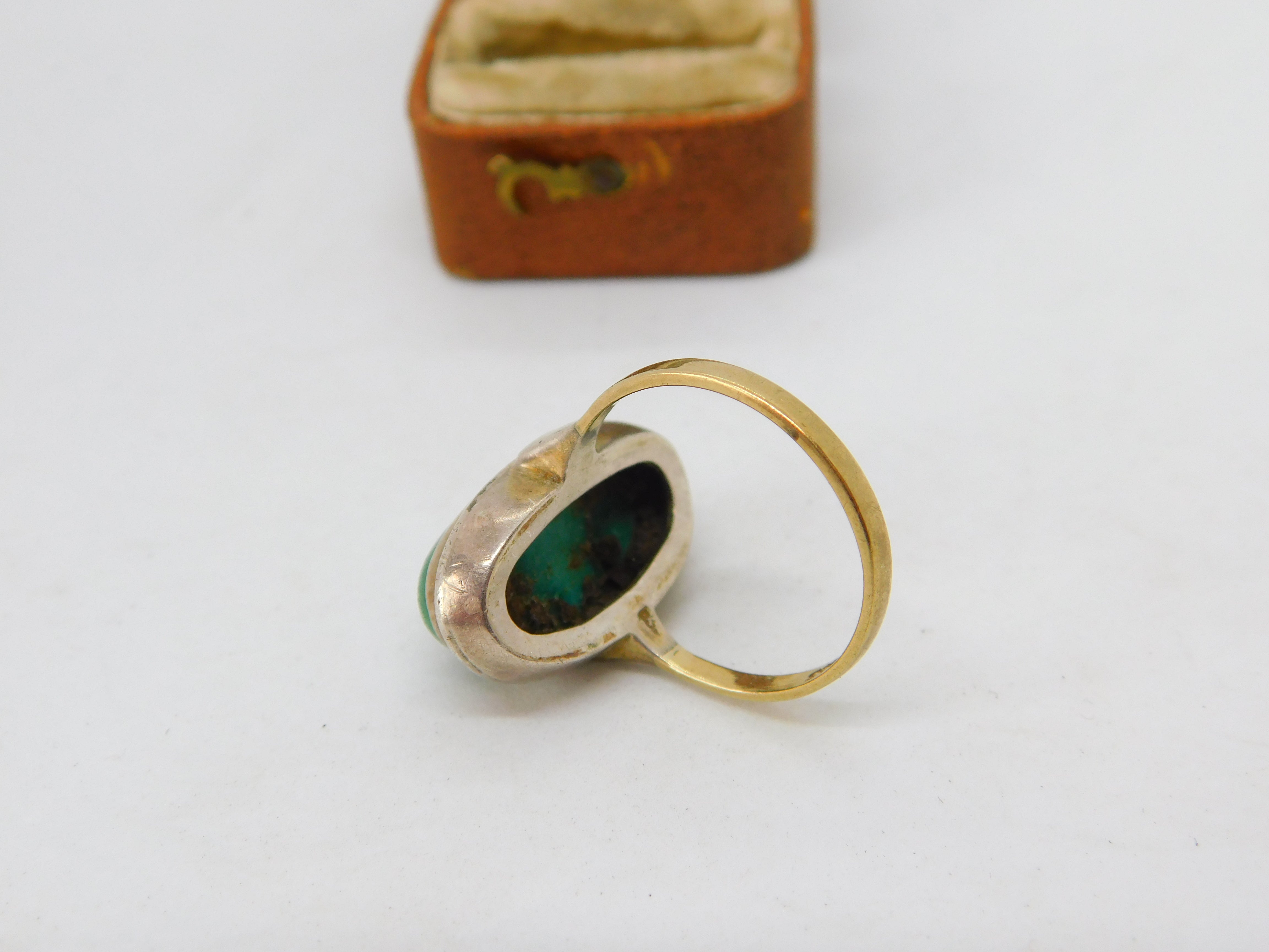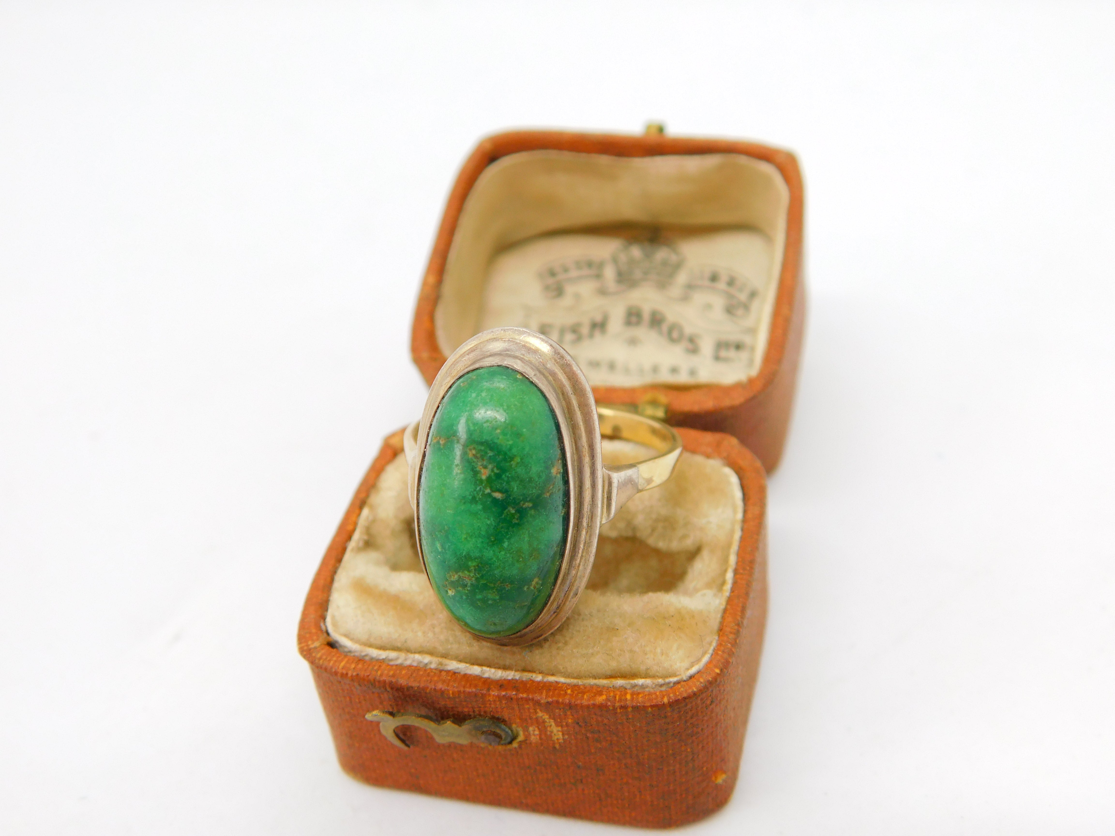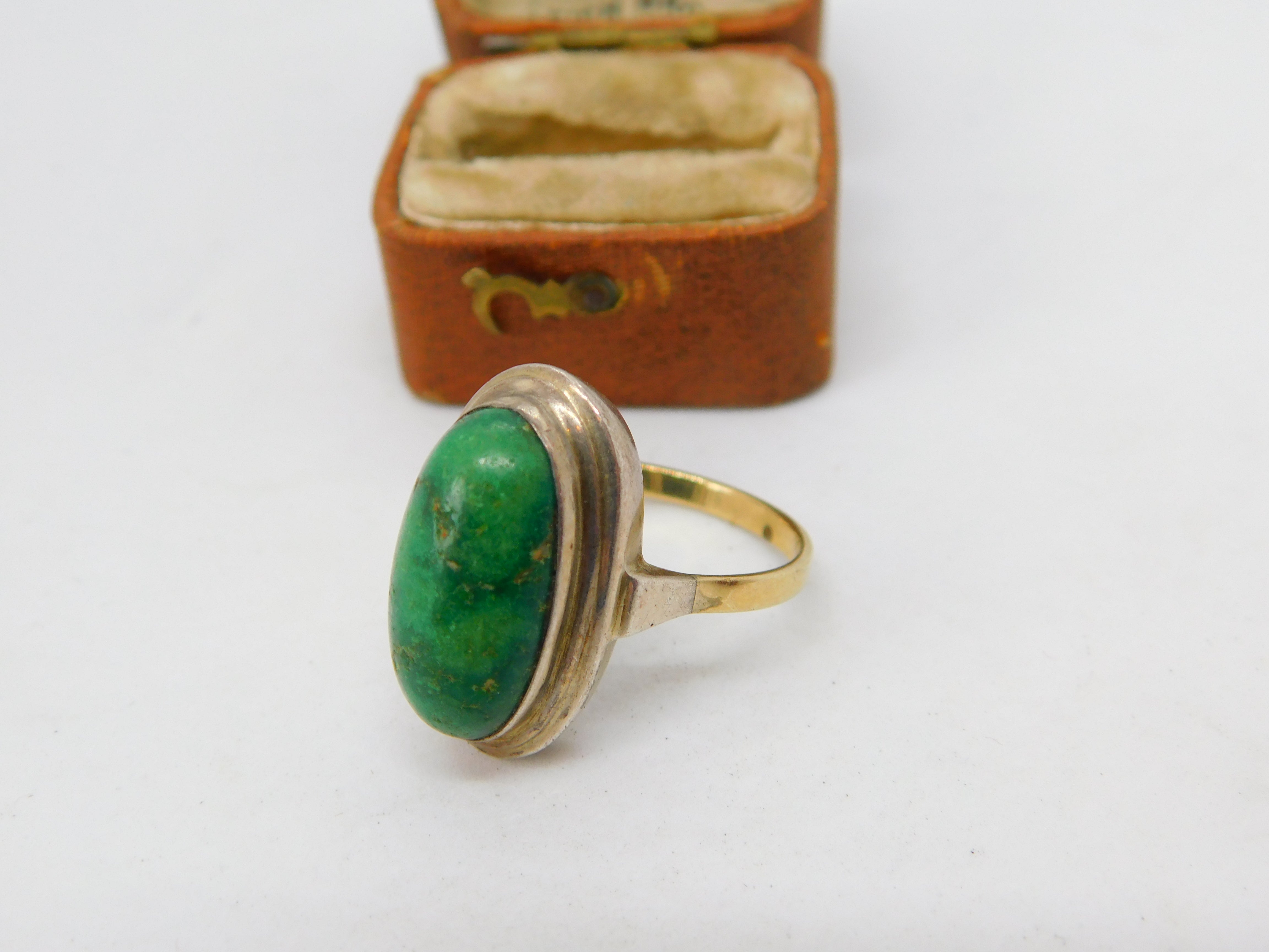 8ct Yellow Gold Cabochon Chrysoprase Dress Ring Antique c1920 Art Deco